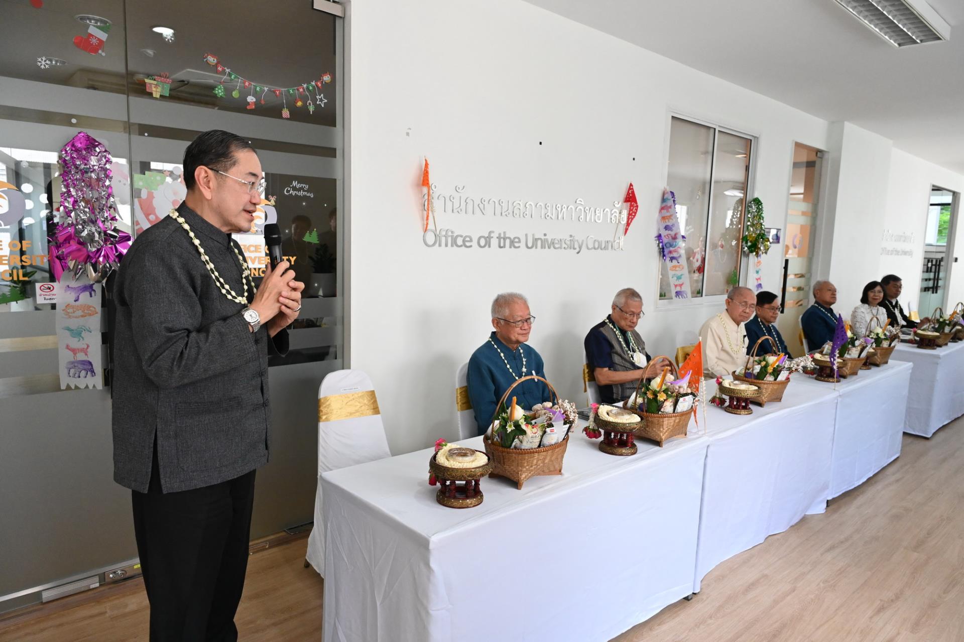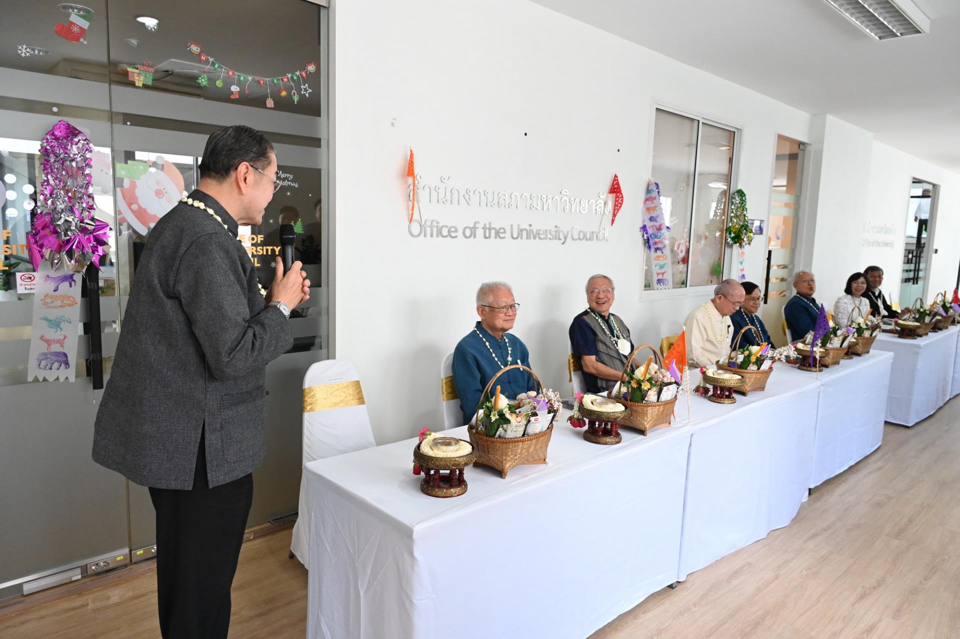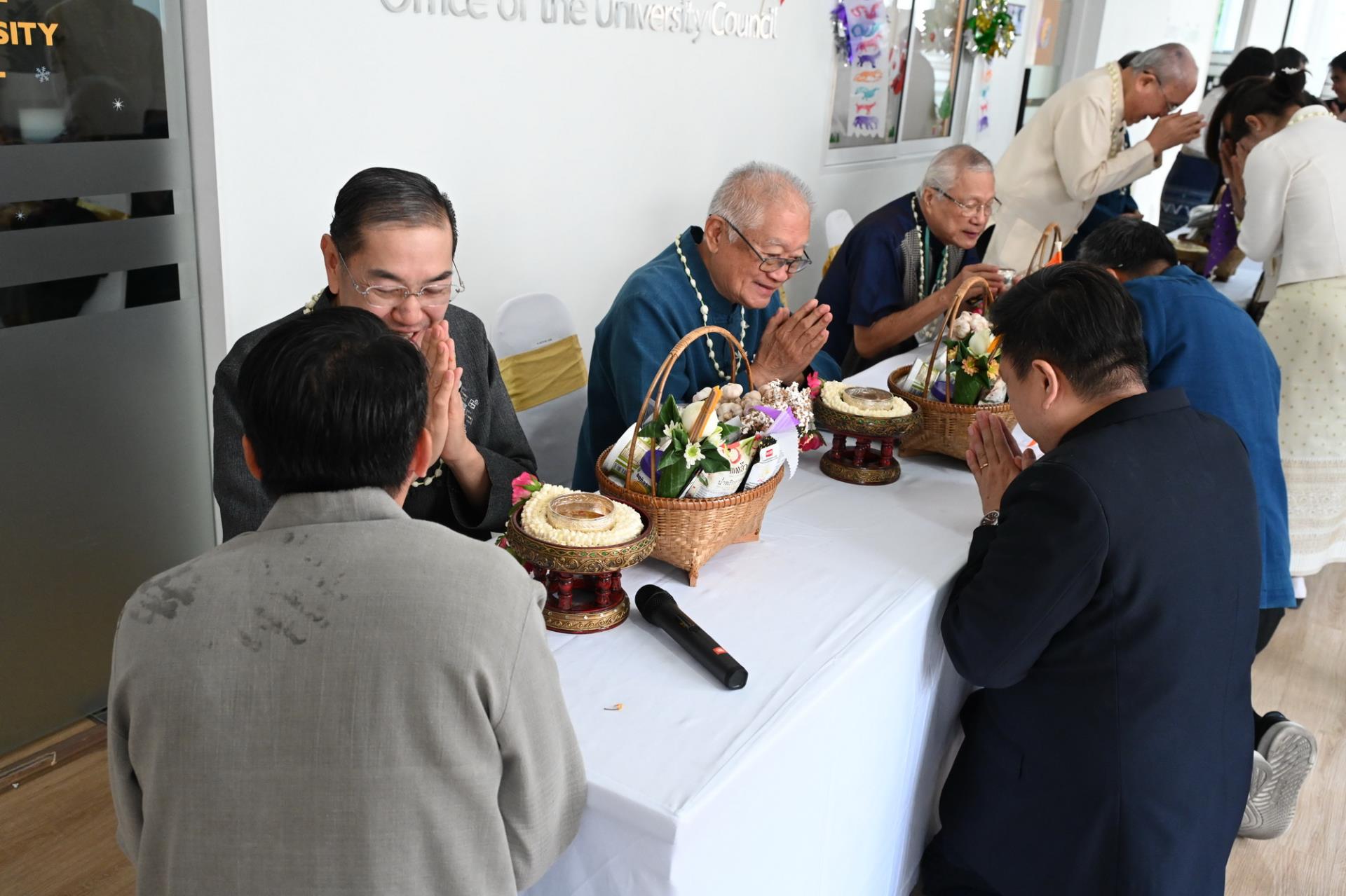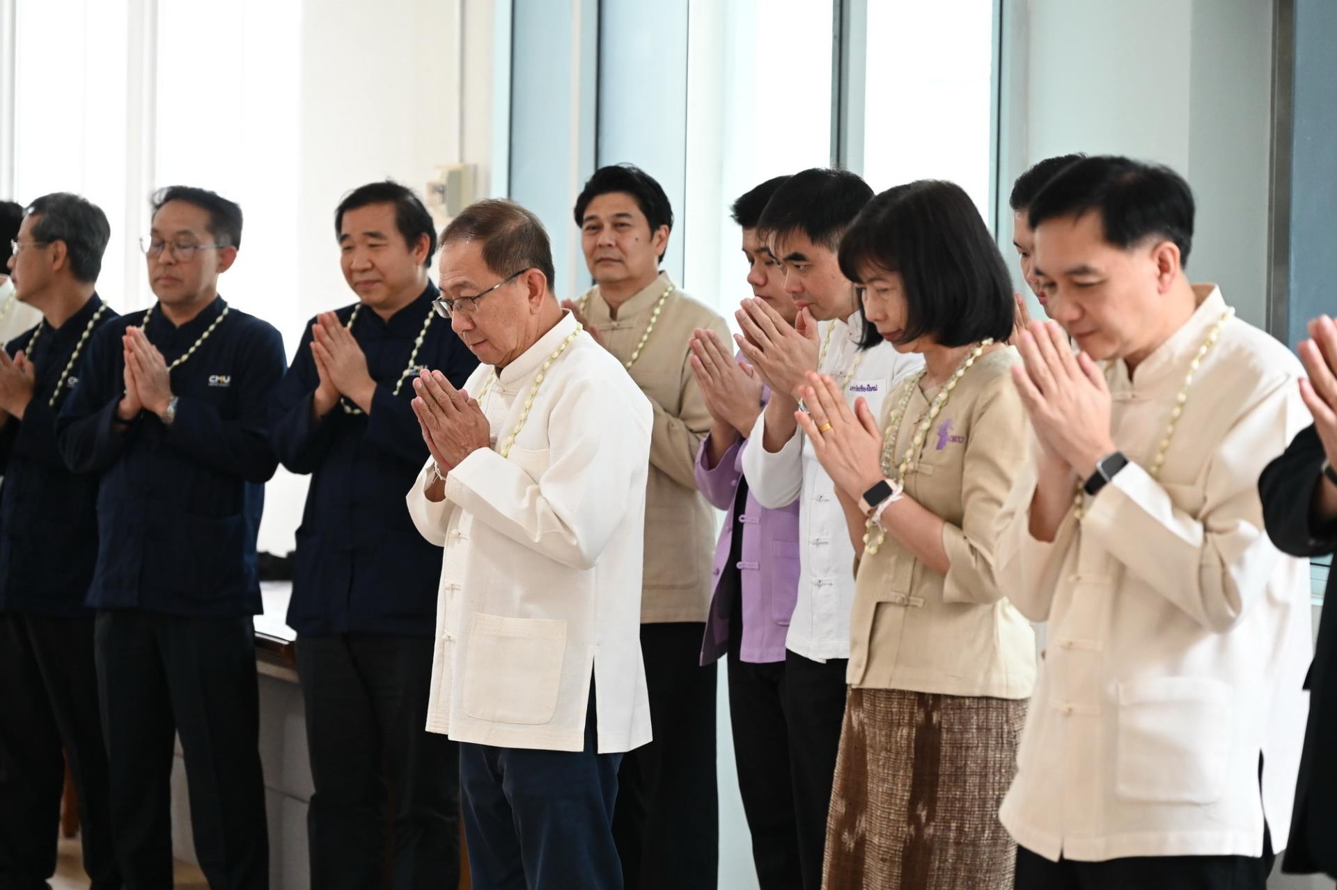 สำนักงานสภามหาวิทยาลัยเชียงใหม่ จัดพิธีดำหัวนายกสภาและคณะกรรมการสภามหาวิทยาลัยเชียงใหม่ เนื่องในโอกาสประเพณีปี๋ใหม่เมือง ประจำปีพุทธศักราช 2569 โดยมีศาสตราจารย์พิเศษ ดร.สุรเกียรติ์ เสถียรไทย นายกสภามหาวิทยาลัยเชียงใหม่ กล่าวให้พร ศาสตราจารย์ ดร.นพ.พงษ์รักษ์ ศรีบัณฑิตมงคล อธิการบดีมหาวิทยาลัยเชียงใหม่ กล่าวสูมาคารวะ พร้อมด้วยคณะผู้บริหาร คณาจารย์และเจ้าหน้าที่ ร่วมพิธี เพื่อขอสูมาคารวะ แสดงความเคารพ ตลอดจนการสืบสานรักษาวัฒนธรรมและประเพณีล้านนา ณ โถงชั้น 3 สำนักงานสภามหาวิทยาลัย อาคารยุทธศาสตร์ สำนักงานมหาวิทยาลัย มหาวิทยาลัยเชียงใหม่ วันเสาร์ที่ 25 เมษายน พ.ศ. 2569