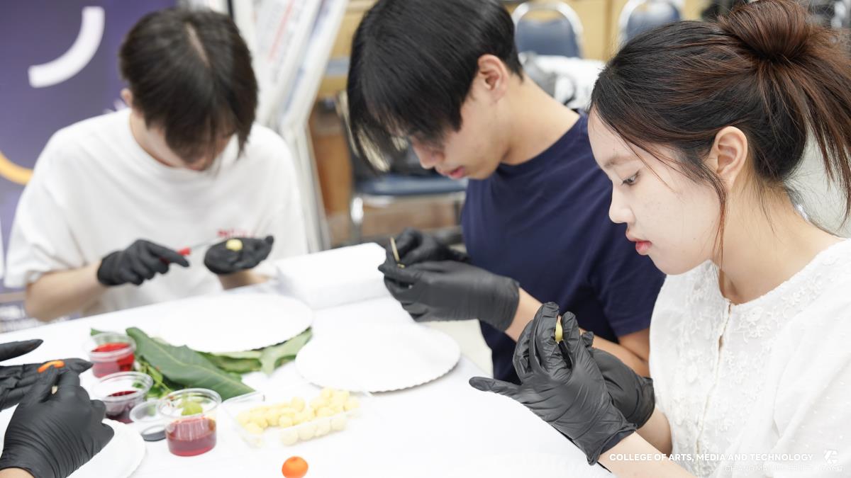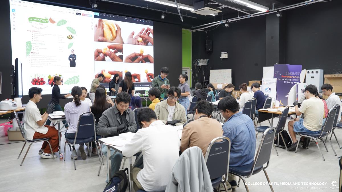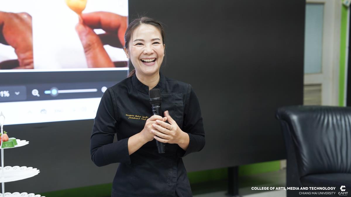 หน่วยพัฒนาคุณภาพนักศึกษาวิทยาลัยศิลปะ สื่อ และเทคโนโลยี จัดกิจกรรม "ชุบชูใจ ขนมไทยลูกชุบ" A Treat for the Soul: The Look Choop Thai Dessert Workshop! โดยมีวัตถุประสงค์เพื่อ ให้นักศึกษาไทยเเละนักศึกษาต่างชาติ ได้ร่วมเรียนรู้การทำขนมไทย และรังสรรค์ผลงานได้อย่างอิสระเพื่อผ่อนคลายความเครียด ผ่านการปั้นขนมไทยลูกชุบ ซึ่งกิจกรรมครั้งนี้ได้รับเกียรติจากเชฟส้ม คุณหทัยรัตน์ เชฟดีกรี แชมป์จากเวที Thailand Junior Chef Championship 2016 และเจ้าของ Dream’s Baker Studio คาเฟ่และสตูดิโอสอนทำขนมเล็กๆ ในเชียงใหม่ พร้อมด้วยทีมงานได้ให้เกียรติมาเป็นวิทยากรสอนในกิจกรรมดังกล่าว โดยมีนักศึกษาให้ความสนใจอย่างมาก เมื่อวันที่ 24 กันยายน2568 ณ ห้อง112 อาคารวิทยาลัยศิลปะ สื่อ และเทคโนโลยี มหาวิทยาลัยเชียงใหม่