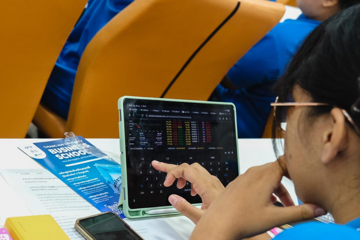 วันที่ 18 กันยายน 2568 คณะบริหารธุรกิจ มหาวิทยาลัยเชียงใหม่ ให้การต้อนรับคณะครูและนักเรียนระดับชั้นมัธยมศึกษาปีที่ 5–6 แผนการเรียนภาษาอังกฤษ–คณิตศาสตร์ จากโรงเรียนวัฒโนทัยพายัพ จังหวัดเชียงใหม่ รวมจำนวนกว่า 80 คน ในโครงการ “เปิดโลกกว้างทางคณิตศาสตร์ พัฒนาผู้เรียนสู่มาตรฐานสากล” โดยได้รับเกียรติจาก ผศ.เอก บุญเจือ รองคณบดีคณะบริหารธุรกิจ มหาวิทยาลัยเชียงใหม่ กล่าวต้อนรับและบรรยายภาพรวมแนะนำหลักสูตรของคณะ จากนั้น อาจารย์ปรียารัตน์ รัศมี อาจารย์ประจำภาควิชาการเงิน ได้บรรยายสร้างการตระหนักรู้เกี่ยวกับการเงินและการลงทุน ต่อเนื่องด้วย อาจารย์ ดร.อธิเมศร์ เชษฐธีระพัชร์ อาจารย์ประจำภาควิชาการเงิน ซึ่งได้นำกิจกรรม Workshop ทดลองการลงทุนหุ้นผ่านโปรแกรมเทรดหุ้นจำลอง CLICK2WIN ณ ห้องประชุม 3 คณะบริหารธุรกิจ มหาวิทยาลัยเชียงใหม่