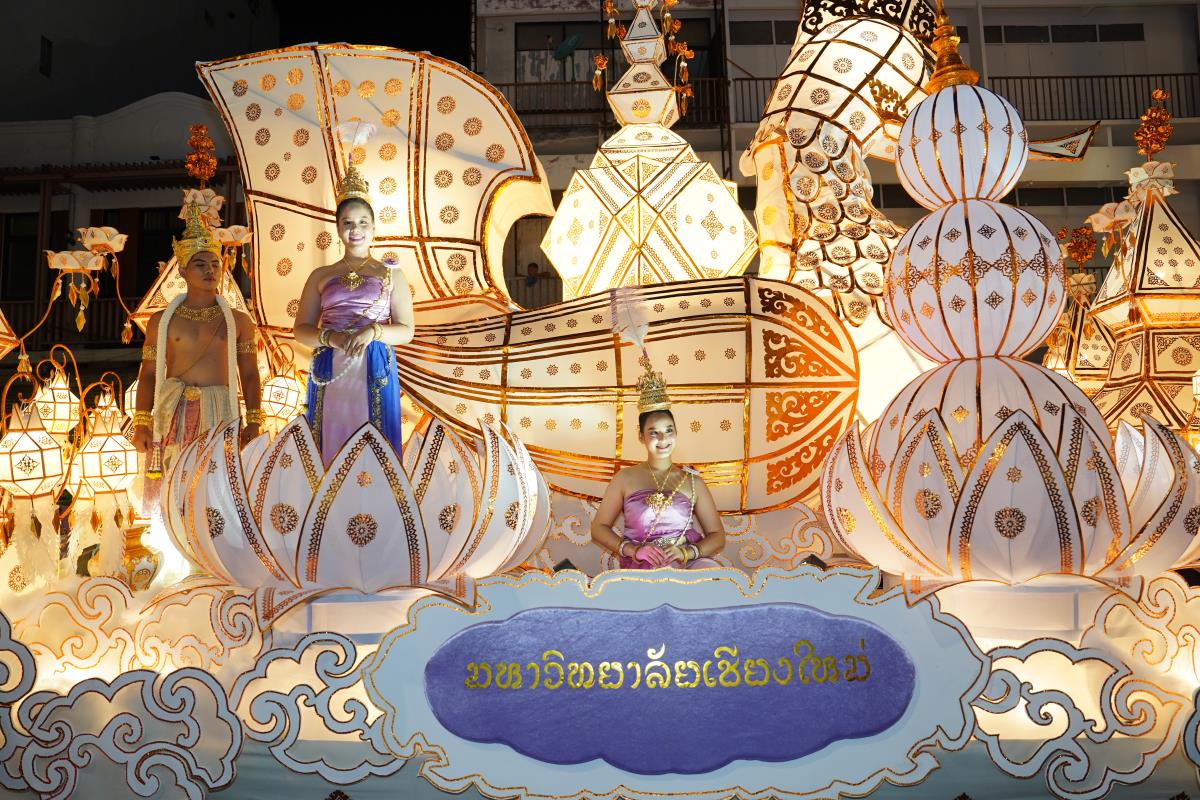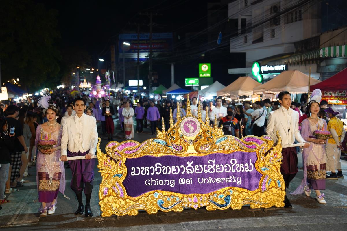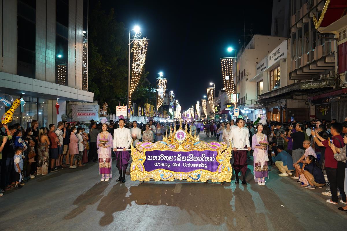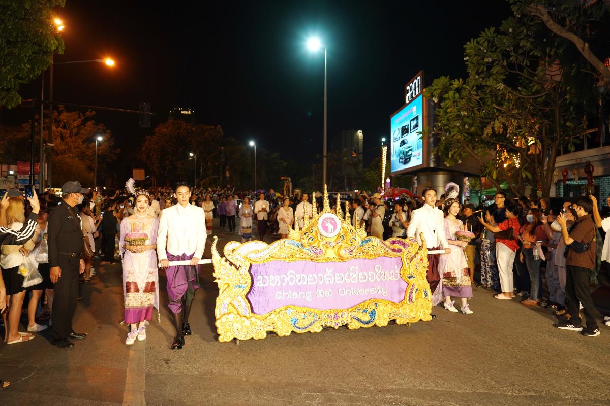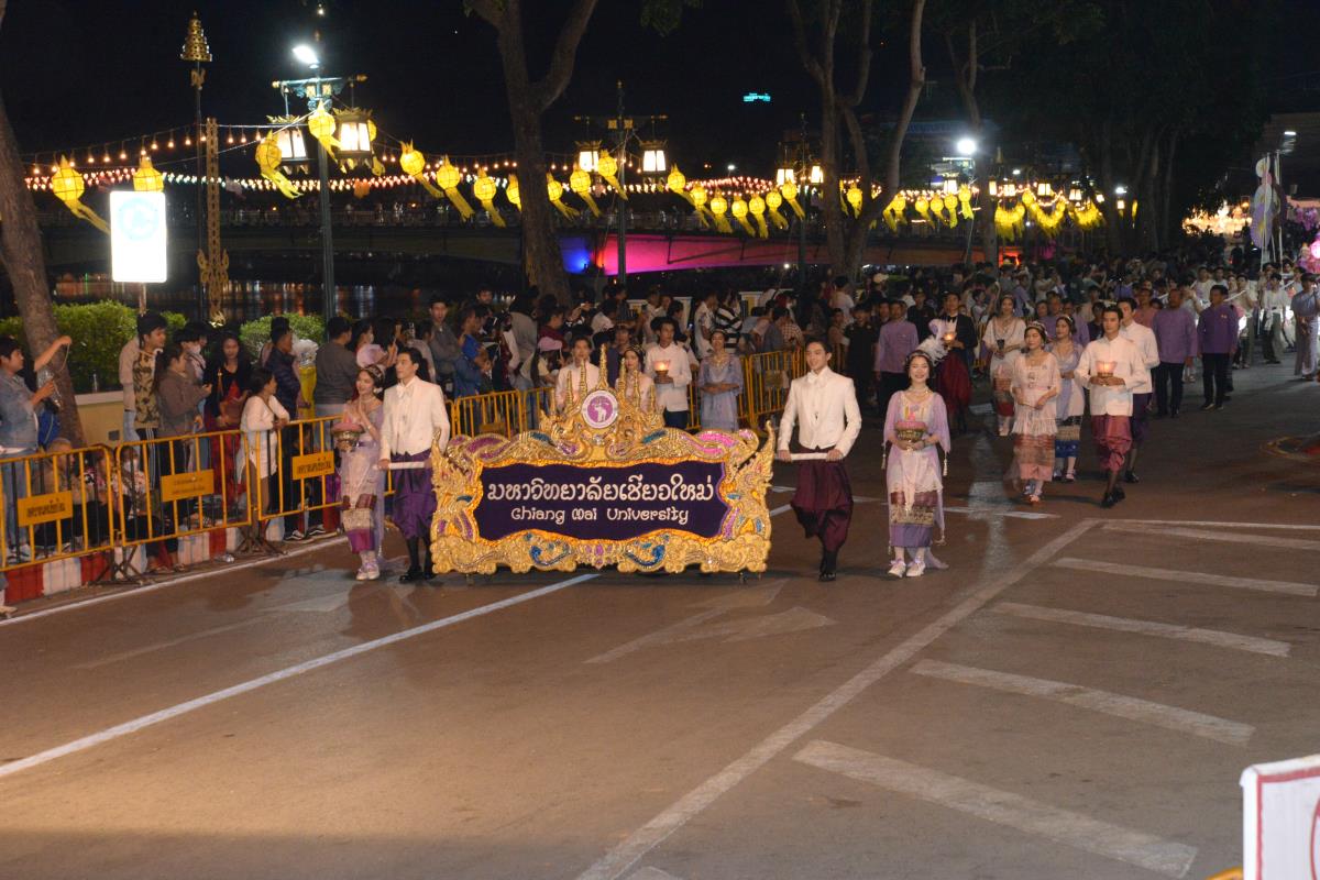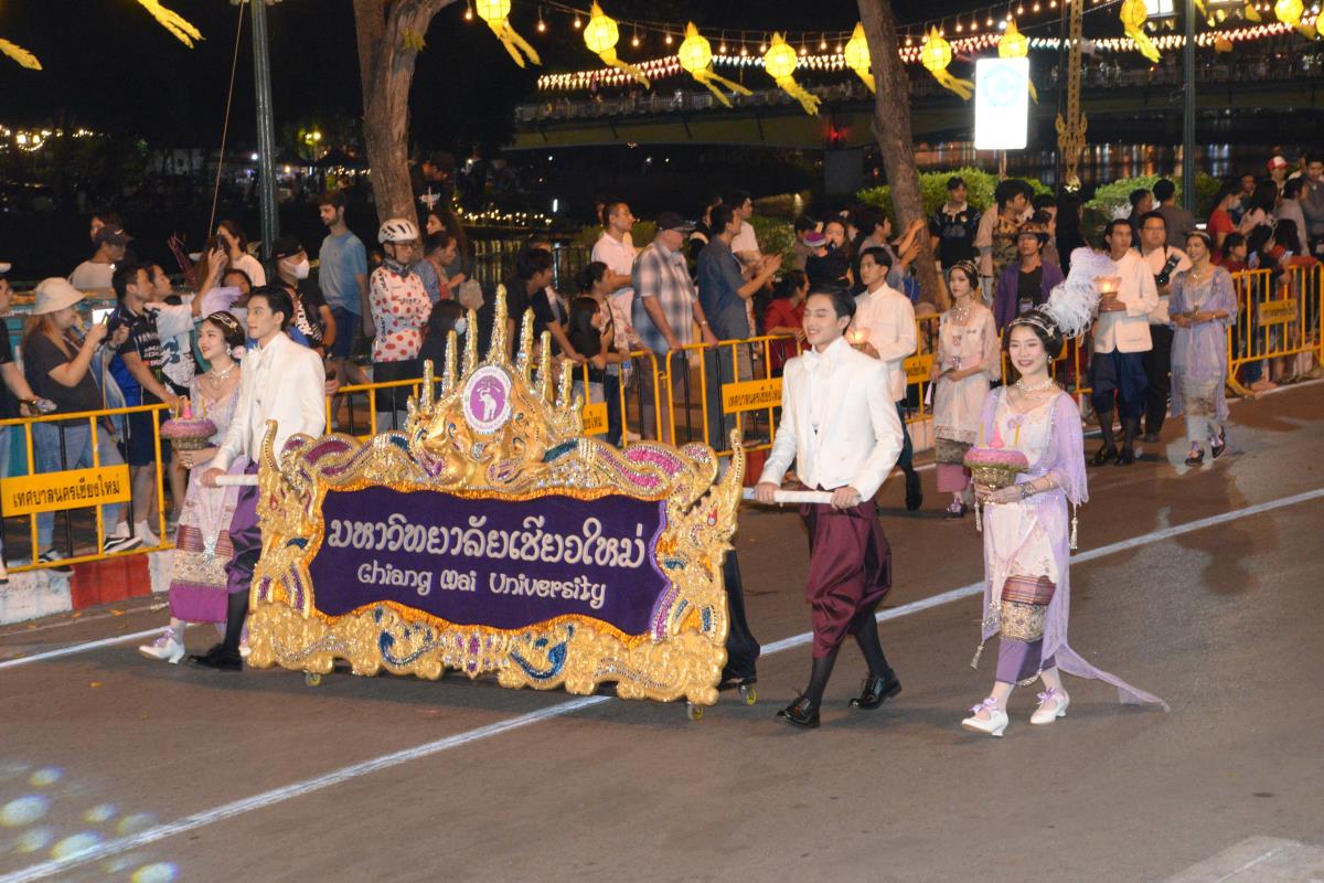 มหาวิทยาลัยเชียงใหม่ ได้รับรางวัลรองชนะเลิศอันดับ 1 ในการประกวดขบวนกระทงใหญ่ สืบสานประเพณีเดือนยี่เป็งเชียงใหม่ พร้อมริ้วขบวนวิจิตรตระการตา “โคมคำ สุวรรณหงส์” โดยมีศาสตราจารย์ปฏิบัติ ดร.เอกชัย มหาเอก รองอธิการบดี พร้อมด้วยคณะผู้บริหาร บุคลากร และนักศึกษาเข้าร่วมขบวน เพื่อเป็นการส่งเสริมและทำนุบำรุงศิลปวัฒนธรรม โดยเฉพาะความเป็นเอกลักษณ์ของท้องถิ่นภาคเหนือตามพันธกิจของมหาวิทยาลัย โดยรถกระทงมหาวิทยาลัยเชียงใหม่ “โคมคำ สุวรรณหงส์” ปีนี้ ขับเคลื่อนด้วยพลังงานไฟฟ้า พร้อมระบบจ่ายพลังงานไฟฟ้าเพื่อใช้ในงานประดับตกแต่ง ใช้พลังงานจากแบตเตอรี่ที่สามารถประจุไฟฟ้าด้วยพลังงานสะอาด ไม่ก่อให้เกิดมลพิษทางอากาศ ไม่ก่อเกิดมลพิษทางเสียงขณะใช้งาน ตามแนวทาง มช. มุ่งสู่ความเป็นกลางทางคาร์บอน ซึ่งนอกจากจะเป็นการอนุรักษ์ประเพณีแล้วยังเป็นการรักษ์โลกอีกทางหนึ่งด้วย เมื่อวันอังคารที่ 28 พฤศจิกายน 2566 ณ หน้า สำนักงานเทศบาลนครเชียงใหม่