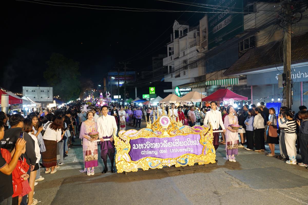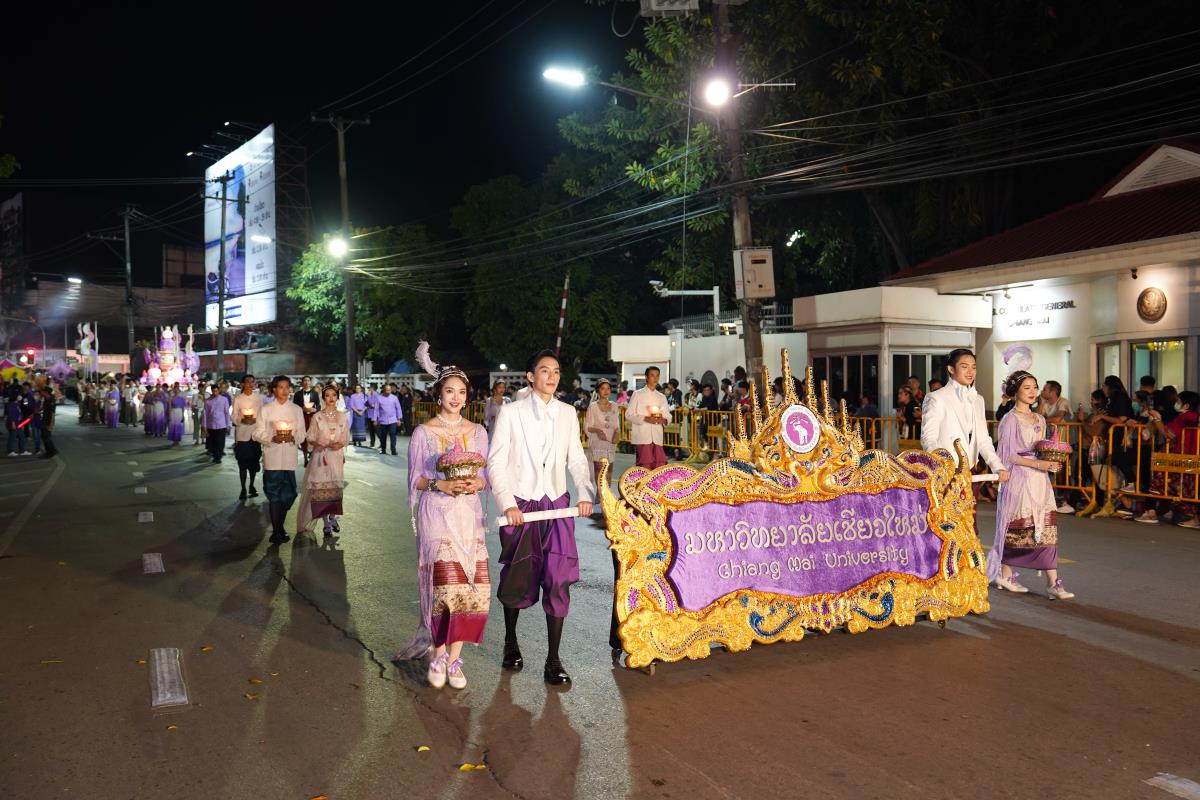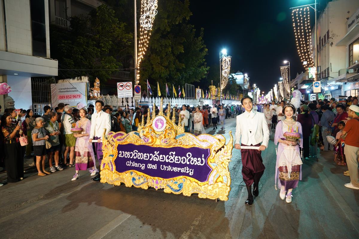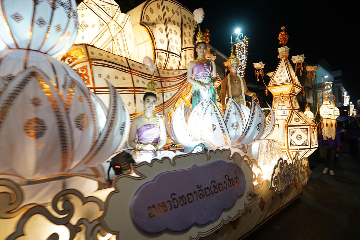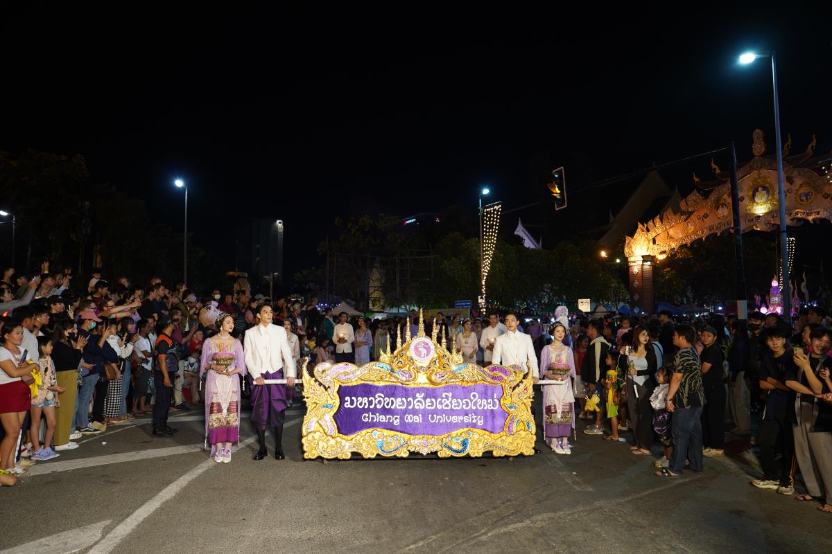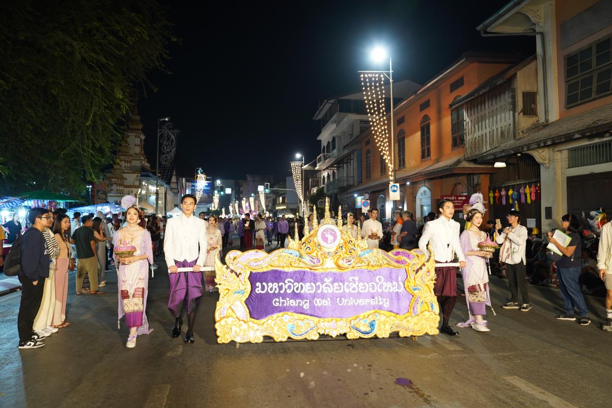 มหาวิทยาลัยเชียงใหม่ ได้รับรางวัลรองชนะเลิศอันดับ 1 ในการประกวดขบวนกระทงใหญ่ สืบสานประเพณีเดือนยี่เป็งเชียงใหม่ พร้อมริ้วขบวนวิจิตรตระการตา “โคมคำ สุวรรณหงส์” โดยมีศาสตราจารย์ปฏิบัติ ดร.เอกชัย มหาเอก รองอธิการบดี พร้อมด้วยคณะผู้บริหาร บุคลากร และนักศึกษาเข้าร่วมขบวน เพื่อเป็นการส่งเสริมและทำนุบำรุงศิลปวัฒนธรรม โดยเฉพาะความเป็นเอกลักษณ์ของท้องถิ่นภาคเหนือตามพันธกิจของมหาวิทยาลัย โดยรถกระทงมหาวิทยาลัยเชียงใหม่ “โคมคำ สุวรรณหงส์” ปีนี้ ขับเคลื่อนด้วยพลังงานไฟฟ้า พร้อมระบบจ่ายพลังงานไฟฟ้าเพื่อใช้ในงานประดับตกแต่ง ใช้พลังงานจากแบตเตอรี่ที่สามารถประจุไฟฟ้าด้วยพลังงานสะอาด ไม่ก่อให้เกิดมลพิษทางอากาศ ไม่ก่อเกิดมลพิษทางเสียงขณะใช้งาน ตามแนวทาง มช. มุ่งสู่ความเป็นกลางทางคาร์บอน ซึ่งนอกจากจะเป็นการอนุรักษ์ประเพณีแล้วยังเป็นการรักษ์โลกอีกทางหนึ่งด้วย เมื่อวันอังคารที่ 28 พฤศจิกายน 2566 ณ หน้า สำนักงานเทศบาลนครเชียงใหม่