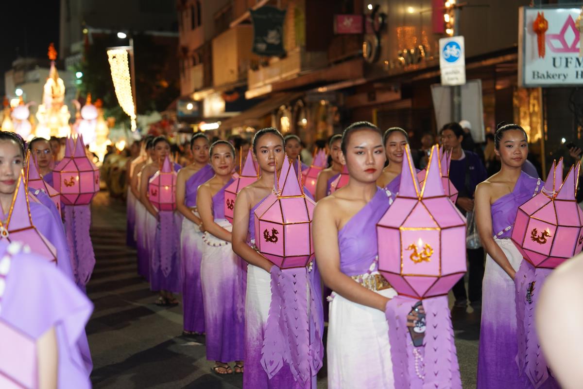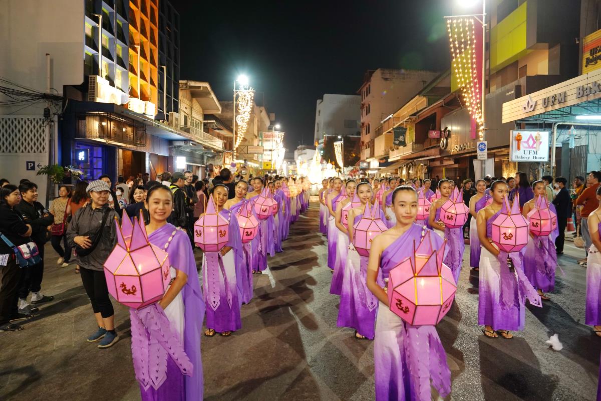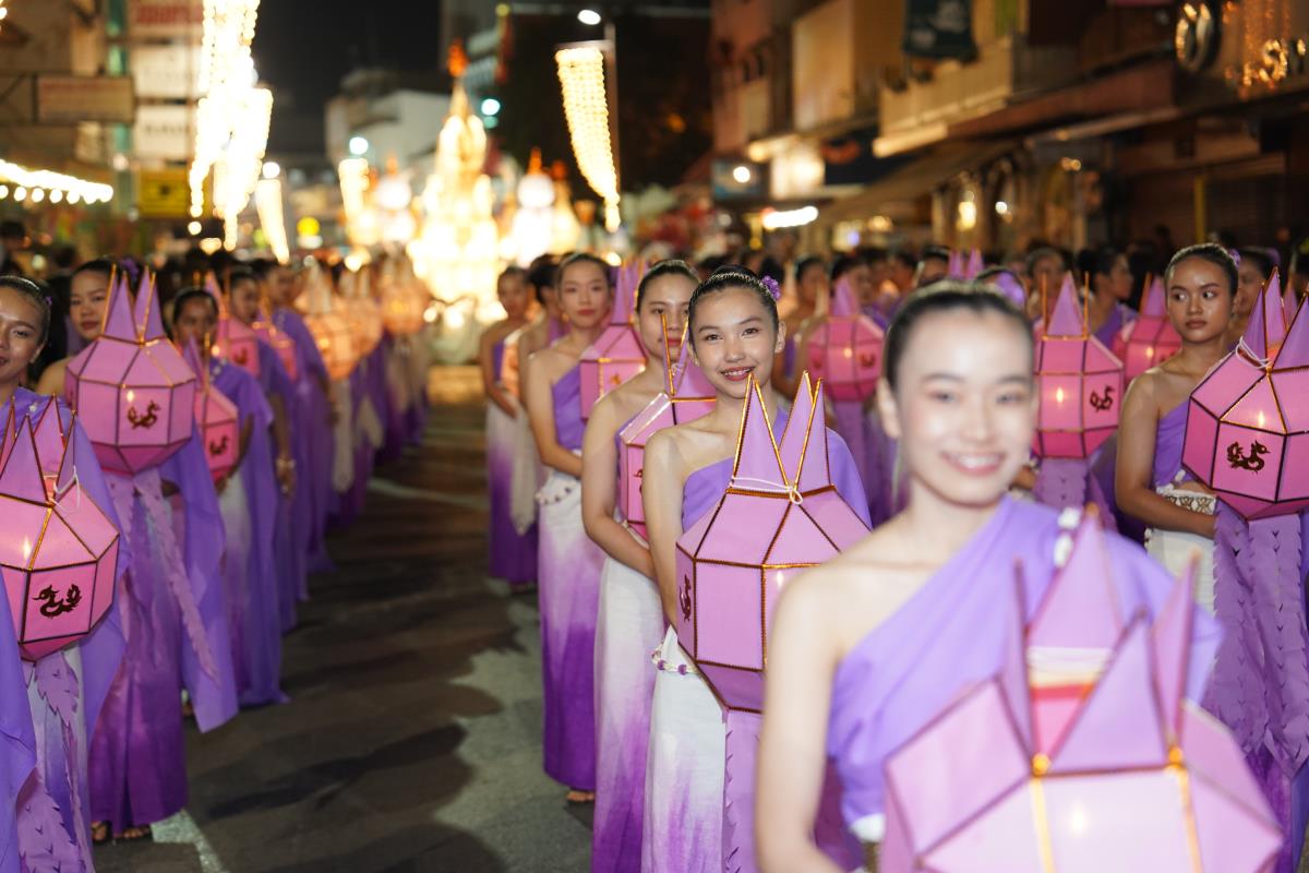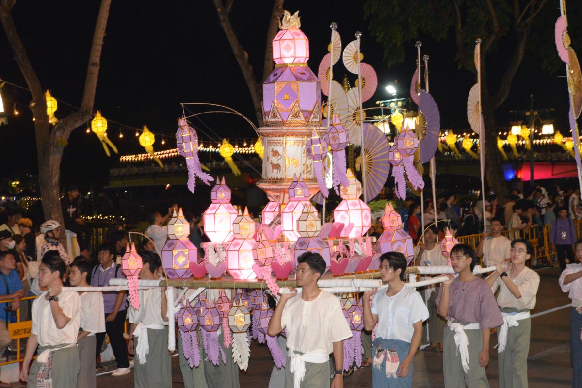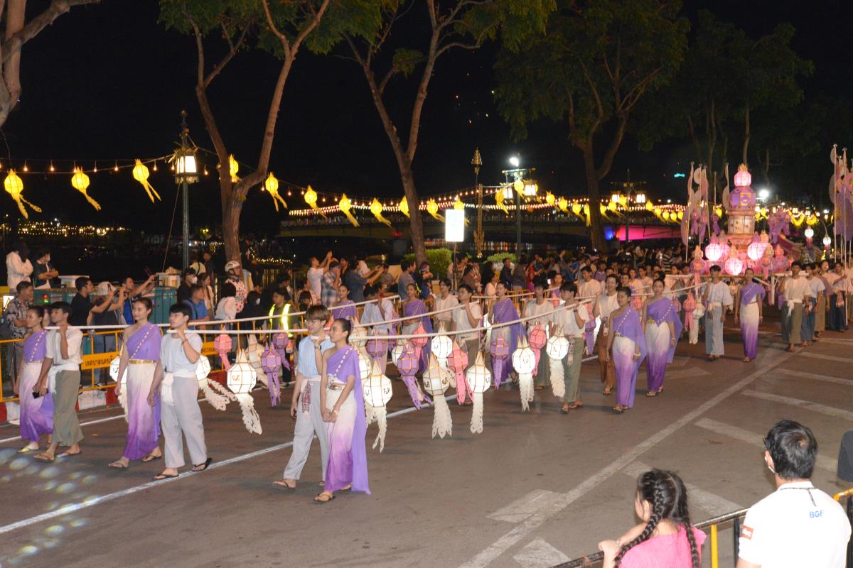ขบวนกระทงใหญ่ สืบสานประเพณีเดือนยี่เป็งเชียงใหม่ พร้อมริ้วขบวนวิจิตรตระการตา “โคมคำ สุวรรณหงส์”
