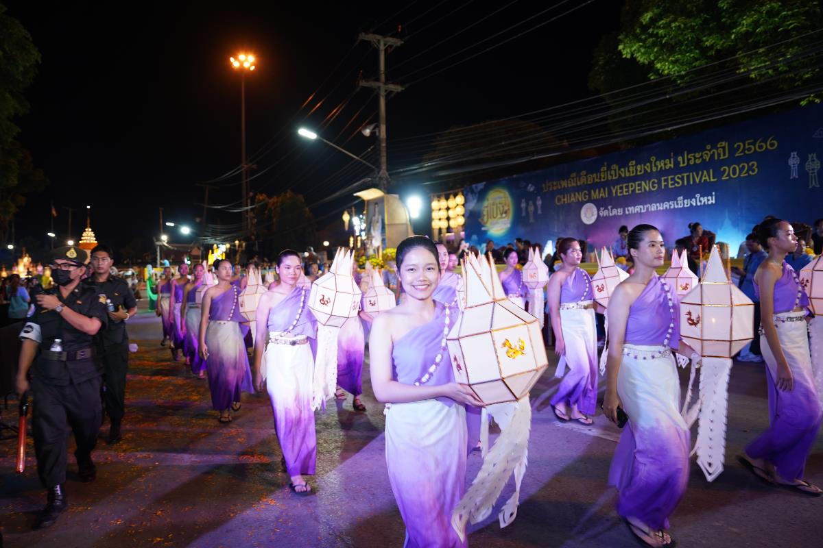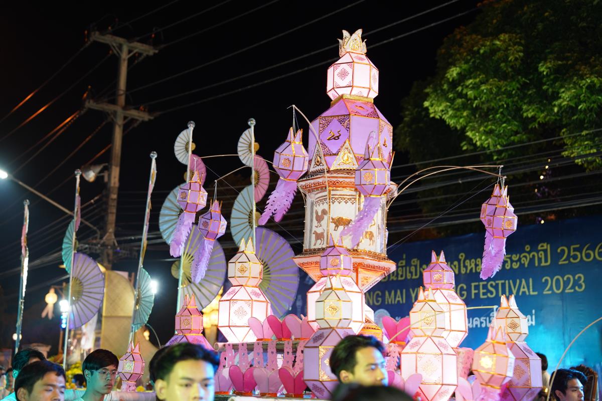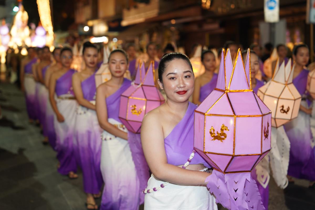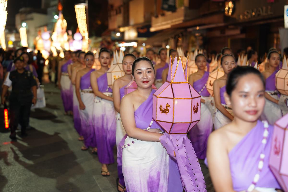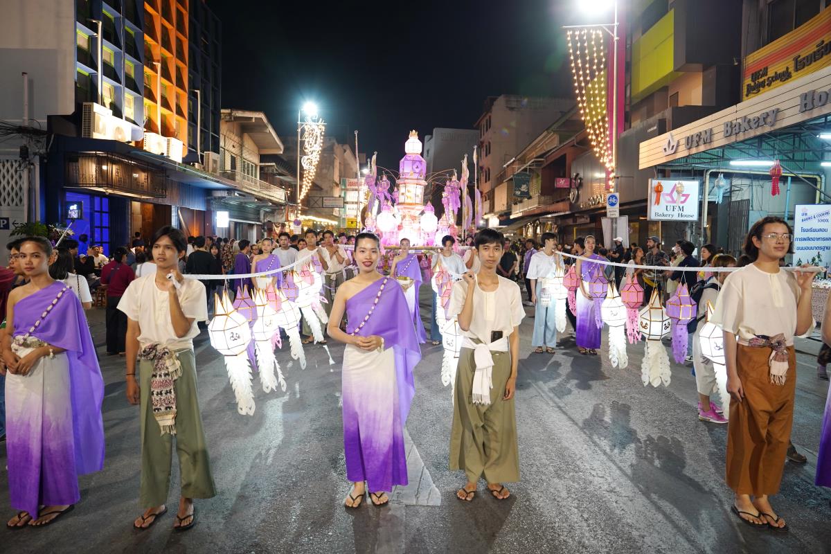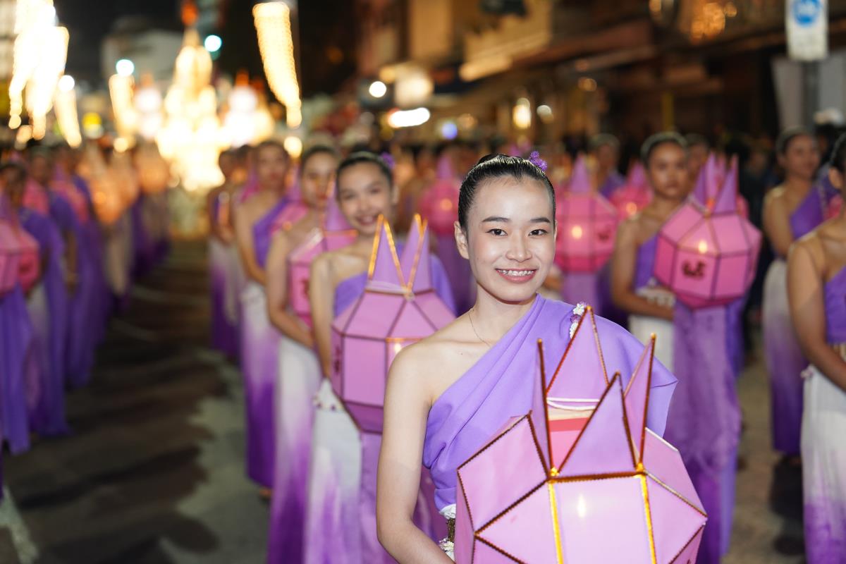 ขบวนกระทงใหญ่ สืบสานประเพณีเดือนยี่เป็งเชียงใหม่ พร้อมริ้วขบวนวิจิตรตระการตา “โคมคำ สุวรรณหงส์”