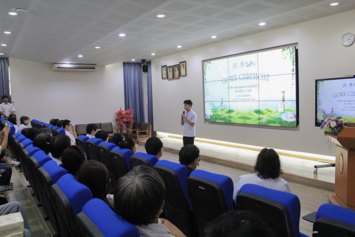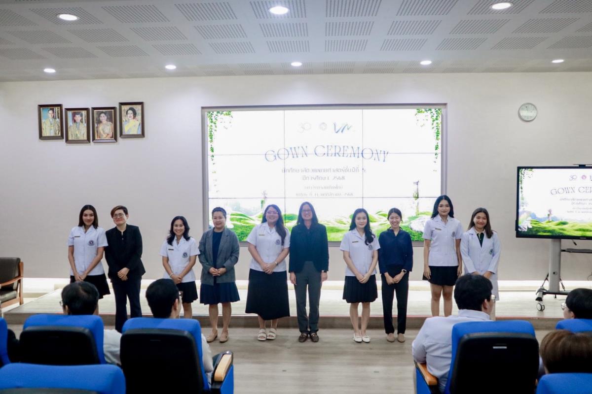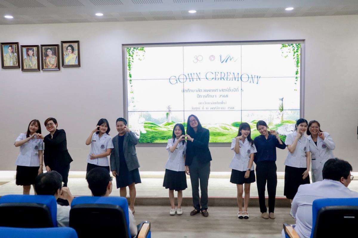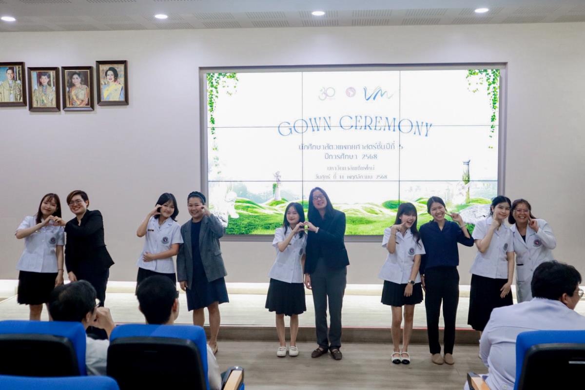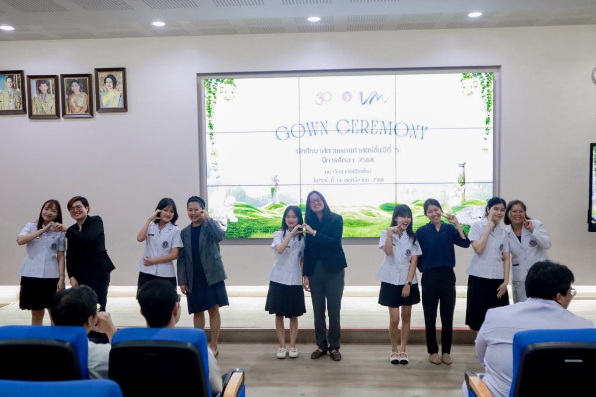 เมื่อวันที่ 14 พฤศจิกายน 2568 สโมสรนักศึกษาคณะสัตวแพทยศาสตร์ มหาวิทยาลัยเชียงใหม่ ได้จัดพิธีมอบกาวน์แก่นักศึกษาสัตวแพทย์ ประจำปีการศึกษา 2568 โดยมี ศ.ปฏิบัติ ดร. น.สพ.ฉัตรโชติ ทิตาราม รองคณบดีฝ่ายวิจัยนวัตกรรมและวิเทศสัมพันธ์ เป็นประธานในพิธี ภายในงาน ผู้บริหาร คณาจารย์ รวมถึงผู้ปกครองและครอบครัวของนักศึกษาชั้นปีที่ 5 มาร่วมแสดงความยินดีกับนักศึกษาที่กำลังก้าวเข้าสู่การเรียนในระดับหรือชั้นคลินิกอย่างเป็นทางการ พิธีมอบกาวน์นับเป็นสัญลักษณ์ของความมุ่งมั่น ความรับผิดชอบ และการก้าวสู่บทบาทวิชาชีพสัตวแพทย์ในอนาคต อันเป็นช่วงเวลาสำคัญของการเติบโตในเส้นทางการเรียนรู้ ณ คณะสัตวแพทยศาสตร์ มหาวิทยาลัยเชียงใหม่