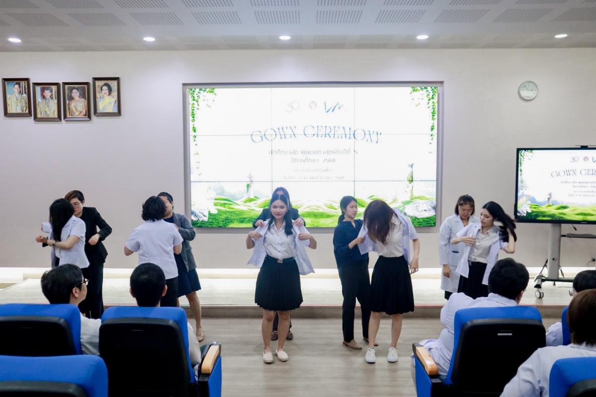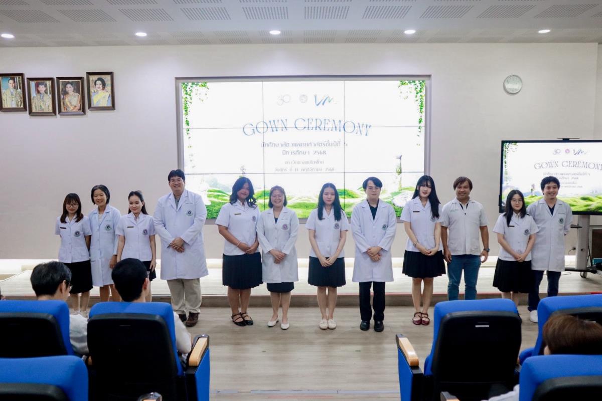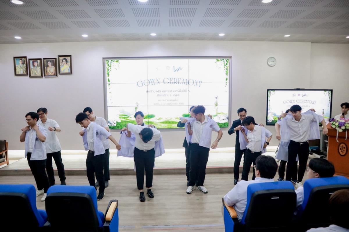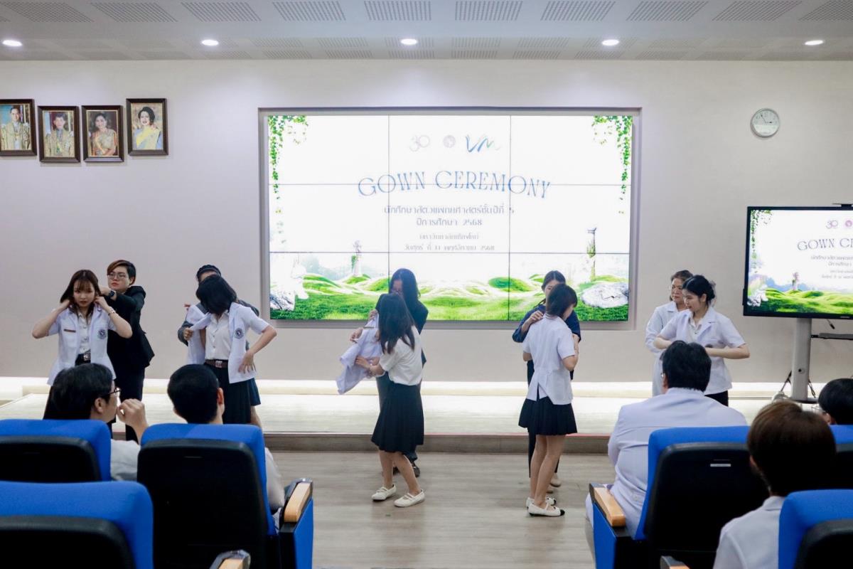เมื่อวันที่ 14 พฤศจิกายน 2568 สโมสรนักศึกษาคณะสัตวแพทยศาสตร์ มหาวิทยาลัยเชียงใหม่ ได้จัดพิธีมอบกาวน์แก่นักศึกษาสัตวแพทย์ ประจำปีการศึกษา 2568 โดยมี ศ.ปฏิบัติ ดร. น.สพ.ฉัตรโชติ ทิตาราม รองคณบดีฝ่ายวิจัยนวัตกรรมและวิเทศสัมพันธ์ เป็นประธานในพิธี ภายในงาน ผู้บริหาร คณาจารย์ รวมถึงผู้ปกครองและครอบครัวของนักศึกษาชั้นปีที่ 5 มาร่วมแสดงความยินดีกับนักศึกษาที่กำลังก้าวเข้าสู่การเรียนในระดับหรือชั้นคลินิกอย่างเป็นทางการ พิธีมอบกาวน์นับเป็นสัญลักษณ์ของความมุ่งมั่น ความรับผิดชอบ และการก้าวสู่บทบาทวิชาชีพสัตวแพทย์ในอนาคต อันเป็นช่วงเวลาสำคัญของการเติบโตในเส้นทางการเรียนรู้ ณ คณะสัตวแพทยศาสตร์ มหาวิทยาลัยเชียงใหม่