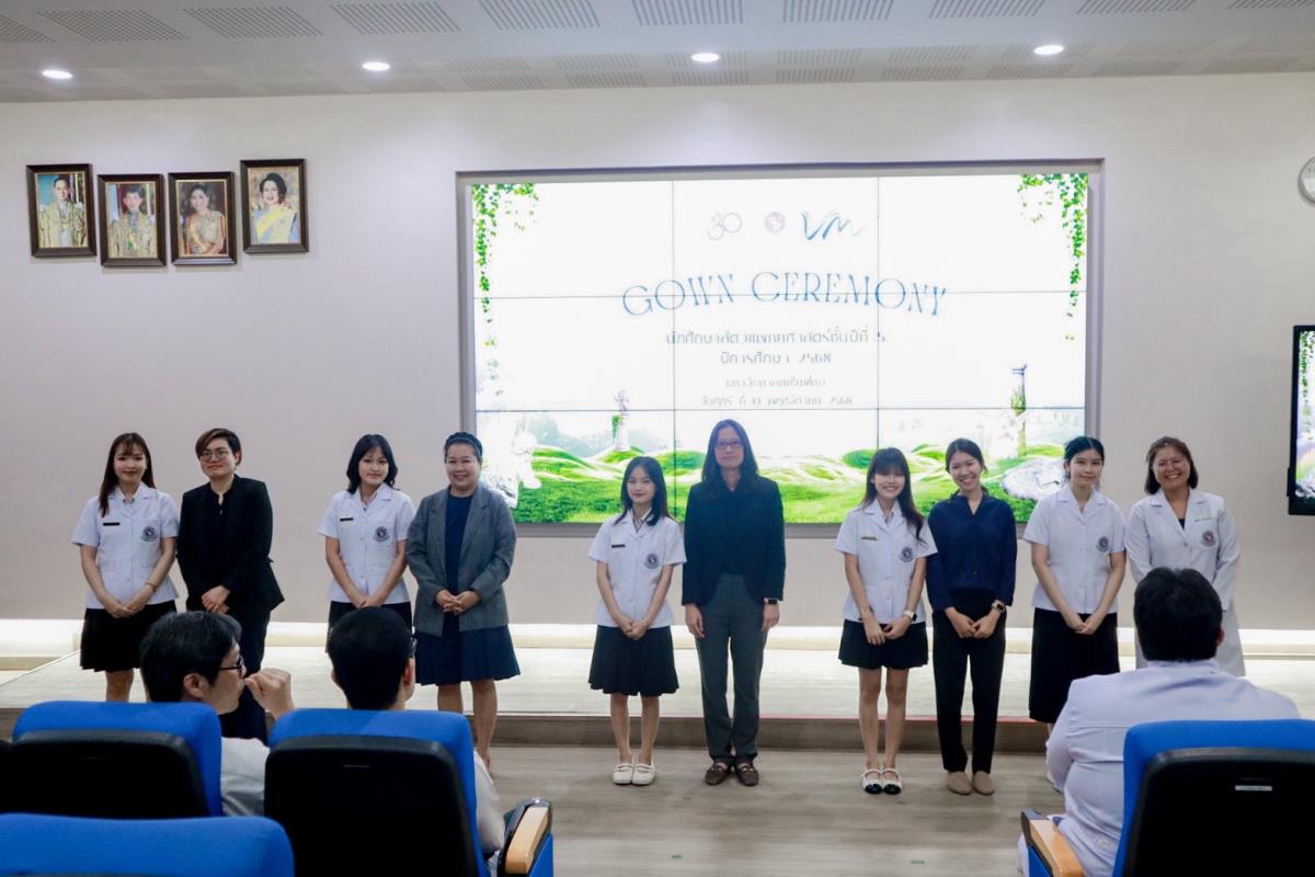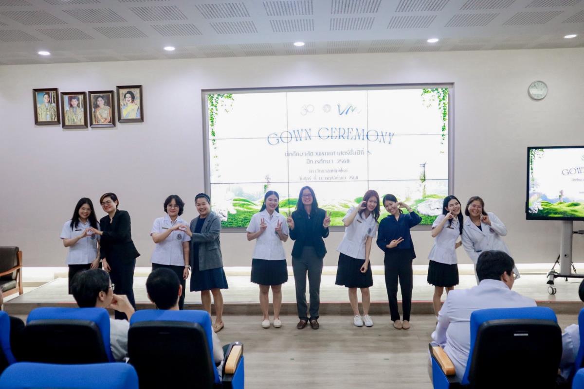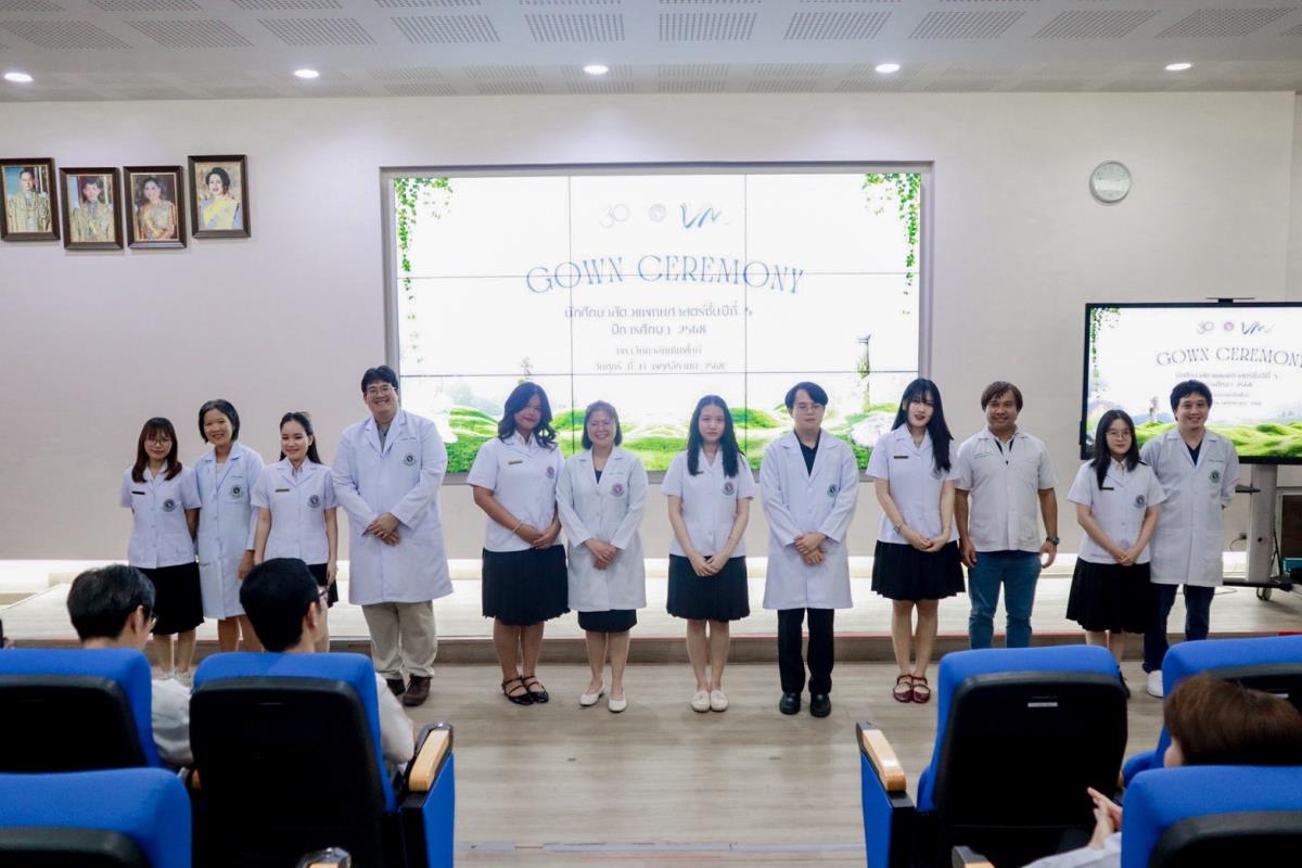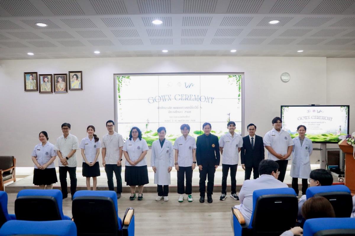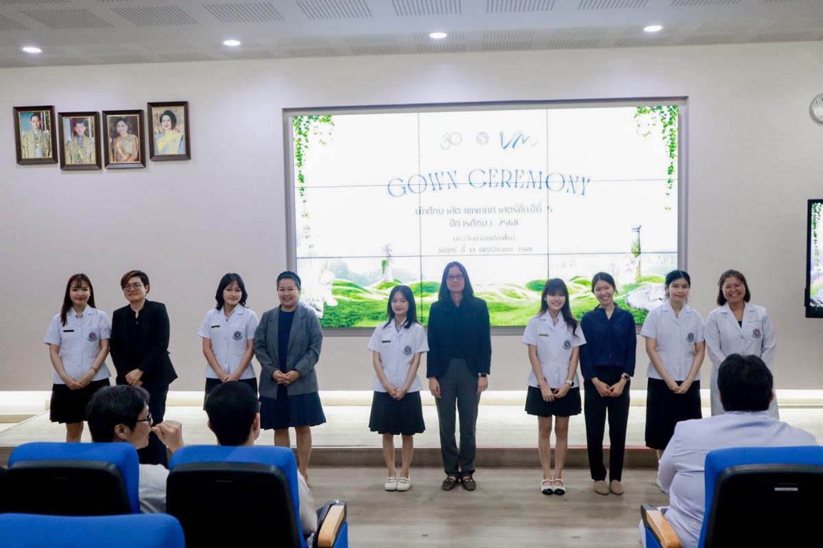 เมื่อวันที่ 14 พฤศจิกายน 2568 สโมสรนักศึกษาคณะสัตวแพทยศาสตร์ มหาวิทยาลัยเชียงใหม่ ได้จัดพิธีมอบกาวน์แก่นักศึกษาสัตวแพทย์ ประจำปีการศึกษา 2568 โดยมี ศ.ปฏิบัติ ดร. น.สพ.ฉัตรโชติ ทิตาราม รองคณบดีฝ่ายวิจัยนวัตกรรมและวิเทศสัมพันธ์ เป็นประธานในพิธี ภายในงาน ผู้บริหาร คณาจารย์ รวมถึงผู้ปกครองและครอบครัวของนักศึกษาชั้นปีที่ 5 มาร่วมแสดงความยินดีกับนักศึกษาที่กำลังก้าวเข้าสู่การเรียนในระดับหรือชั้นคลินิกอย่างเป็นทางการ พิธีมอบกาวน์นับเป็นสัญลักษณ์ของความมุ่งมั่น ความรับผิดชอบ และการก้าวสู่บทบาทวิชาชีพสัตวแพทย์ในอนาคต อันเป็นช่วงเวลาสำคัญของการเติบโตในเส้นทางการเรียนรู้ ณ คณะสัตวแพทยศาสตร์ มหาวิทยาลัยเชียงใหม่