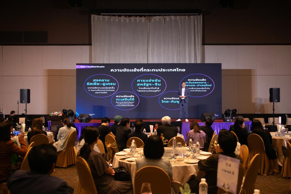 งานนี้จัดขึ้นในรูปแบบ Exclusive Dinner Talk ที่ผสมผสานบรรยากาศการเสวนาเชิงวิชาการ สะท้อนพลังความร่วมมือจากทุกภาคส่วน ตลอดจนความสนใจต่อประเด็นใหญ่แห่งยุคว่าด้วยการปรับตัวของธุรกิจในโลกที่เต็มไปด้วยความผันผวน ไฮไลท์สำคัญคือเวทีเสวนาจากผู้ทรงคุณวุฒิ 5 ท่าน ครอบคลุม 3 หัวข้อหลัก ได้แก่ Beyond Disruptions การวิเคราะห์ทิศทางอนาคตโลกธุรกิจ โดย ผศ. ดร.ก้องภู นิมานันท์ คณบดีคณะบริหารธุรกิจ มช., Beyond Survival การพลิกวิกฤติเป็นโอกาส โดยคุณปิยะชาติ อิศรภักดี CEO BRANDi และ Beyond Rivalry กลยุทธ์สร้างความได้เปรียบเหนือคู่แข่ง นำโดยคุณภาวุธ พงษ์วิทยภานุ CEO TARAD.COM พร้อมด้วยคุณธานี ตรีวัฒนาวงศ์ เจ้าของ Online Channel “DB ซัวเถา” และคุณกษิดิศ สตางค์มงคล เจ้าของเพจ “DataRockie” ที่มาร่วมถ่ายทอดมุมมองด้านเศรษฐกิจ ภูมิรัฐศาสตร์ และการตลาดเชิงข้อมูล (Data Marketing) โดยให้ข้อคิดเชิงลึกจากกูรูผู้เชี่ยวชาญ พร้อมเป็นพื้นที่แห่งการแลกเปลี่ยนมุมมอง การสร้างเครือข่าย (Networking) และการต่อยอดโอกาสทางธุรกิจในหลากหลายอุตสาหกรรมอย่างใกล้ชิด