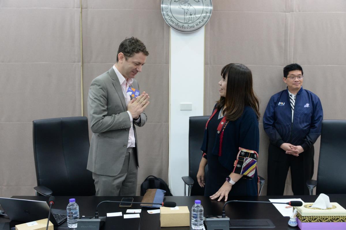 รองศาสตราจารย์ ดร.วินิตา บุณโยดม รองอธิการบดี พร้อมด้วยคณะผู้บริหารมหาวิทยาลัยเชียงใหม่ ให้การต้อนรับ Mr.Jamie Bloomfield, Director of Propelo Aviation ในโอกาสที่มาปรึกษาหารือความร่วมมือด้านการวิจัย "Aviation or Aerospace,e.g. UAS, Aerospace Materials, Electronics for Communication and Avionics" (Propelo Aviation) ณ ห้องประชุมผู้บริหาร 2 อาคารสำนักงานมหาวิทยาลัย 1 มหาวิทยาลัยเชียงใหม่ วันศุกร์ที่ 1 พฤศจิกายน พ.ศ. 2567