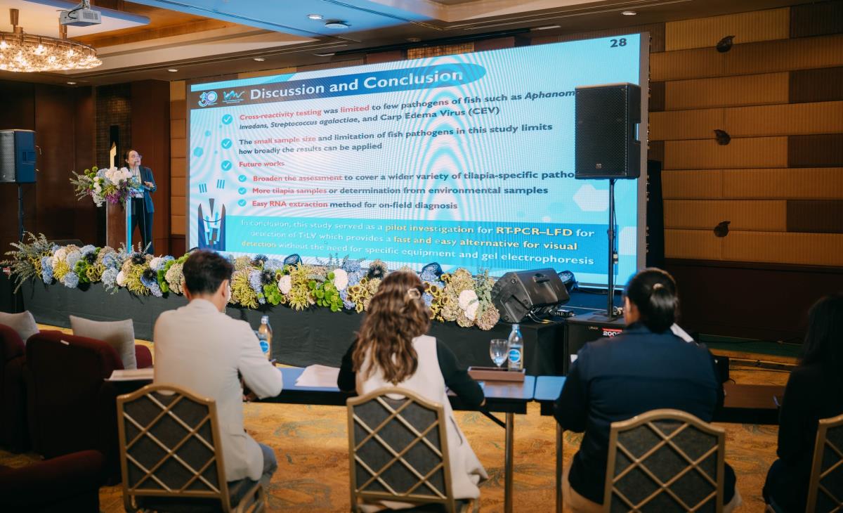 จากการนำเสนองานวิจัยเรื่อง A Novel Construction of a Reverse Transcriptase Polymerase Chain Reaction Coupled with Lateral Flow Dipstick for Visual Diagnosis of Tilapia Lake Virus