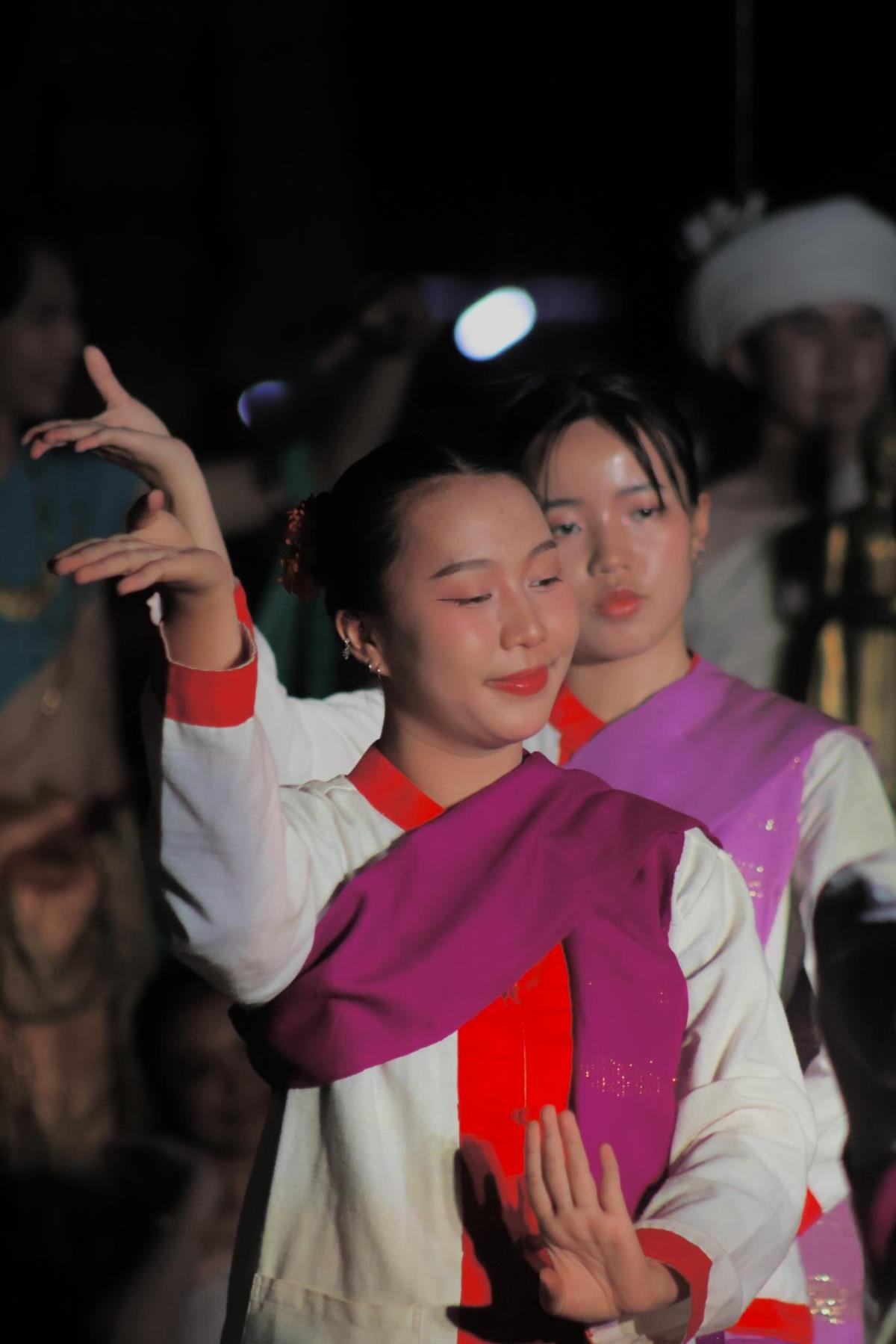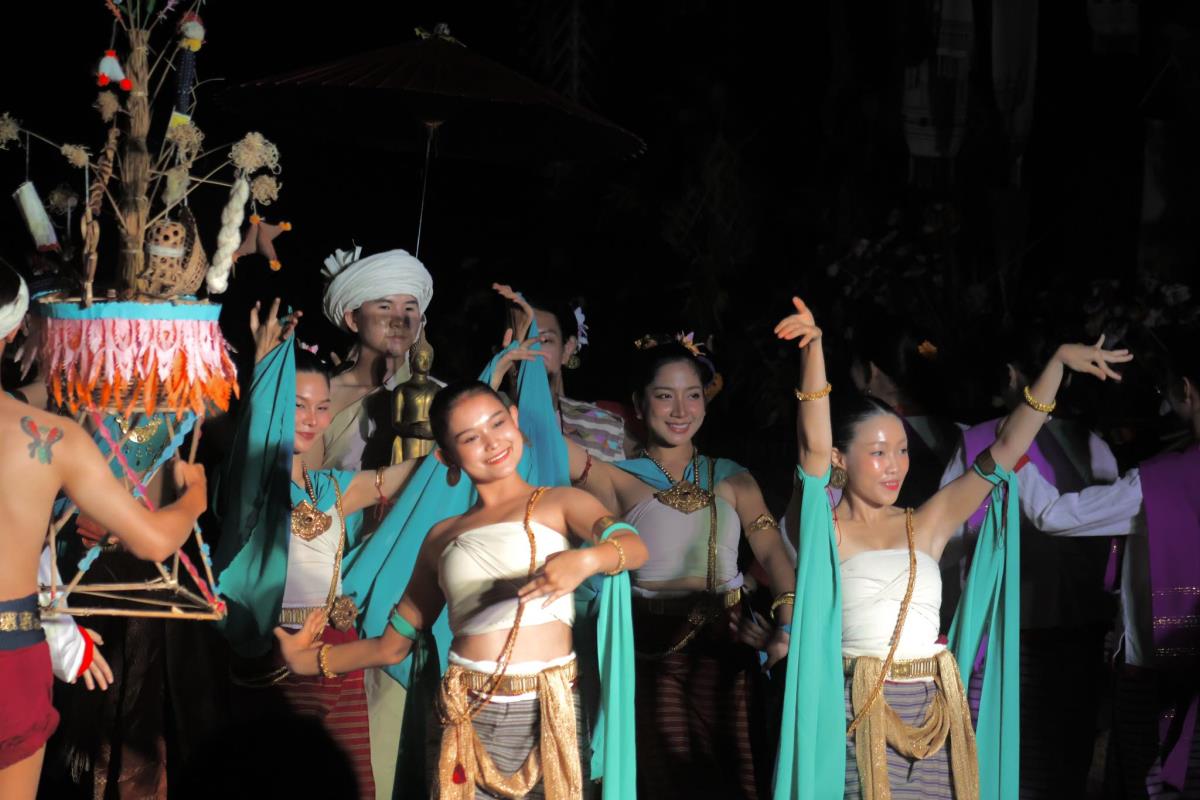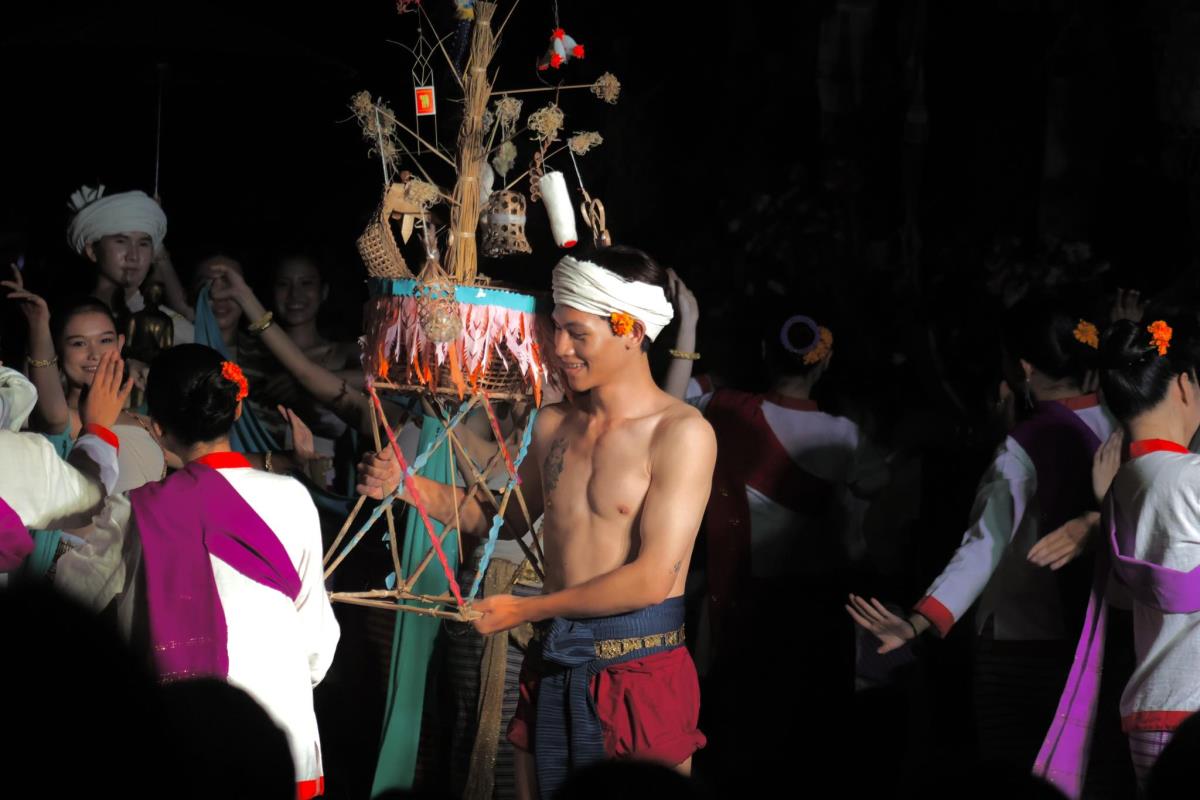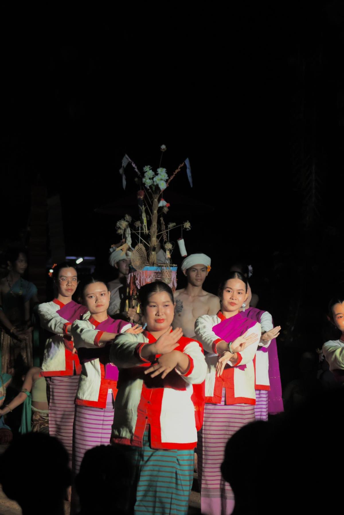 และยังมีการแสดงยามค่ำคืน วันดากิ๋นตานสลากหลวง จากสาขาวิชาศิลปะการแสดง คณะวิจิตรศิลป์ มช. ณ ข่วงแก้วอาราม วัดยางหลวง อ.แม่แจ่ม จ.เชียงใหม่