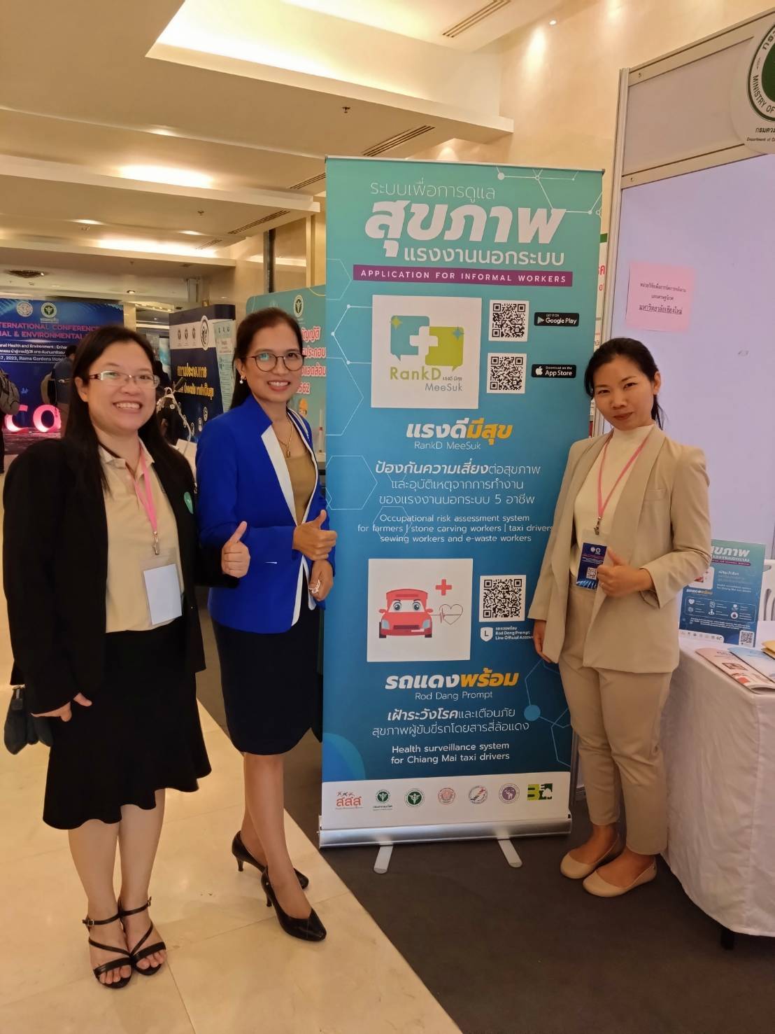 ระบบเพื่อการดูแลสุขภาพแรงงานนอกระบบ ชื่อ แรงดีมีสุข - RankD MeeSuk เป็นโครงการร่วมกันระหว่างหน่วยวิจัยฯ คณะพยาบาลศาสตร์ มช. และกองโรคจากการประกอบอาชีพและสิ่งแวดล้อม กรมควบคุมโรค เพื่อช่วยป้องกันความเสี่ยงต่อสุขภาพและอุบัติเหตุจากการทำงานของแรงงานนอกระบบ โดยมีการประเมินความเสี่ยงสำหรับแต่ละอาชีพ ให้คำแนะนำที่เหมาะสม พร้อมสร้างประวัติสุขภาพ ซึ่งฐานข้อมูลสุขภาพนี้จะช่วยสนับสนุนการทำงานของเจ้าหน้าที่สาธารณสุขในการป้องกันโรคและดูแลสุขภาพของแรงงานนอกระบบ โดยระบบขยายผลมาจากระบบรถแดงพร้อม ที่ถูกนำไปใช้เพื่อเฝ้าระวังโรคและดูแลสุขภาพของผู้ขับขี่รถโดยสารสี่ล้อแดงในจังหวัดเชียงใหม่
