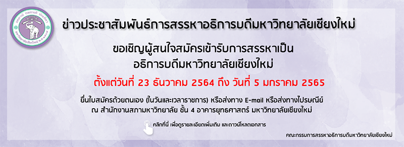 ขอเชิญผู้สนใจสมัครเข้ารับการสรรหาเป็น อธิการบดีมหาวิทยาลัยเชียงใหม่