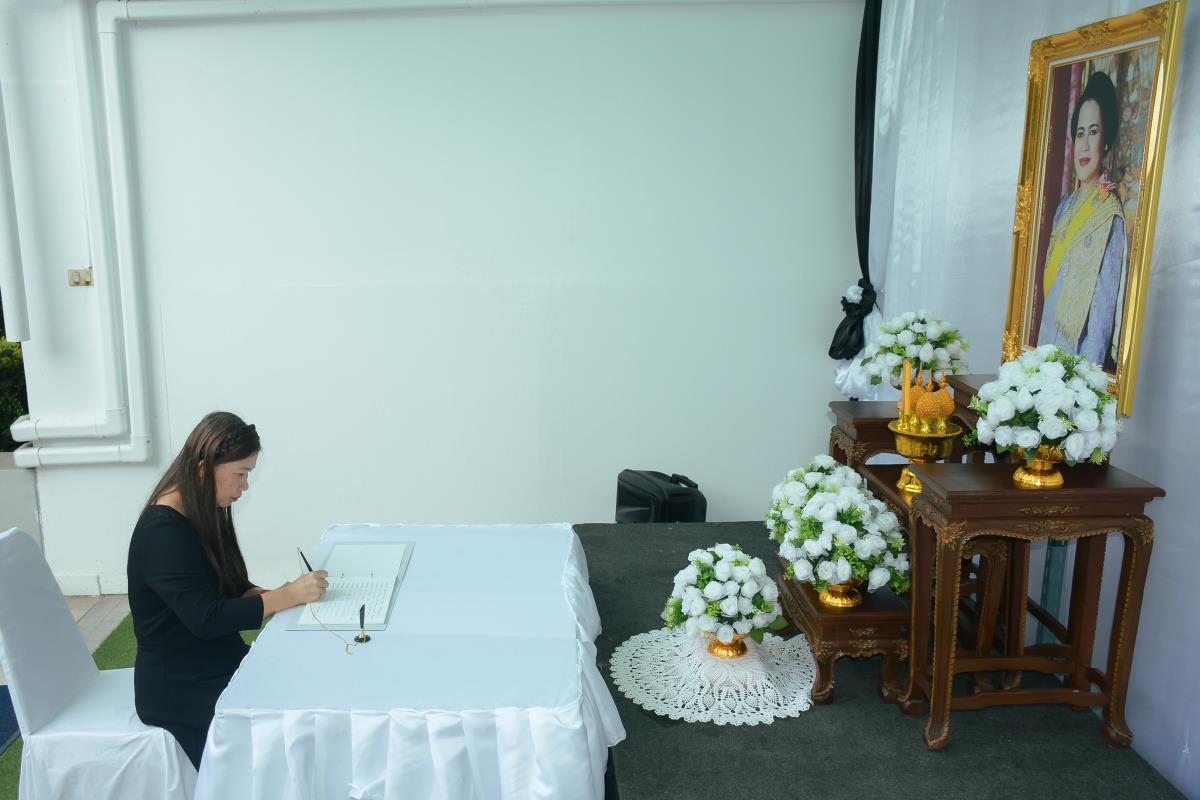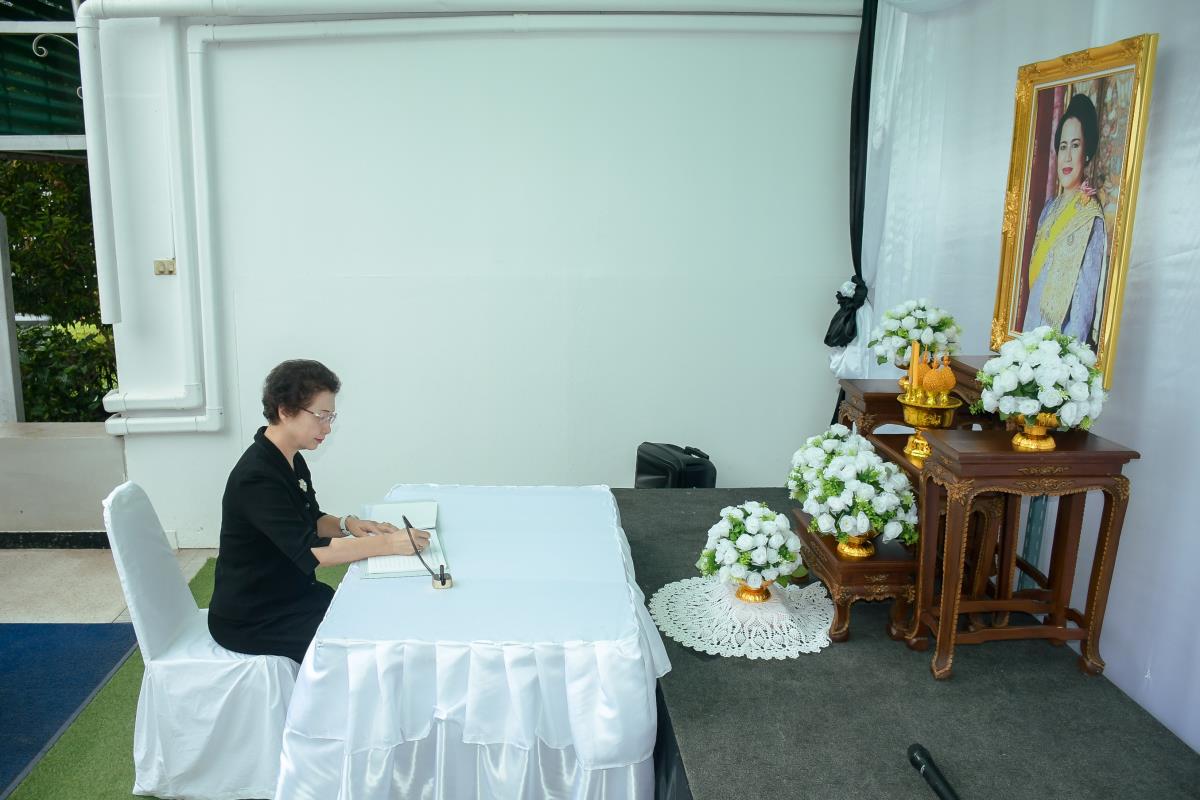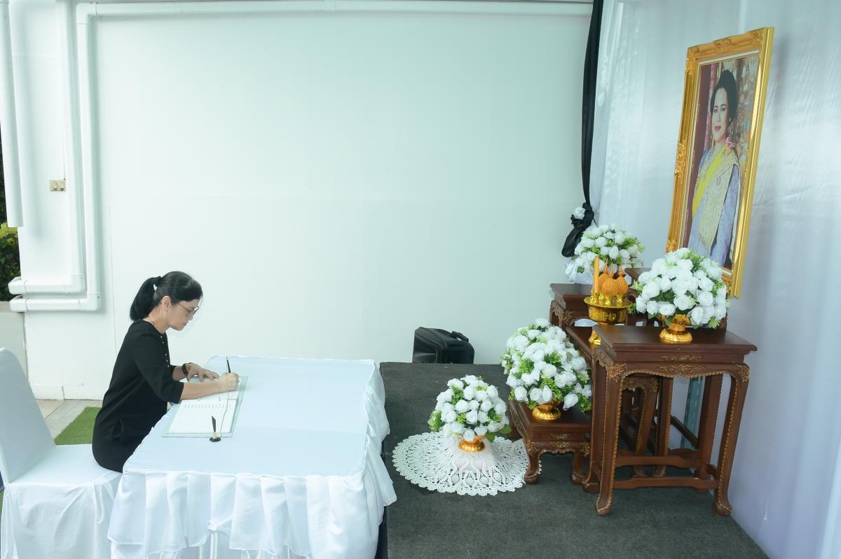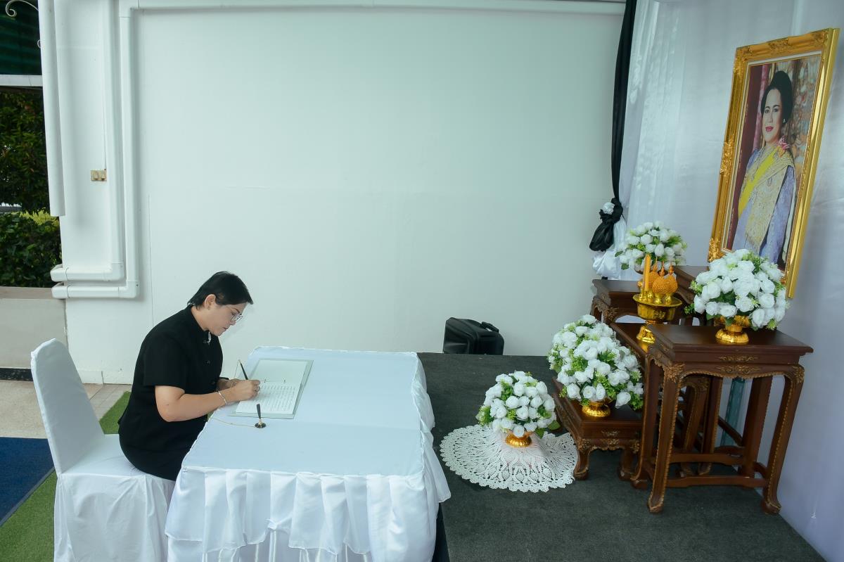 วันจันทร์ที่ 3 พฤศจิกายน 2568 ณ ห้องโถงชั้น 1 อาคาร 1 คณะพยาบาลศาสตร์ มหาวิทยาลัยเชียงใหม่ ผู้ช่วยศาสตราจารย์ ดร.สุภารัตน์ วังศรีคูณ คณบดีคณะพยาบาลศาสตร์ พร้อมด้วย ดร.หรรษา เทียนทอง นายกสมาคมพยาบาลแห่งประเทศไทยฯ สาขาภาคเหนือ คณะผู้บริหาร คณาจารย์ บุคลากร และนักศึกษา ร่วมพิธีลงนามถวายความอาลัยและถวายความเคารพเบื้องหน้าพระบรมฉายาลักษณ์สมเด็จพระนางเจ้าสิริกิติ์ พระบรมราชินีนาถ พระบรมราชชนนีพันปีหลวง พระผู้เสด็จสู่สวรรคาลัย