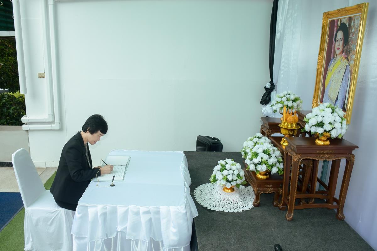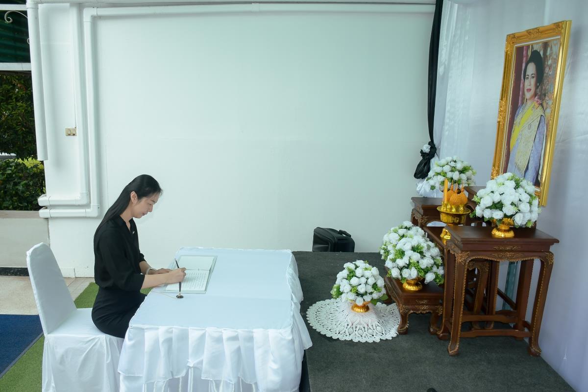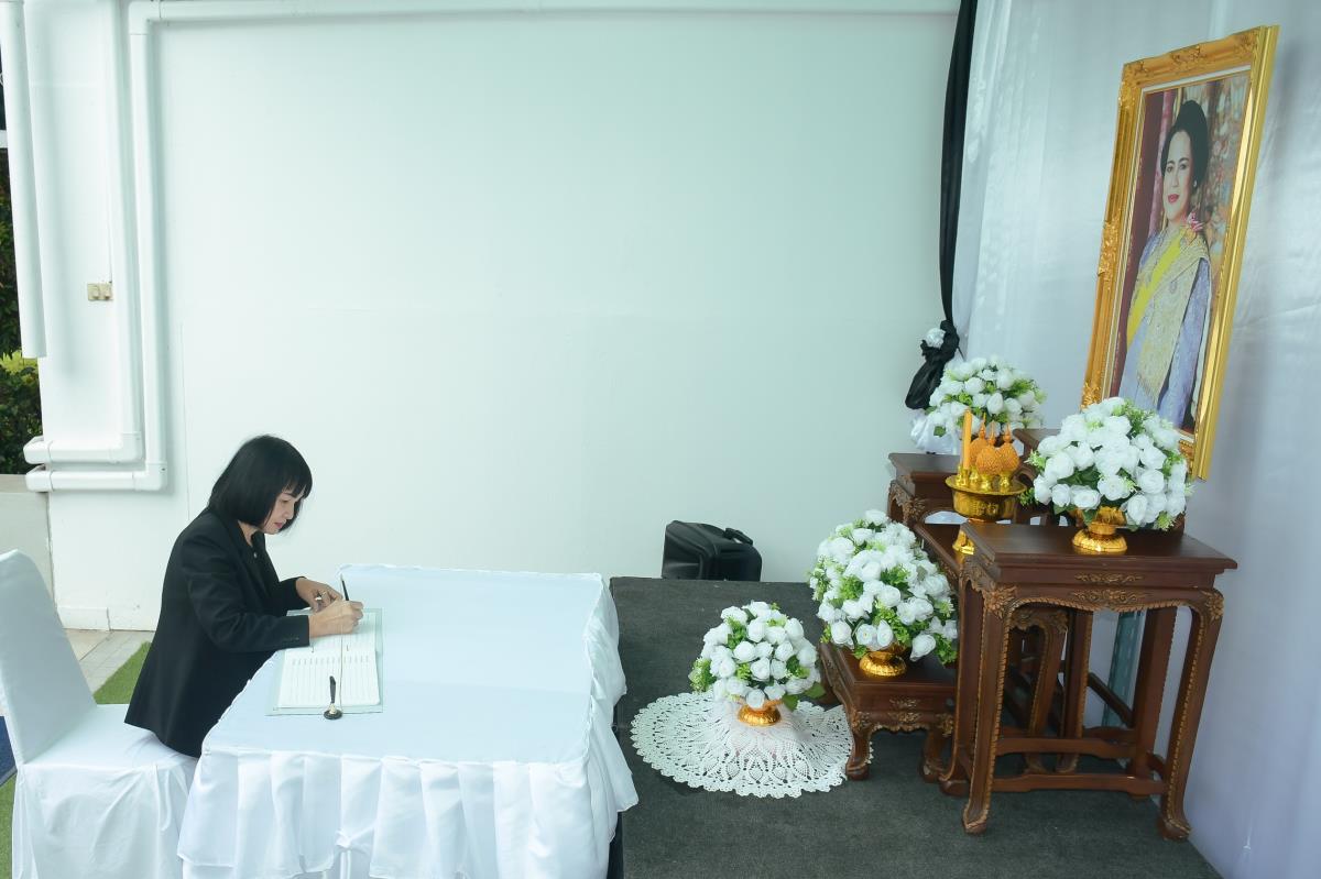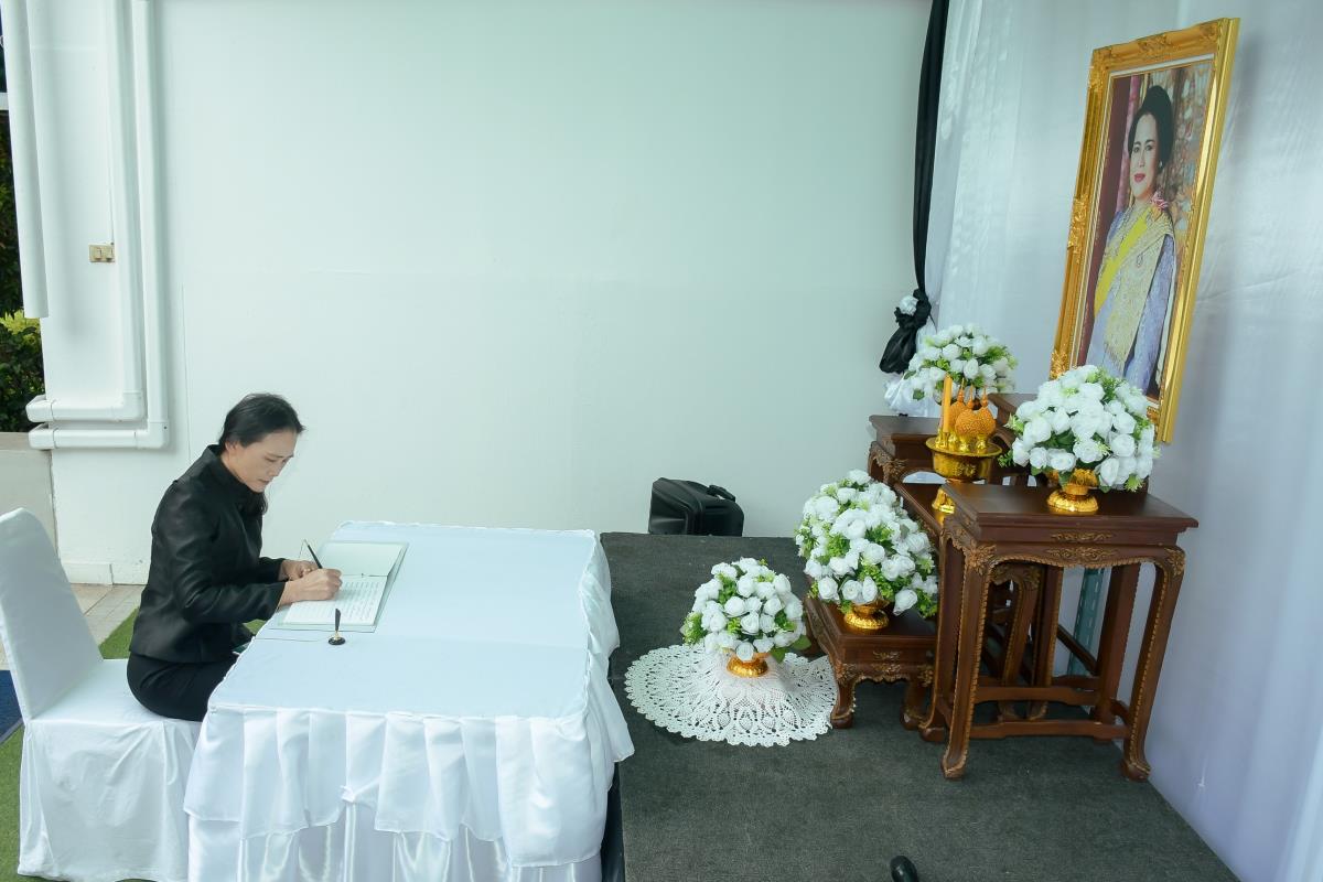 วันจันทร์ที่ 3 พฤศจิกายน 2568 ณ ห้องโถงชั้น 1 อาคาร 1 คณะพยาบาลศาสตร์ มหาวิทยาลัยเชียงใหม่ ผู้ช่วยศาสตราจารย์ ดร.สุภารัตน์ วังศรีคูณ คณบดีคณะพยาบาลศาสตร์ พร้อมด้วย ดร.หรรษา เทียนทอง นายกสมาคมพยาบาลแห่งประเทศไทยฯ สาขาภาคเหนือ คณะผู้บริหาร คณาจารย์ บุคลากร และนักศึกษา ร่วมพิธีลงนามถวายความอาลัยและถวายความเคารพเบื้องหน้าพระบรมฉายาลักษณ์สมเด็จพระนางเจ้าสิริกิติ์ พระบรมราชินีนาถ พระบรมราชชนนีพันปีหลวง พระผู้เสด็จสู่สวรรคาลัย
