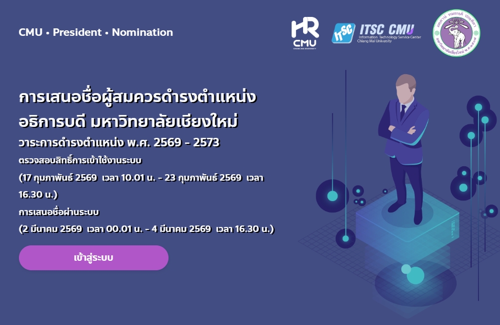 มหาวิทยาลัยเชียงใหม่ เปิดโอกาสให้ผู้ปฏิบัติงานในมหาวิทยาลัยเชียงใหม่เสนอชื่อผู้สมควรดำรงตำแหน่งอธิการบดีมหาวิทยาลัยเชียงใหม่ วาระ พ.ศ. 2569 - 2573 ในวันที่ 2 – 4 มีนาคม 2569 เพื่อให้ได้รายชื่อบุคคลที่มีความรู้ ความสามารถ และวิสัยทัศน์ ที่เหมาะสมกับการบริหารมหาวิทยาลัยในอนาคต