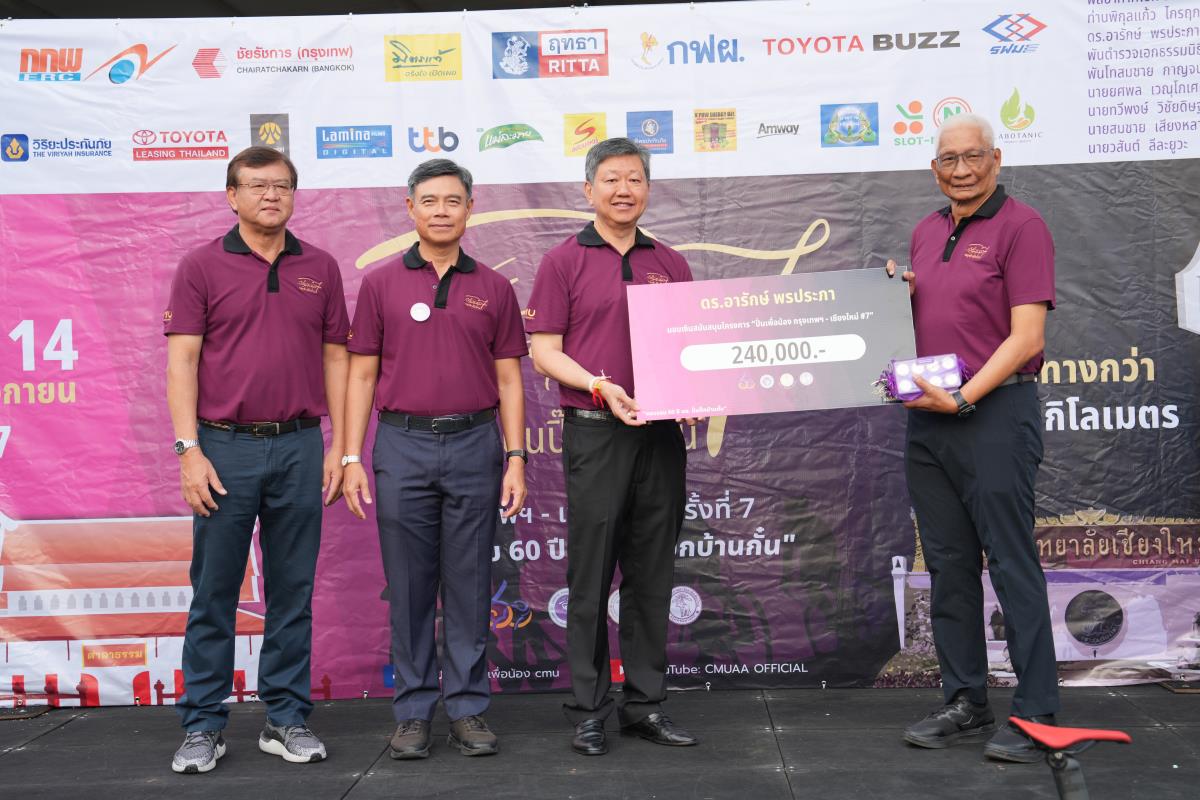 มหาวิทยาลัยเชียงใหม่ ร่วมกับ สมาคมนักศึกษาเก่ามหาวิทยาลัยเชียงใหม่ สมาคมนักศึกษาเก่ามหาวิทยาลัยเชียงใหม่ กรุงเทพฯ และสมาคม ชมรมนักศึกษาเก่ามหาวิทยาลัยเชียงใหม่ จังหวัดอยุธยา จังหวัดลพบุรี จังหวัดสิงห์บุรี จังหวัดชัยนาท จังหวัดอุทัยธานี จังหวัดนครสวรรค์ จังหวัดพิจิตร จังหวัดพิษณุโลก จังหวัดสุโขทัย จังหวัดตาก และจังหวัดลำปาง จัดกิจกรรมการกุศล ปั่นเพื่อน้อง กรุงเทพฯ - เชียงใหม่ ครั้งที่ 7 ฉลอง “ครบรอบ 60 ปี มช. ปั่นปิ๊กบ้านกั๋น” ระหว่างวันเสาร์ที่ 9 – วันพฤหัสบดีที่ 14 พฤศจิกายน 2567 เส้นทางปั่นจะเริ่มจากกรุงเทพมหานคร ไปยังจังหวัดลพบุรี นครสวรรค์ พิษณุโลก ตาก ลำปาง และสิ้นสุดมหาวิทยาลัยเชียงใหม่ รวมระยะทาง 800 กิโลเมตร โดยมี ศาสตราจารย์ ดร.นายแพทย์พงษ์รักษ์ ศรีบัณฑิตมงคล อธิการบดีมหาวิทยาลัยเชียงใหม่ เป็นประธานในพิธีปล่อยขบวนจักรยาน นายสุวพันธุ์ ตันยุวรรธนะ ประธานคณะกรรมการดำเนินงานฯ รับมอบเงินสนับสนุน นายสุมิตร เพชราภิรัชต์ นายกสมาคมนักศึกษาเก่ามหาวิทยาลัยเชียงใหม่ มอบของที่ระลึกแก่ผู้สนับสนุน กล่าวขอบคุณ นายพงษ์เดช ศรีวชิรประดิษฐ์ รองประธานคณะกรรมการดำเนินงาน กล่าวรายงาน เมื่อวันเสาร์ที่ 9 พฤศจิกายน 2567 ณ บริษัท โตโยต้าบัสส์ จำกัด สาขาถนนวิภาวดี กรุงเทพฯ