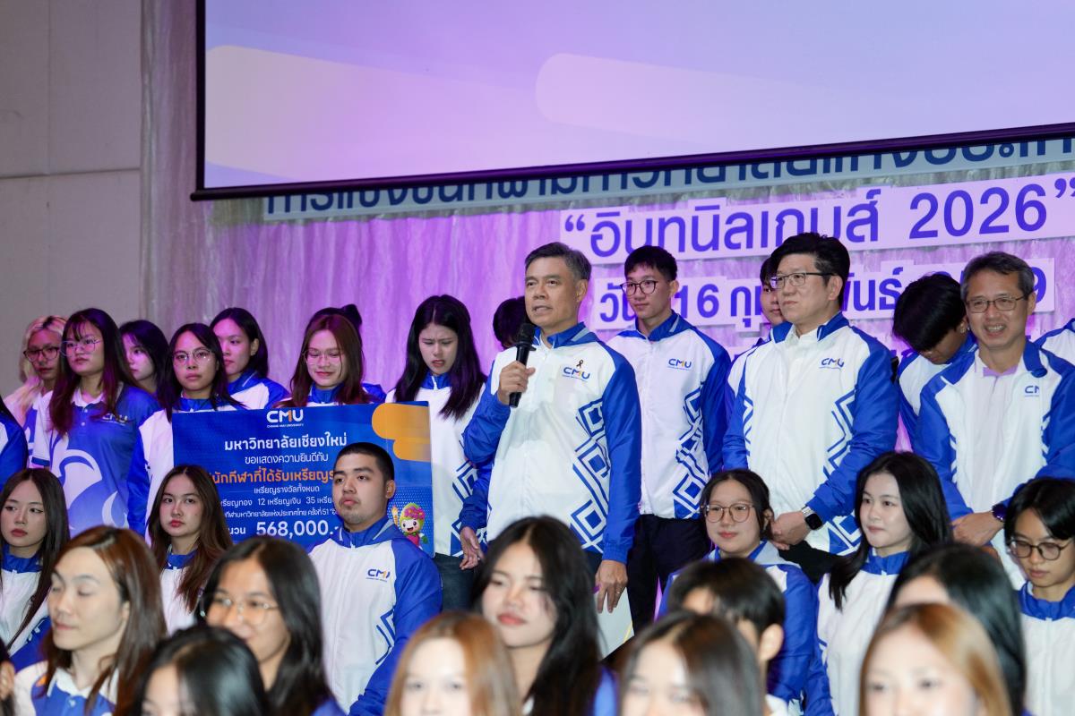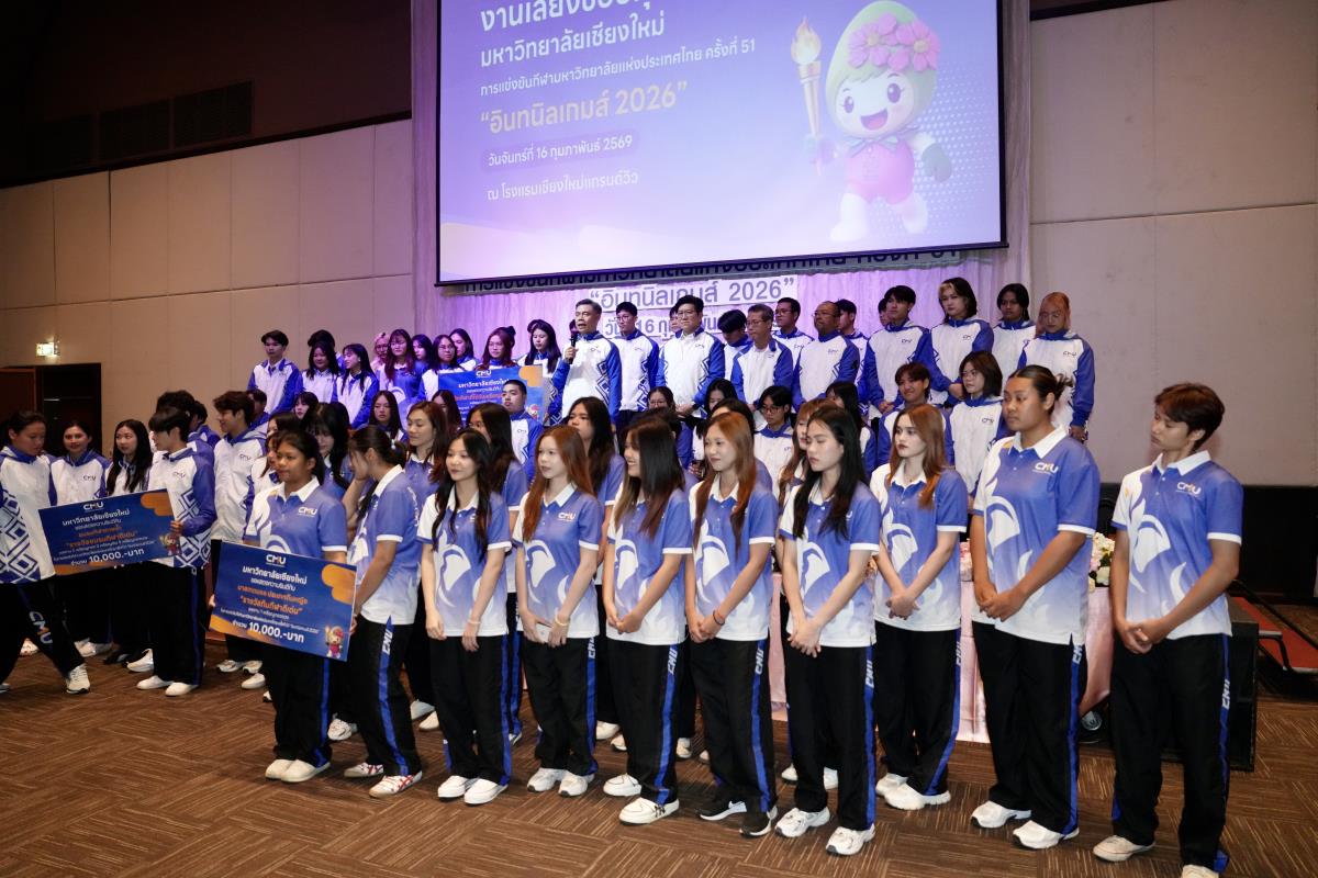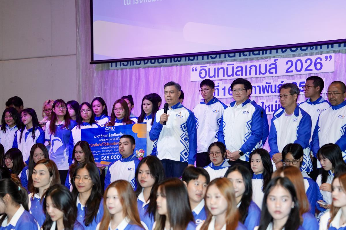 ศาสตราจารย์ ดร.นายแพทย์พงษ์รักษ์ ศรีบัณฑิตมงคล อธิการบดีมหาวิทยาลัยเชียงใหม่ พร้อมด้วยคณะผู้บริหารมหาวิทยาลัยเชียงใหม่ มอบรางวัลทีมกีฬาดีเด่น ได้แก่ทีมบาสเกตบอล ประเภททีมหญิง มอบรางวัลชมรมกีฬาดีเด่น ได้แก่ชมรมกีฬาทางน้ำ และมอบเงินสนับสนุนนักกีฬาที่ได้รับเหรียญรางวัล ที่เข้าร่วมการแข่งขันกีฬามหาวิทยาลัยแห่งประเทศไทย ครั้งที่ 51 "อินทนิลเกมส์ 2026" ระหว่างวันที่ 9-19 มกราคม 2569 ณ มหาวิทยาลัยแม่โจ้ จังหวัดเชียงใหม่ และกล่าวขอบคุณผู้ที่เกี่ยวข้องและให้การสนับสนุน สำหรับผลงานของทัพนักกีฬามหาวิทยาลัยเชียงใหม่ อยู่อันดับที่ 12 จากสถาบันอุดมศึกษาที่เข้าร่วมการแข่งขันกว่า 109 สถาบัน คว้าชัย 6 เหรียญทอง 11 เหรียญเงิน และ 35 เหรียญทองแดง รวม 52 เหรียญ มีนักกีฬามหาวิทยาลัยเชียงใหม่ได้รับเหรียญรางวัล จำนวน 98 คน และได้รับทุนสนับสนุนการศึกษาสำหรับนักกีฬาที่ทำชื่อเสียงให้มหาวิทยาลัยเชียงใหม่ในการแข่งขันกีฬามหาวิทยาลัยแห่งประเทศไทย ครั้งที่ 51 ดังกล่าว จำนวนมูลค่ารวมทั้งสิ้น 586,000.-บาท (ห้าแสนแปดหมื่นหกพันบาทถ้วน) ณ โรงแรมเชียงใหม่แกรนด์วิว จ.เชียงใหม่ เมื่อวันจันทร์ที่ 16 กุมภาพันธ์ 2569