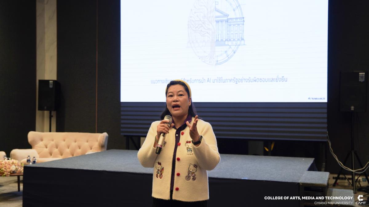 วิทยาลัยศิลปะ สื่อ และเทคโนโลยี มหาวิทยาลัยเชียงใหม่ เดินหน้าติวเข้มบุคลากร จัดอบรมหลักสูตร “Generative AI รุ่นที่ 1” โดยมีวัตถุประสงค์เพื่อเสริมสร้างทักษะการใช้ AI จัดการเอกสารและวิเคราะห์ข้อมูล รวมทั้งการสร้างสรรค์ภาพและออกแบบสื่อประชาสัมพันธ์ด้วย Generative AI ซึ่งจะช่วยเพิ่มประสิทธิภาพในการทำงานให้แก่บุคลากร โดยกิจกรรมดังกล่าวได้รับเกียรติจากผู้ช่วยศาสตราจารย์ ดร.รัศมิ์ลภัส สุตีคา หัวหน้าสำนักวิชาศิลปะ สื่อ และเทคโนโลยี เป็นวิทยากรพิเศษที่นำองค์ความรู้ประสบการณ์และความเชี่ยวชาญมาถ่ายทอดให้แก่ผู้เข้าร่วมอบรม ระหว่างวันที่ 10 - 11 กุมภาพันธ์ 2569 ณ โรงแรมวินทรี ซิตี้ รีสอร์ท เชียงใหม่