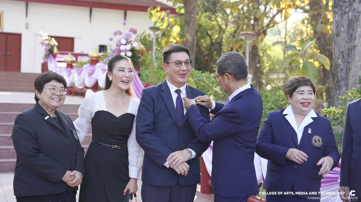 วิทยาลัยศิลปะ สื่อ และเทคโนโลยี มหาวิทยาลัยเชียงใหม่ นำโดย ผู้ช่วยศาสตราจารย์ ดร.วรวิชญ์ จันทร์ฉาย คณบดี พร้อมคณะผู้บริหาร ร่วมพิธีประกาศเกียรติคุณและเชิดชูเกียรตินักศึกษาเก่ามหาวิทยาลัยเชียงใหม่ดีเด่น ประจำปี 2568