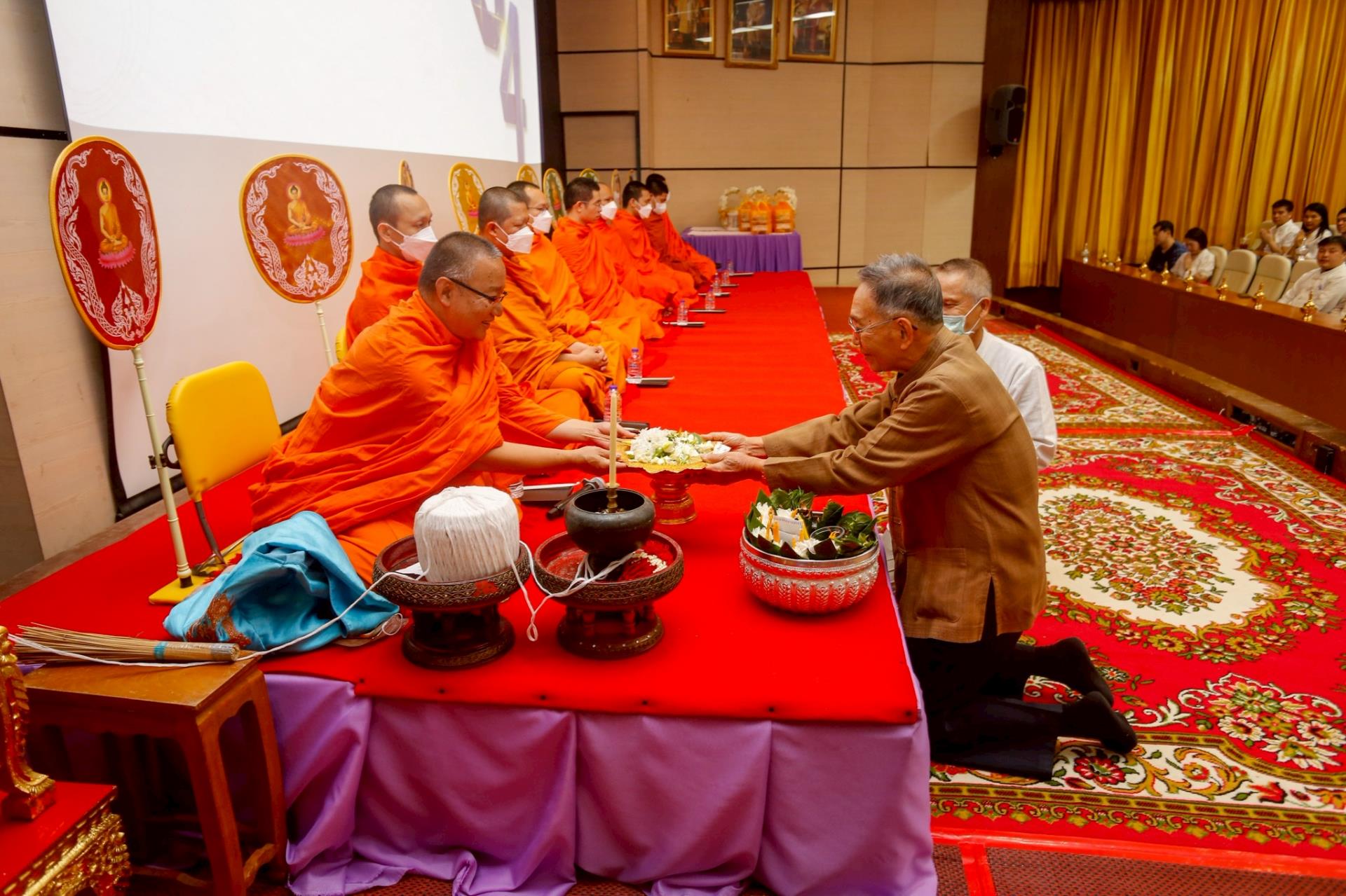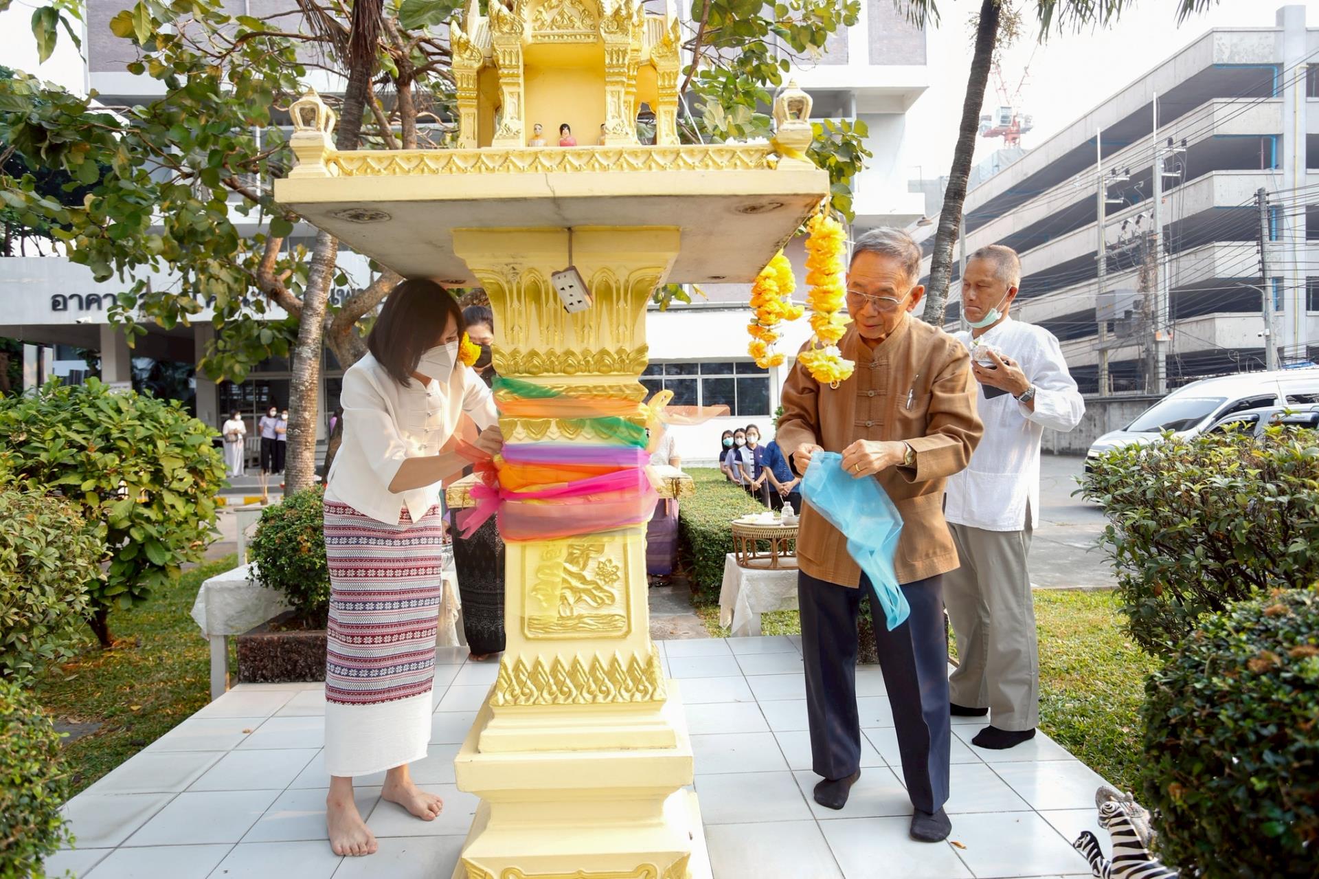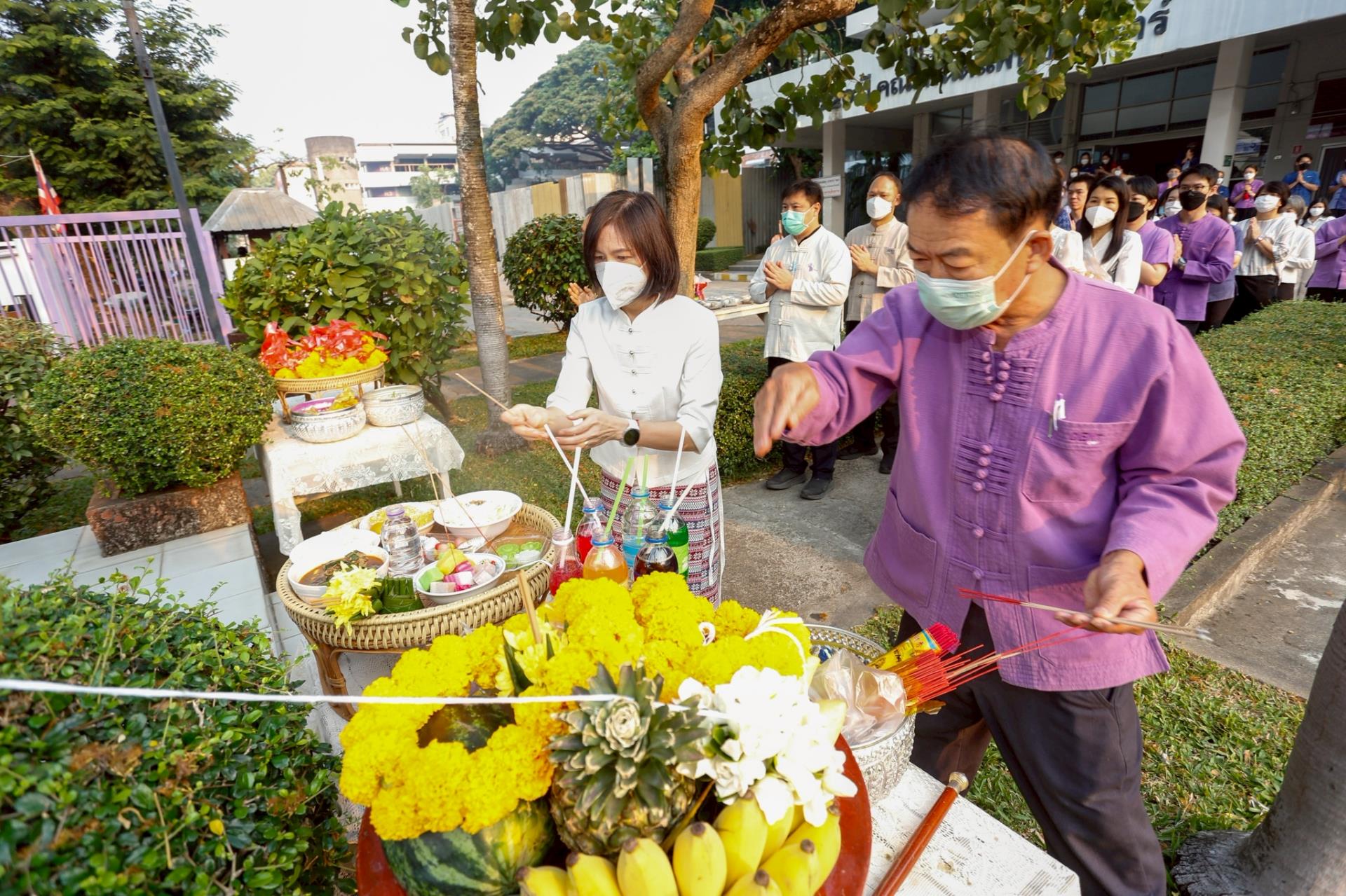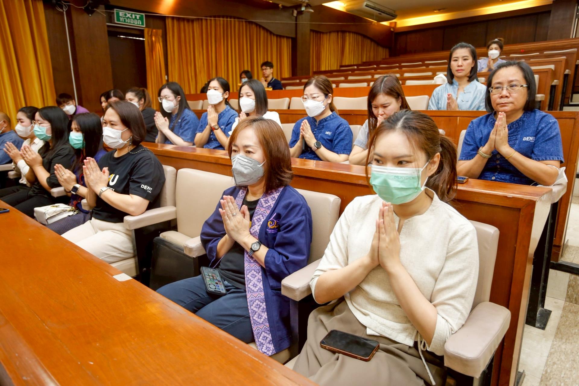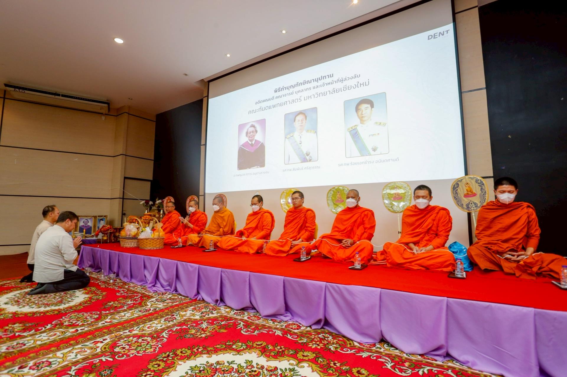 ในพิธีการมีการประกอบพิธีทางศาสนา ไหว้พระสมาทานศีล และการสวดเจริญพระพุทธมนต์โดยพระภิกษุสงฆ์จากวัดสวนดอก พระอารามหลวง รวมทั้งพิธีทักษิณานุปทานและการถวายผ้าบังสุกุล เพื่ออุทิศส่วนบุญส่วนกุศลให้แก่ปูชนียบุคคลผู้ล่วงลับ อันประกอบด้วยอดีตคณบดี คณาจารย์ ข้าราชการ และบุคลากรเจ้าหน้าที่ผู้เคยสร้างคุณูปการให้แก่คณะฯ มาโดยตลอด พร้อมการถวายเครื่องสักการะแด่สิ่งศักดิ์สิทธิ์ที่ปกปักรักษาพื้นที่ เพื่อสร้างขวัญและกำลังใจให้กับชาวทันตแพทย์ มช. ในการปฏิบัติหน้าที่สืบไป