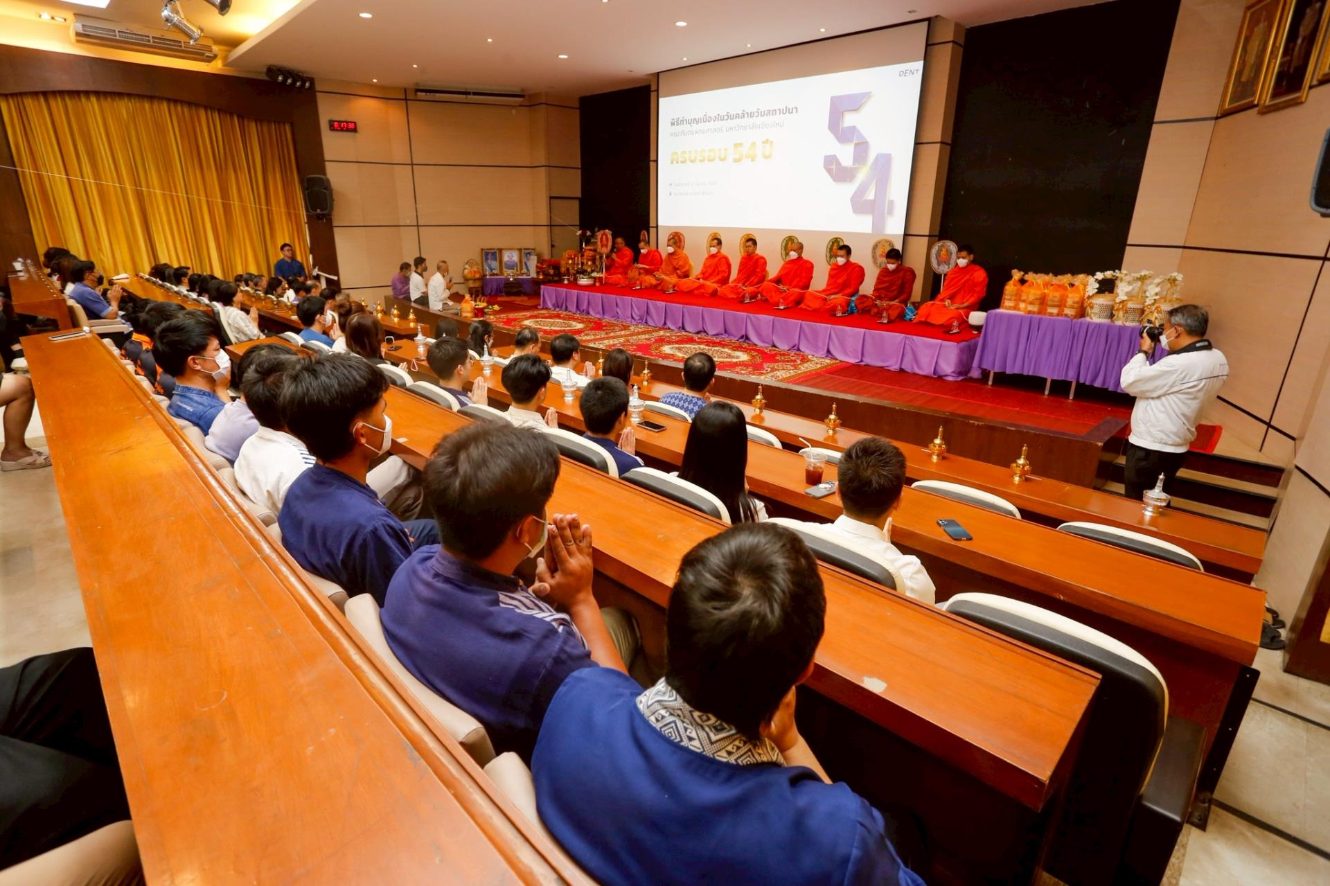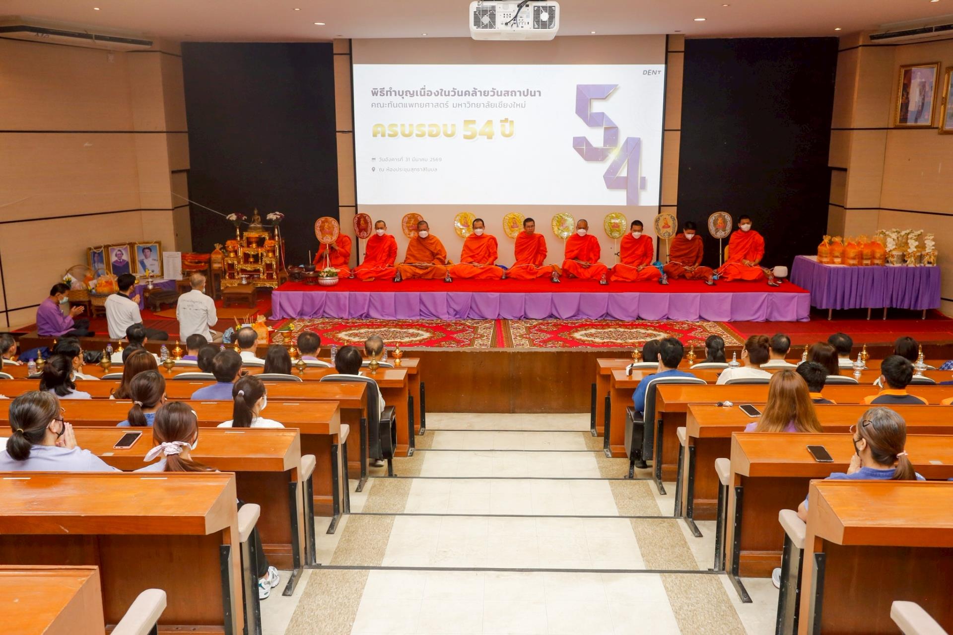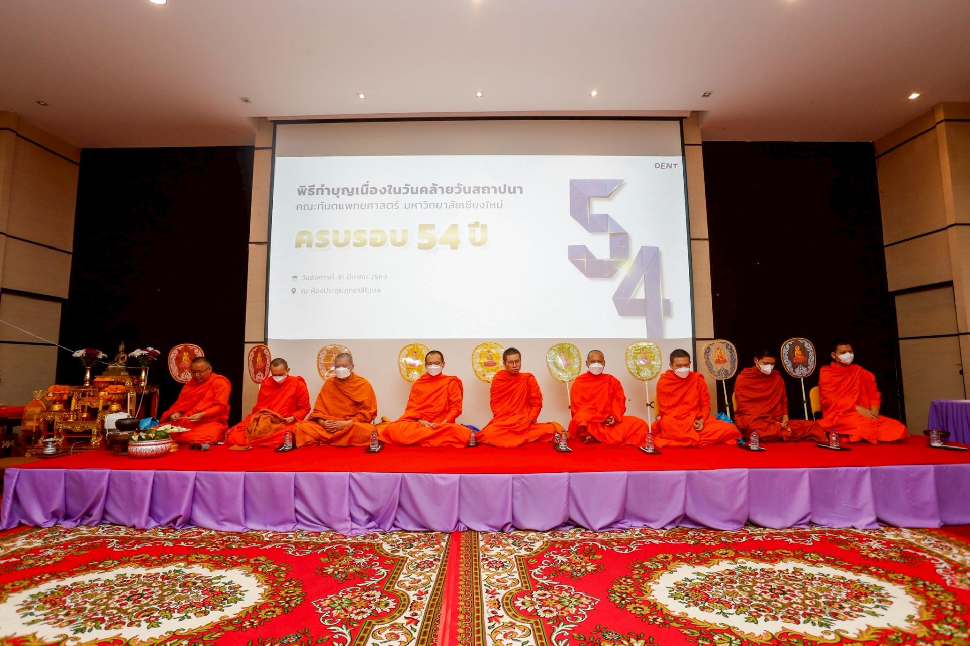วันที่ 31 มีนาคม 2569 คณะทันตแพทยศาสตร์ มหาวิทยาลัยเชียงใหม่ จัดงานพิธีทำบุญเนื่องในโอกาสวันคล้ายวันสถาปนาคณะฯ ครบรอบ 54 ปี เพื่อความเป็นสิริมงคลแก่หน่วยงาน ตลอดจนคณาจารย์ บุคลากร และนักศึกษา โดยภายในพิธีได้รับเกียรติจากอดีตผู้บริหาร คณาจารย์อาวุโส และแขกผู้มีเกียรติเข้าร่วมพิธีอย่างพร้อมเพรียง