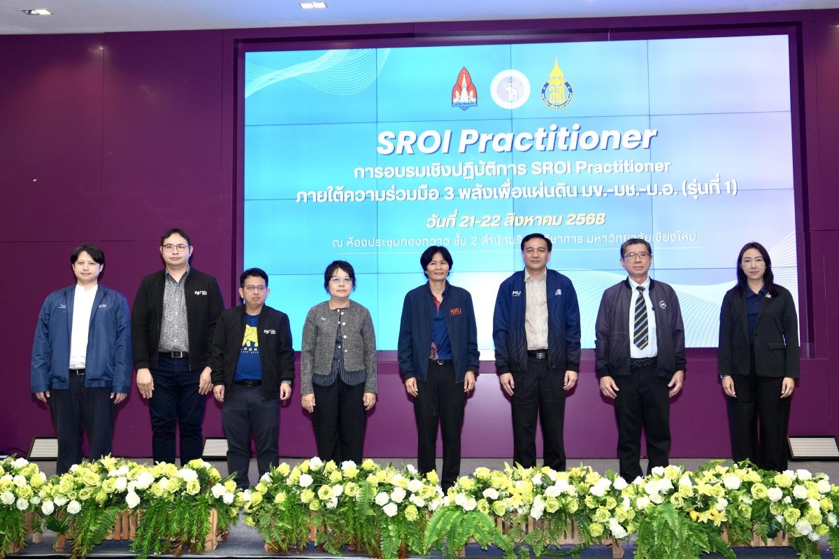 กองแผนงาน สำนักงานมหาวิทยาลัยเชียงใหม่ ร่วมกับ คณะสาธารณสุขศาสตร์ มหาวิทยาลัยเชียงใหม่ จัดกิจกรรม CMU SROI Practitioner ภายใต้ความร่วมมือ 3 พลังเพื่อแผ่นดิน มข.-มช.-ม.อ. (รุ่นที่ 1) เพื่อจัดโครงการอบรมเชิงปฏิบัติการ SROI Practitioner รุ่นที่ 1 โดยมีเป้าหมายเพื่อสนับสนุนการสร้างองค์ความรู้ ให้มีความรู้ความเข้าใจในหลักการประเมินผลตอบแทนทางสังคม (Social Return on Investment: SROI) เพื่อสนับสนุนการสร้างองค์ความรู้และการประเมินผลกระทบทางเศรษฐกิจและสังคมโดยโครงการนี้จัดขึ้นสำหรับบุคลากรจาก 3 มหาวิทยาลัย ได้แก่ มหาวิทยาลัยเชียงใหม่ มหาวิทยาลัยขอนแก่น และมหาวิทยาลัยสงขลานครินทร์ เมื่อวันที่ 21-22 สิงหาคม 2568 ณ ห้องประชุมทองกวาว ชั้น 2 สำนักบริการวิชาการ