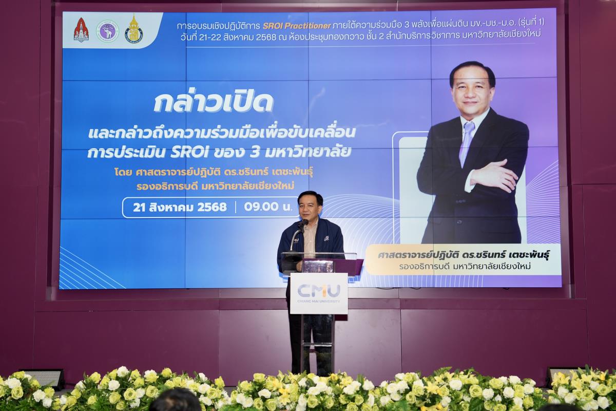 โดยมี ศาสตราจารย์ปฏิบัติ ดร.ชรินทร์ เตชะพันธุ์ รองอธิการบดีมหาวิทยาลัยเชียงใหม่ ได้เป็นประธานเปิดโครงการและกล่าวถึงความร่วมมือเพื่อขับเคลื่อนการประเมิน SROI ของ 3 มหาวิทยาลัย