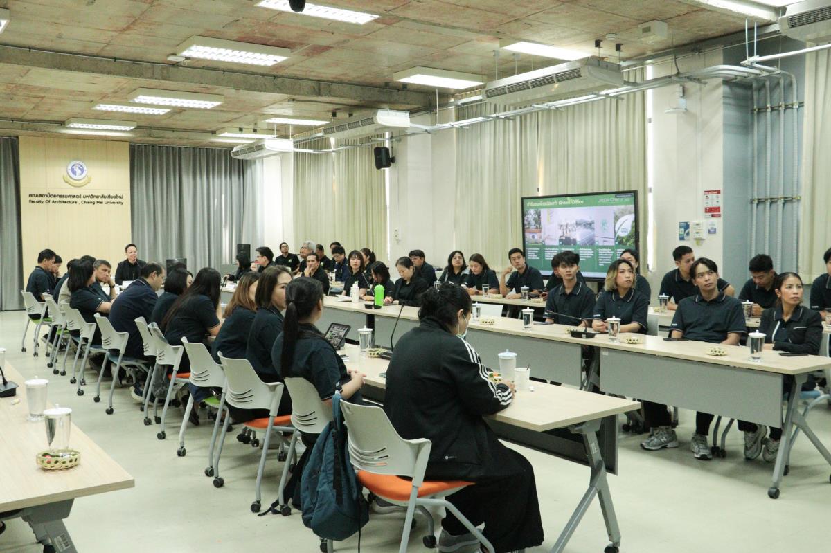 และนางสาวสุมนา ปริญญาปริวัฒน์ เลขานุการคณะสถาปัตยกรรมศาสตร์ ประธานคณะทำงาน หมวดที่ 6 พร้อมด้วยเจ้าหน้าที่ทีมสนับสนุนโครงการสำนักงานสีเขียว (ARCH CMU Green Office)