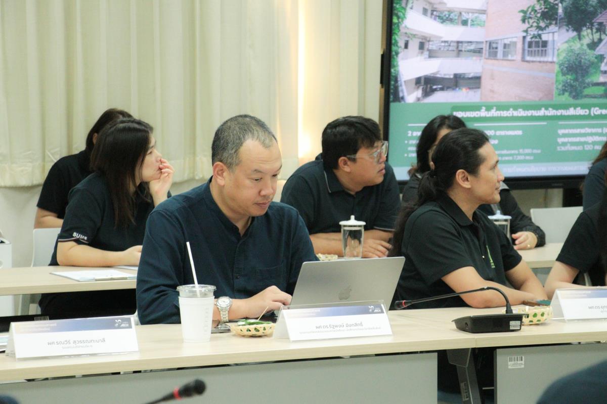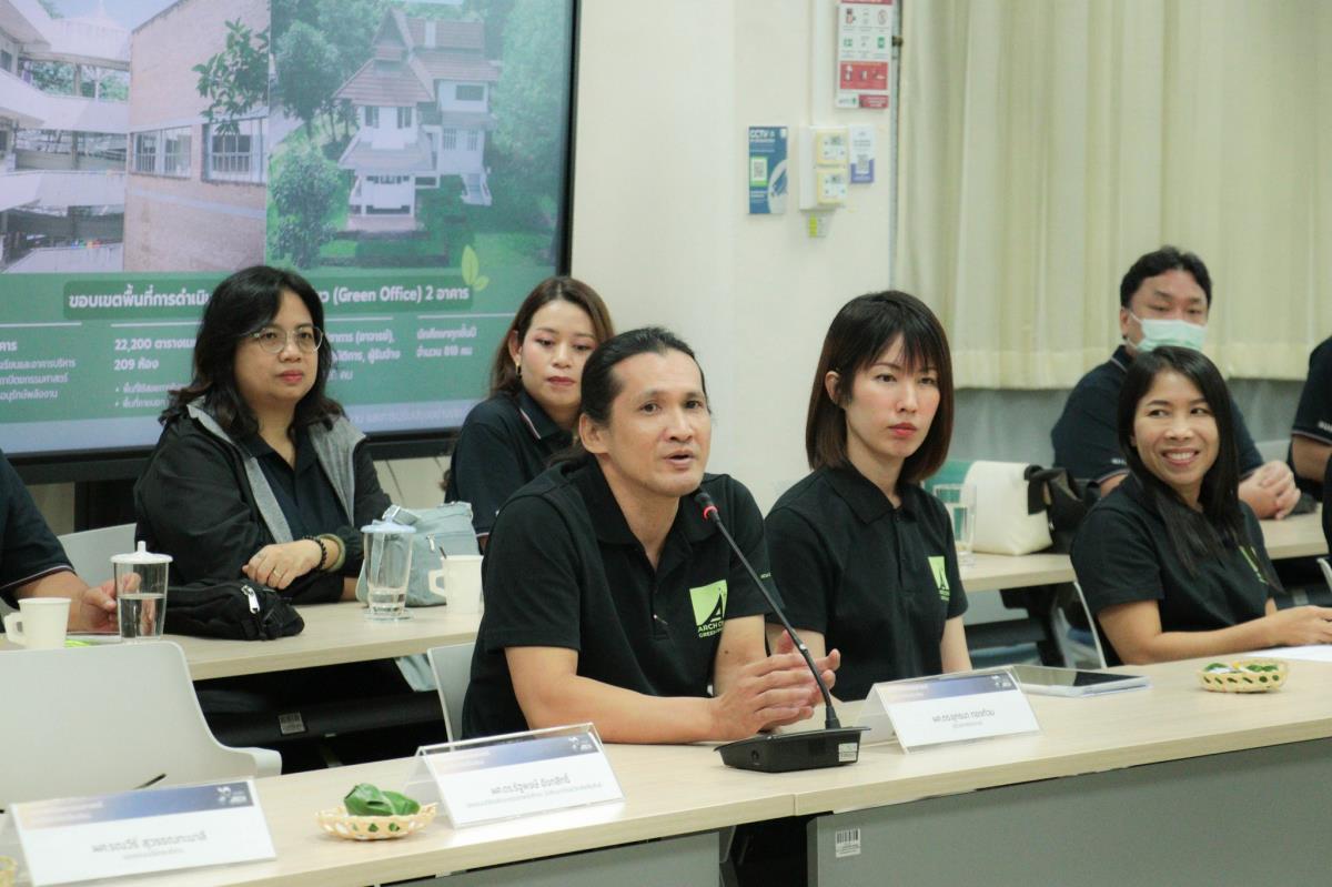 ในการศึกษาดูงานครั้งนี้ คณะสถาปัตยกรรมศาสตร์ได้ถ่ายทอดผลการดำเนินงาน ขั้นตอนและแนวทางการขับเคลื่อนสำนักงานสีเขียว ตามเกณฑ์ของสำนักงานสีเขียว” ของกรมการเปลี่ยนแปลงสภาพภูมิอากาศและสิ่งแวดล้อม กระทรวงทรัพยากรธรรมชาติและสิ่งแวดล้อม ครอบคลุมทั้ง 7 หมวดการดำเนินงาน พร้อมแลกเปลี่ยนประสบการณ์เกี่ยวกับกระบวนการจัดการที่นำไปสู่ความสำเร็จในการผ่านเกณฑ์ประเมินระดับเหรียญทองอย่างเป็นรูปธรรม