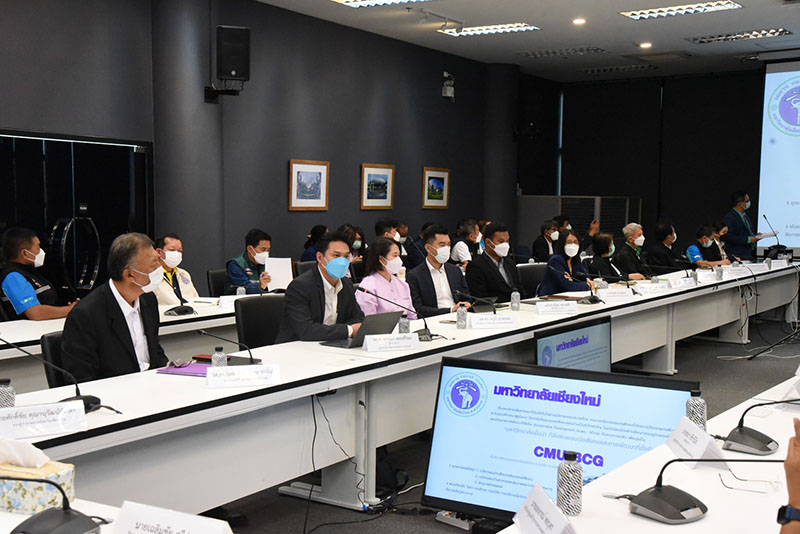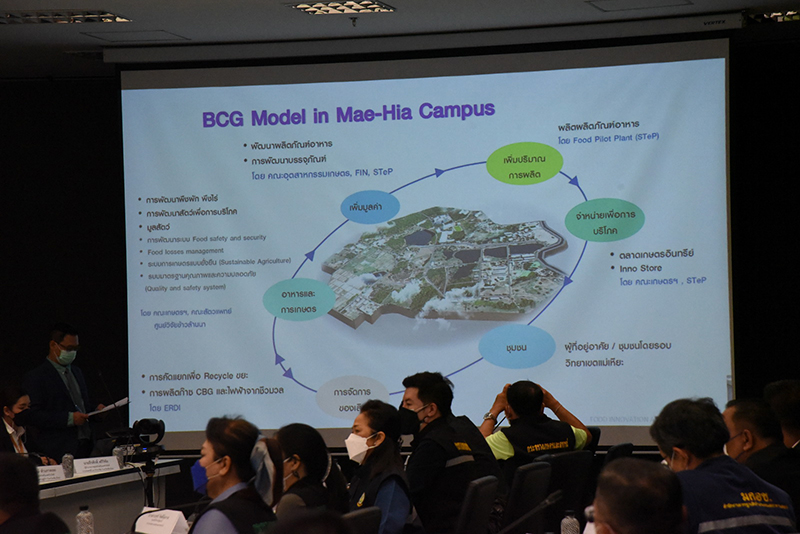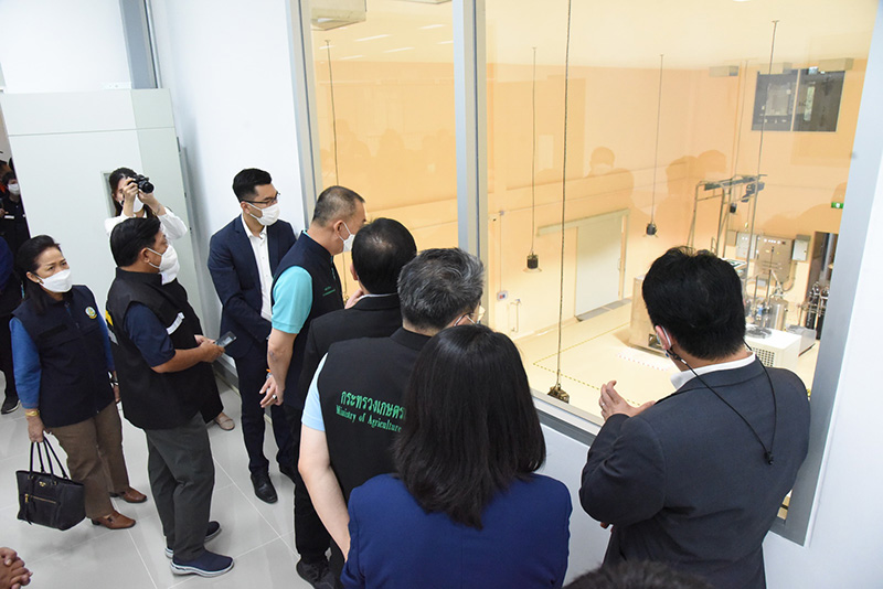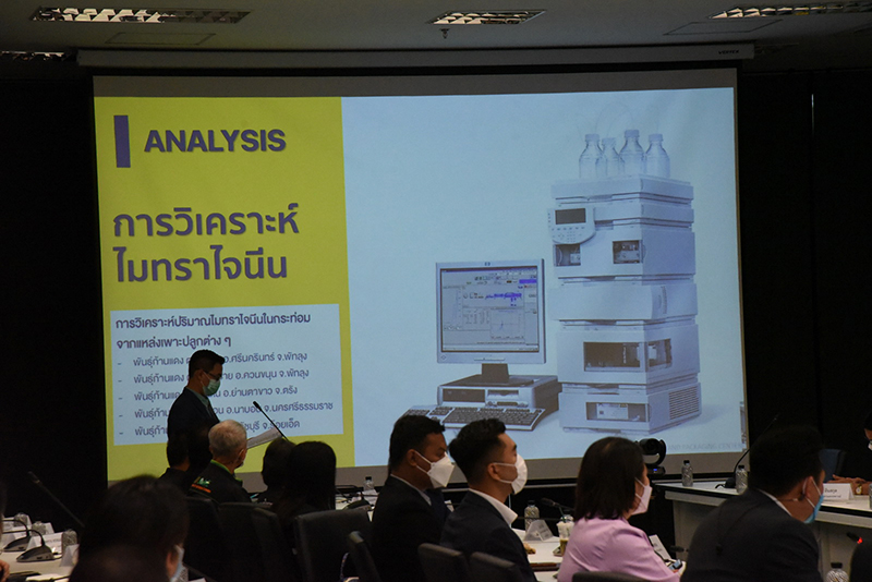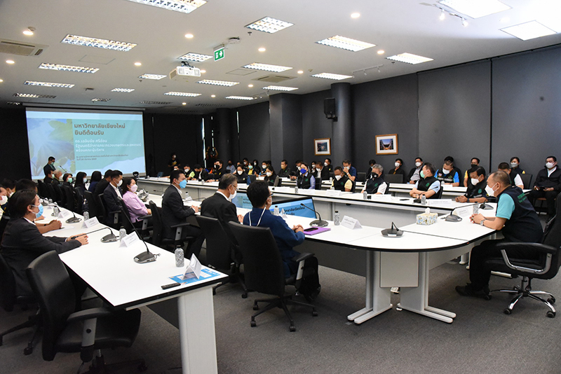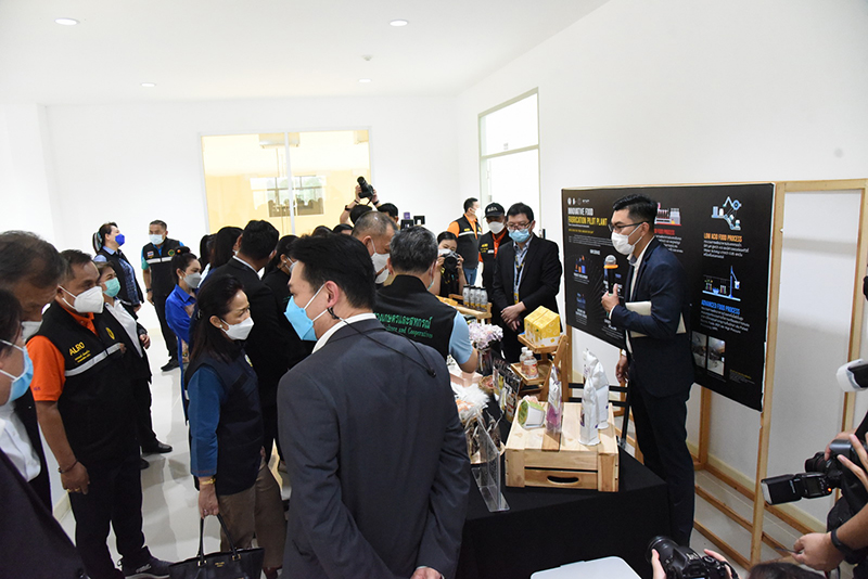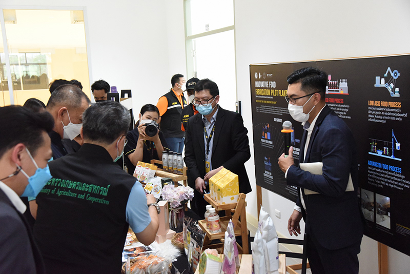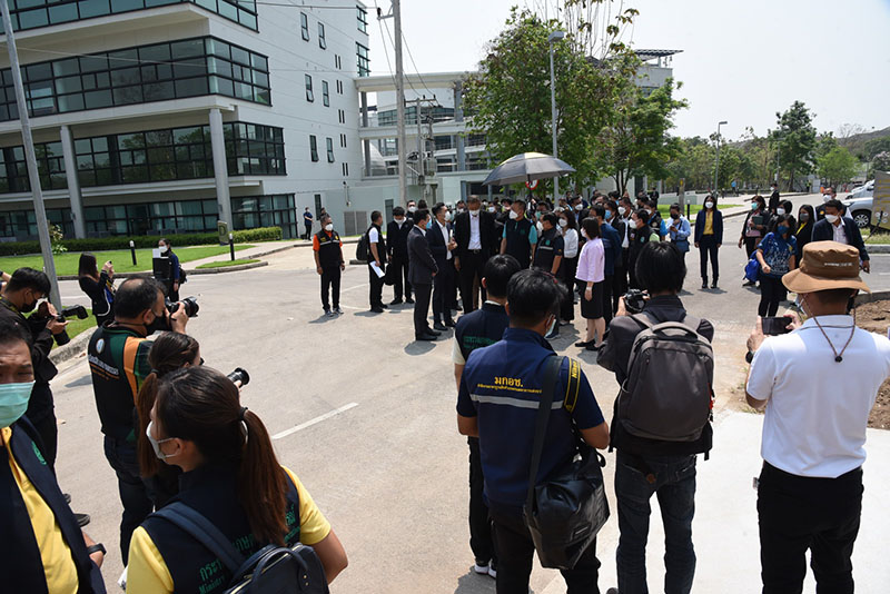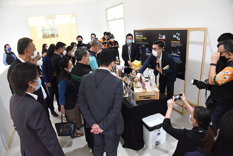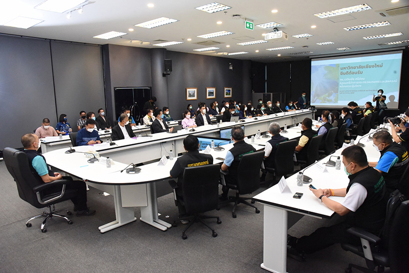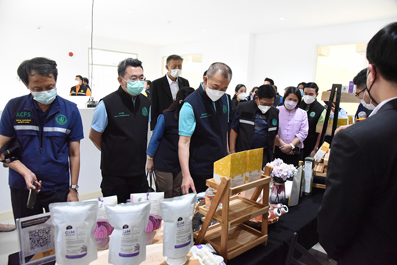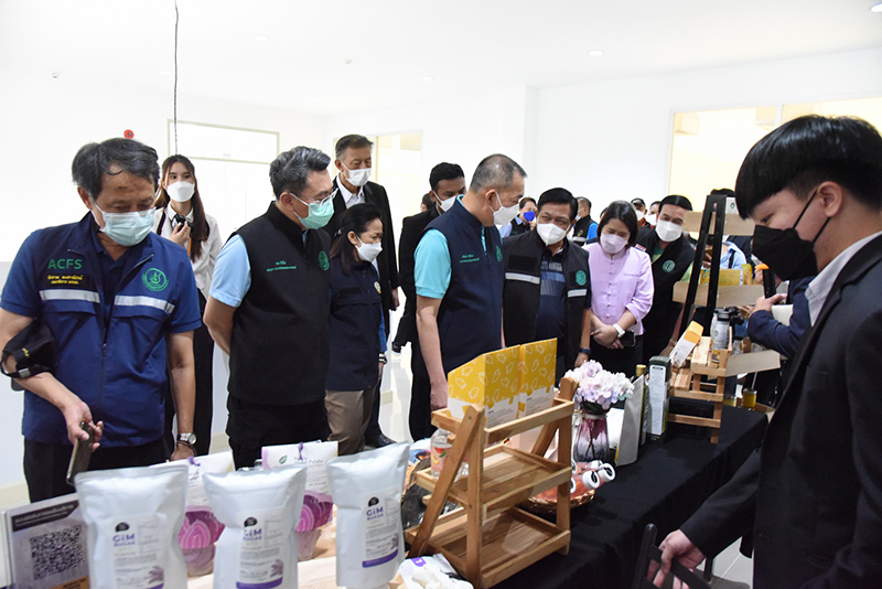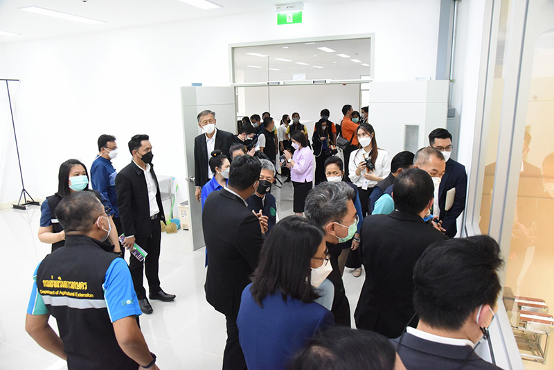รองศาสตราจารย์ ดร.สัมพันธ์ สิงหราชวราพันธ์ รองอธิการบดี รองศาสตราจารย์ ดร.ยุทธนา พิมลศิริผล ผู้อำนวยการศูนย์นวัตกรรมอาหารและบรรจุภัณฑ์ ผู้ช่วยศาสตราจารย์ ดร.ดรุณี นาพรหม คณบดีคณะเกษตรศาสตร์ พร้อมด้วยนักวิจัย คณาจารย์ และเจ้าหน้าที่ของมหาวิทยาลัยเชียงใหม่ ให้การต้อนรับ ดร.เฉลิมชัย ศรีอ่อน รัฐมนตรีว่าการกระทรวงเกษตรและสหกรณ์ และคณะ ในโอกาสที่มารับฟังการบรรยายสรุปเกี่ยวกับการวิจัยและพัฒนาพืชกระท่อมสู่ผลิตภัณฑ์มูลค่าสูง เป็นประธานเปิดอาคารนวัตกรรมสารสกัดมูลค่าสูง iExtract และเยี่ยมชมโรงงานต้นแบบสารสกัดพืชกระท่อมคุณภาพสูง ณ อุทยานวิทยาศาสตร์และเทคโนโลยี และศูนย์นวัตกรรมอาหารและบรรจุภัณฑ์ มหาวิทยาลัยเชียงใหม่ วันอาทิตย์ที่ 20 มีนาคม พ.ศ. 2565