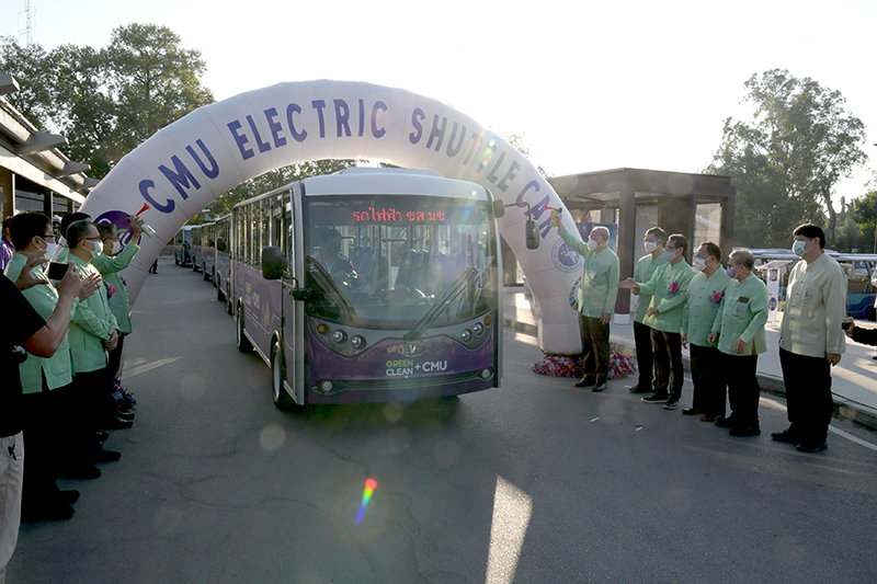 เมื่อวันพุธที่ 6 มกราคม พ.ศ.2564 ณ ศูนย์กลางขนส่งมวลชนมหาวิทยาลัยเชียงใหม่ ศาสตราจารย์คลินิก นายแพทย์นิเวศน์ นันทจิต อธิการบดีมหาวิทยาลัยเชียงใหม่ เป็นประธานในพิธีเปิดตัวรถไฟฟ้าขนส่งมวลชนมหาวิทยาลัยเชียงใหม่ รุ่นใหม่ พร้อมพาคณะผู้บริหาร และสื่อมวลชนนั่งรถไฟฟ้าเยี่ยมชมรอบมหาวิทยาลัย สำหรับรถรุ่นไฟฟ้ารุ่นใหม่นั้นได้ใช้ พลังงานไฟฟ้าแบบแบตเตอรี่เป็นแบบลิเทียมไอออนฟอสเฟต สามารถใช้งานได้ตลอดทั้งวัน ต่อการชาร์จ 1 ครั้ง ให้บริการครอบคลุมทุกพื้นที่ของมหาวิทยาลัย ในช่วงเวลา 07.00 น.- 22.00 น. ตลอดทั้ง 7 วันต่อสัปดาห์ ซึ่งในปีที่ผ่านมามีผู้ใช้งานสะสมกว่า 5,700,000 คน รวมระยะทางกว่า 5.8 ล้านกิโลเมตร มีส่วนช่วยลดบริมาณการปล่อยก๊าซเรือนกระจกได้ 1,650 ตันคาร์บอนไดออกไซด์ สำหรับในปีงบประมาณ 2563 ศูนย์บริหารจัดการเมืองอัจฉริยะมหาวิทยาลัยเชียงใหม่ ได้รับการจัดสรรงบประมาณ เพื่อจัดหารถไฟฟ้ารุ่นใหม่จำนวน 40 คัน มูลค่ากว่า 50 ล้านบาท รถไฟฟ้ารุ่นใหม่นั้นมีห้องโดยสารแบบปิด โดยมีหน้าต่างที่เปิด - ปิดได้ และภายในมีพัดลมไว้ให้บริการ สามารถรองรับผู้โดยสารได้สูงสุด 16 คน การนับจำนวนผู้โดยสารด้วยวิธี Image Processing ร่วมกับ AI และผู้ใช้บริการสามารถติดตามตำแหน่งรถ เส้นทางเดินรถแต่ละสาย และจำนวนผู้โดยสารในรถแต่ละคันได้จากแอปพลิเคชัน CMU MOBILE แบบ Realtime ด้านหน้ามีป้าย LED บอกสายรถแต่ละคัน มองเห็นได้ง่ายแม้ในเวลากลางคืน มีอุปกรณ์ด้านความปลอดภัยในทุกคัน เช่นกล้องวงจรปิดที่มองเห็นผู้โดยสารทุกที่นั่ง รวมถึงภาพจากด้านหน้าและด้านหลังของรถ มีจอแสดงภาพให้พนักงานขับรถดูได้ตลอดเวลา มีจอภาพสำหรับการแสดงข้อมูลการให้บริการและสื่อประชาสัมพันธ์ นอกจากนี้ยังมีถังดับเพลิงและค้อนทุบกระจกเตรียมไว้ในกรณีที่เกิดเหตุฉุกเฉินด้วย