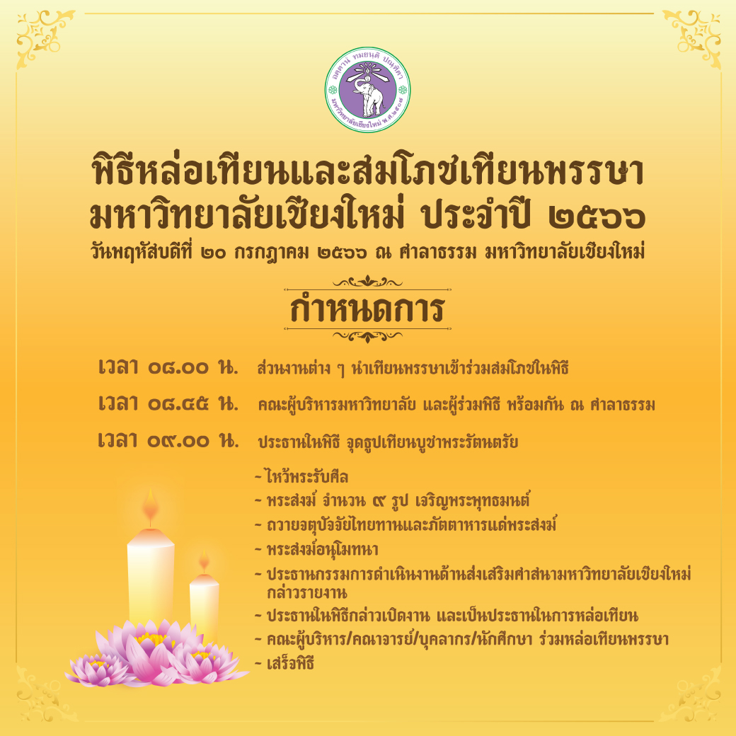 วันพฤหัสบดีที่ 20 กรกฎาคม 2566 ณ ศาลาธรรม มหาวิทยาลัยเชียงใหม่