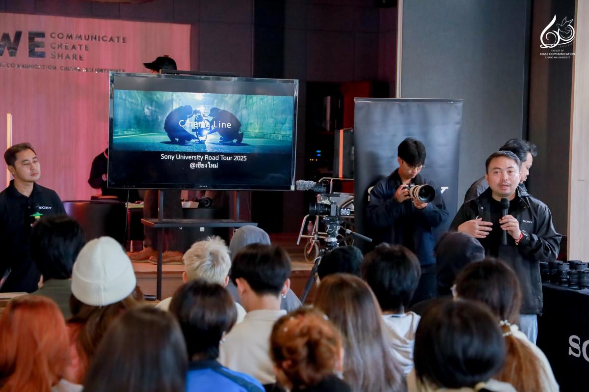 สาขาวิชาภาพยนตร์ดิจิทัล คณะการสื่อสารมวลชน มหาวิทยาลัยเชียงใหม่ ร่วมกับ บริษัท โซนี่ ไทย จำกัด จัดกิจกรรม “Sony Cinema Line University Road Tour 2025 in Chiang Mai University” เพื่อเปิดโลกการเรียนรู้ด้านงานภาพยนตร์ให้นักศึกษาได้สัมผัสประสบการณ์จริงในกองถ่าย พร้อมทดลองใช้กล้อง Sony Cinema Line ที่เป็นมาตรฐานระดับอุตสาหกรรมภาพยนตร์ทั่วโลก ณ ห้อง Learning Space คณะการสื่อสารมวลชน เมื่อวันจันทร์ที่ 1 ธันวาคม 2568 เวลา 09.30 – 16.30 น. ที่ผ่านมา