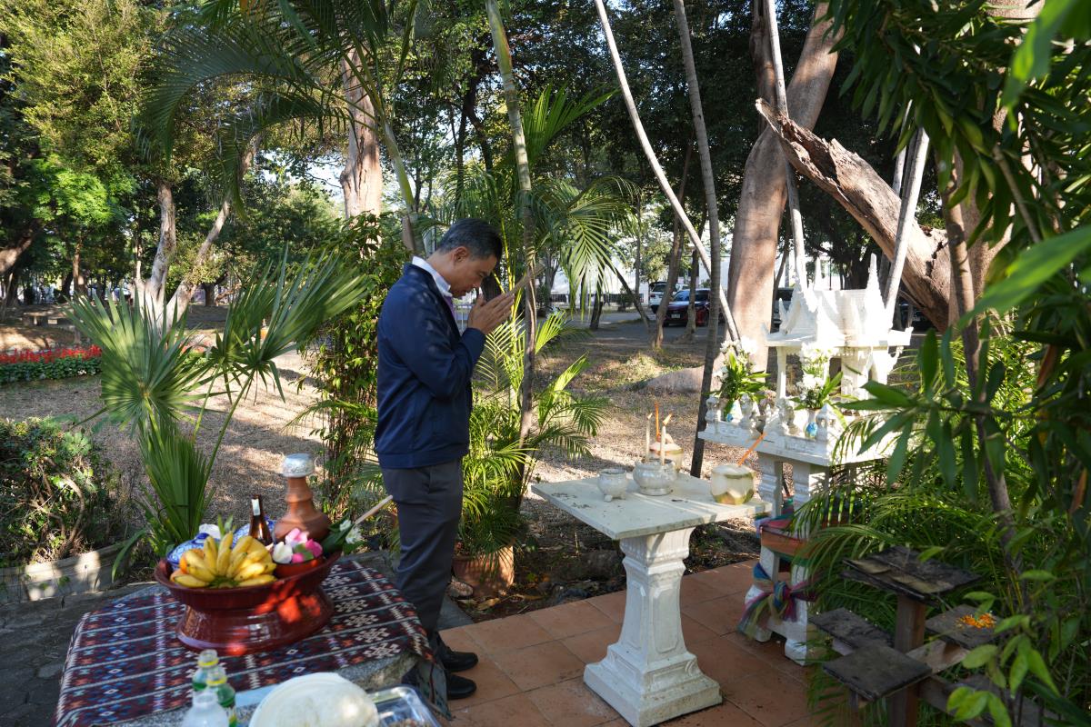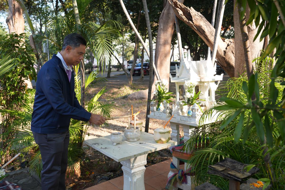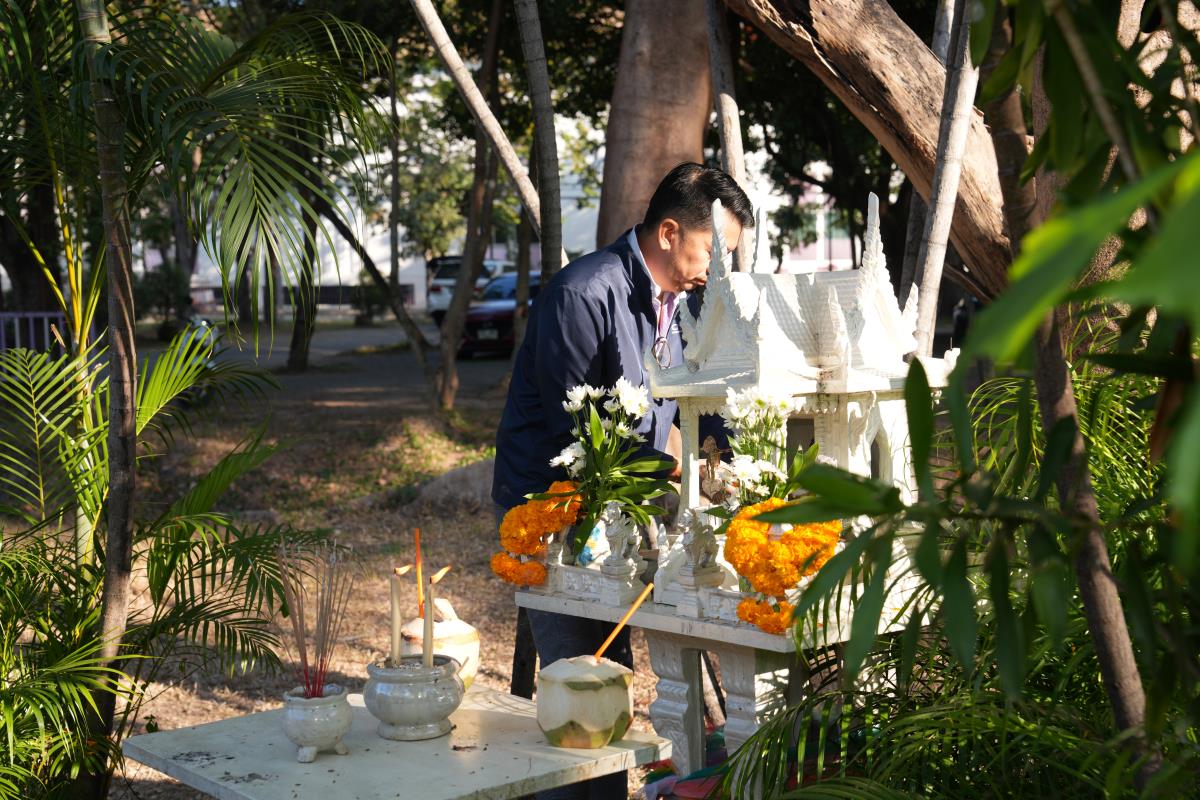 ศาสตราจารย์ ดร. นพ.พงษ์รักษ์ ศรีบัณฑิตมงคล อธิการบดีมหาวิทยาลัยเชียงใหม่ ประธานในพิธีบวงสรวงบอกกล่าวเทพาอารักษ์ ศาลพระภูมิมหาวิทยาลัยเชียงใหม่ และศาลพระภูมิ ประจำหอประชุมมหาวิทยาลัยเชียงใหม่ เนื่องในโอกาสจัดกิจกรรมฉลอง 60 ปี แห่งการสถาปนามหาวิทยาลัยเชียงใหม่ โดยมีคณะผู้บริหาร คณาจารย์ เจ้าหน้าที่ ร่วมพิธีฯ เมื่อวันเสาร์ที่ 18 มกราคม พ.ศ.2567 ณ ศาลพระภูมิ มหาวิทยาลัยเชียงใหม่
