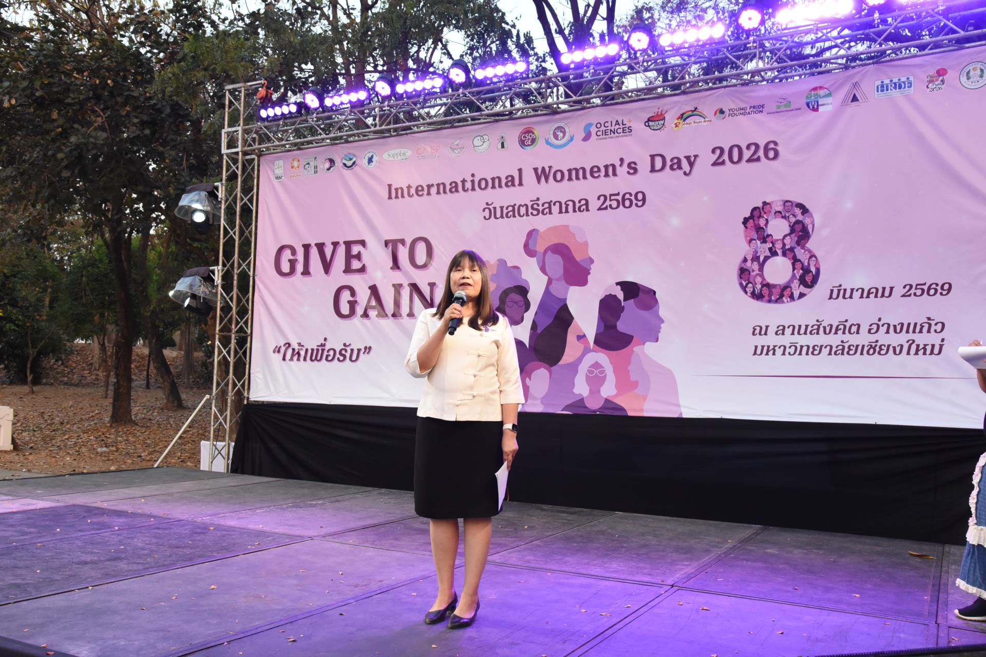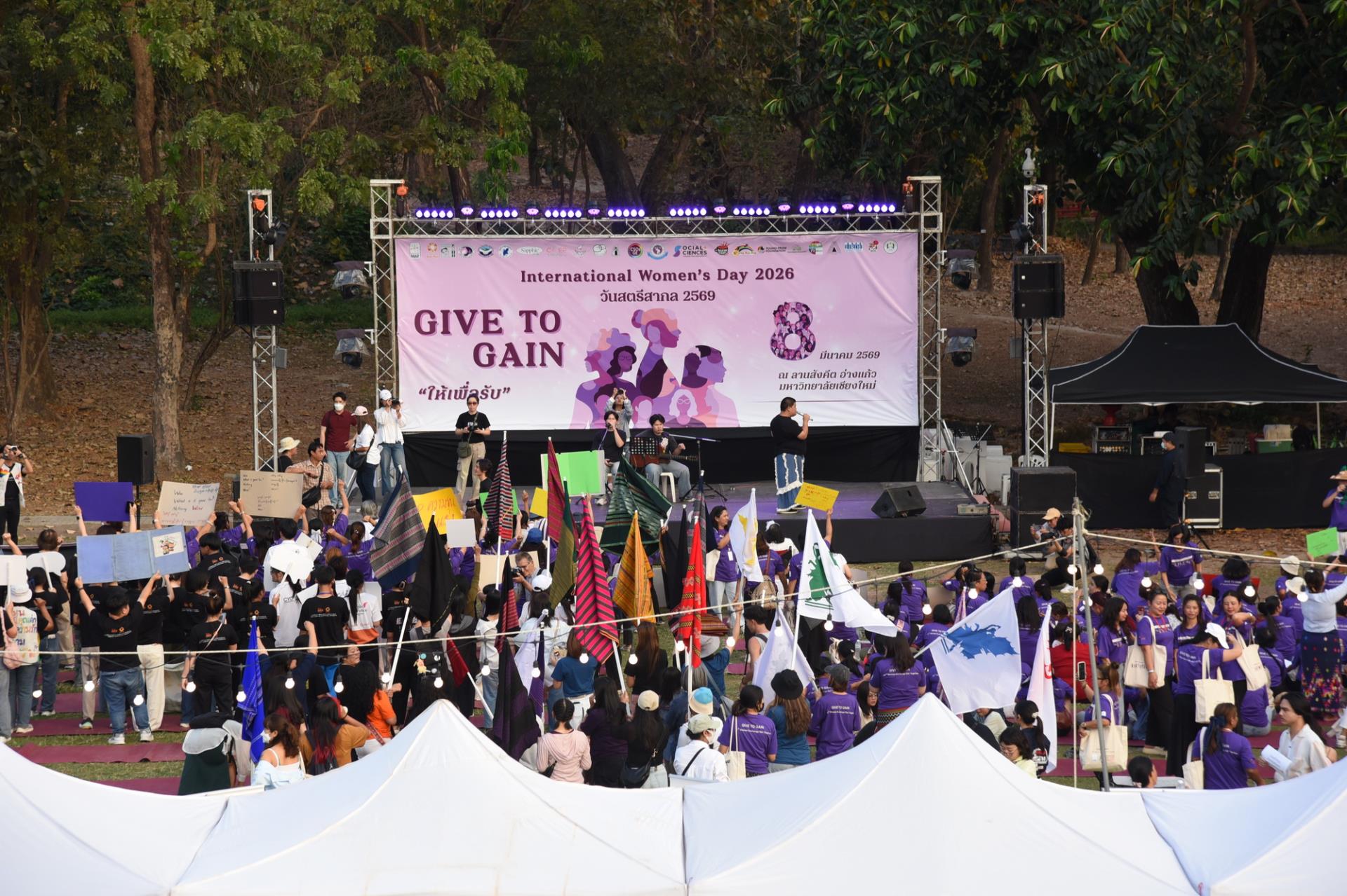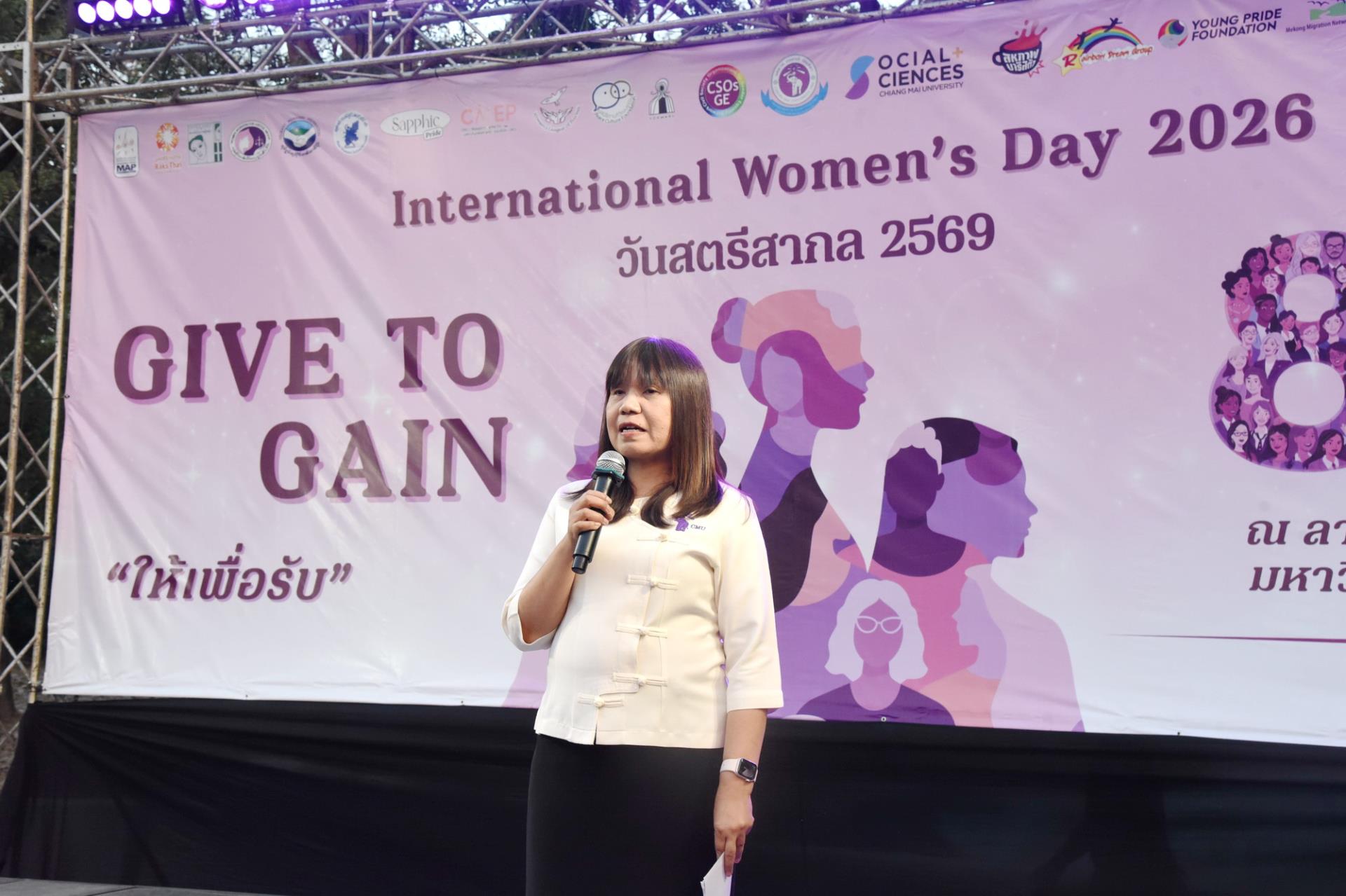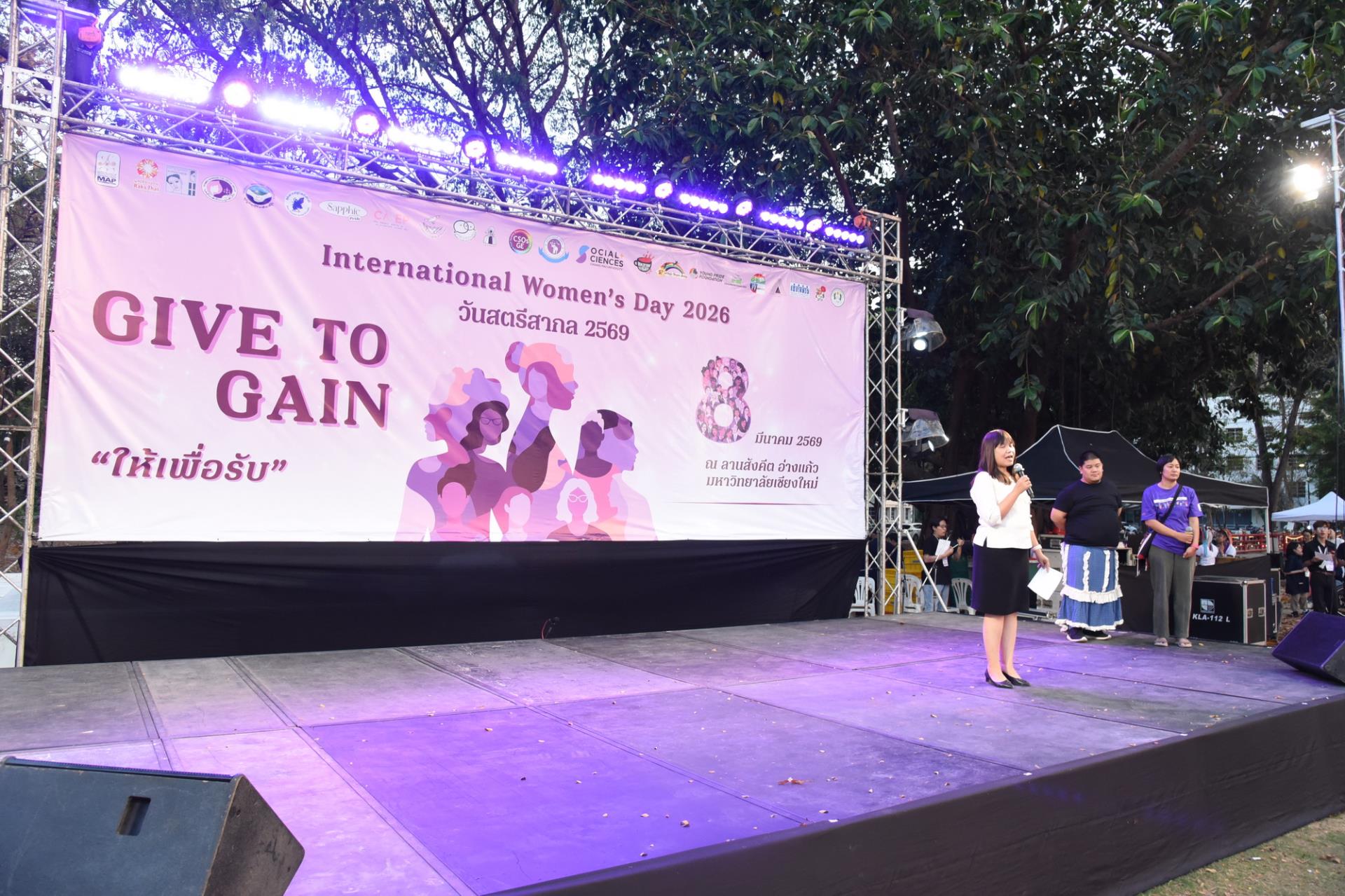 รองศาสตราจารย์ ดร.วินิตา บุณโยดม รองอธิการบดีมหาวิทยาลัยเชียงใหม่ เป็นประธานเปิดโครงการ International Women’s Day 2026 “Give To Gain” วันสตรีสากล ประจำปี 2569 ภายในงานมีกิจกรรมเดินรณรงค์เชิงสร้างสรรค์ การร่วมร้องเพลง “I AM WOMAN” (Singing “I AM WOMAN”) นิทรรศการออกบูธจากเครือข่าย (Visiting exhibitions and network booths) การอ่านแถลงการณ์วันสตรีสากล 3 ภาษา (ภาษาไทย โดยแกนนำเยาวชนรักษ์ไทย / ภาษาอังกฤษ โดยนักศึกษานานาชาติ / ภาษาพม่า โดยองค์กร MAP) การเสวนา หัวข้อ “ผู้หญิงกับการให้ที่มองไม่เห็น” ความรุนแรงทางเพศ ภัยคุกคามบนท้องถนน เสียงเล็ก ๆ ที่มีพลัง การสะท้อนเรื่องราวของผู้หญิง การให้และความเท่าเทียม ร่วมกับมูลนิธิศานติวัฒนธรรม มูลนิธิรักษ์ไทย มูลนิธิ MAP สหพันธ์คนงานข้ามชาติ SAPPHIC PRIDE WJG การแสดงโฟล์คซองและศิลปวัฒนธรรมจากชมรมพื้นบ้านล้านนา ตลอดจนการจำหน่ายอาหาร ณ ลานสังคีต มหาวิทยาลัยเชียงใหม่ วันอาทิตย์ที่ 8 มีนาคม พ.ศ. 2569
