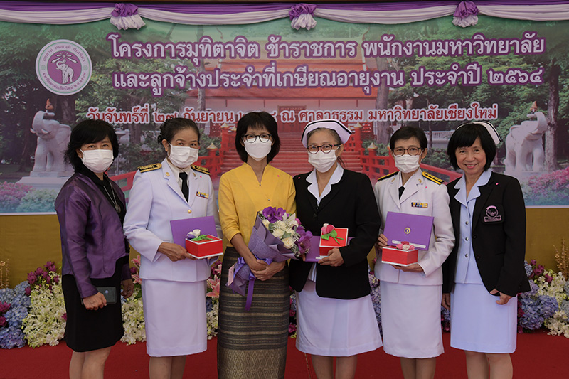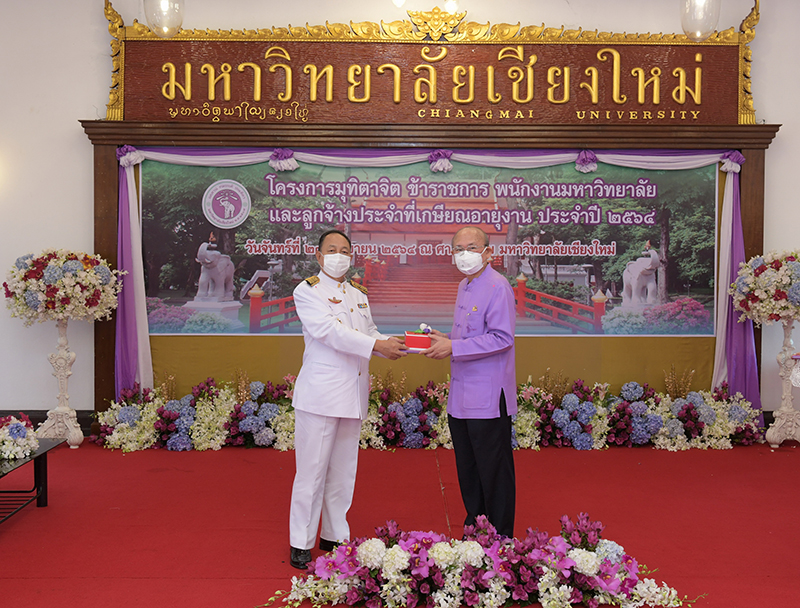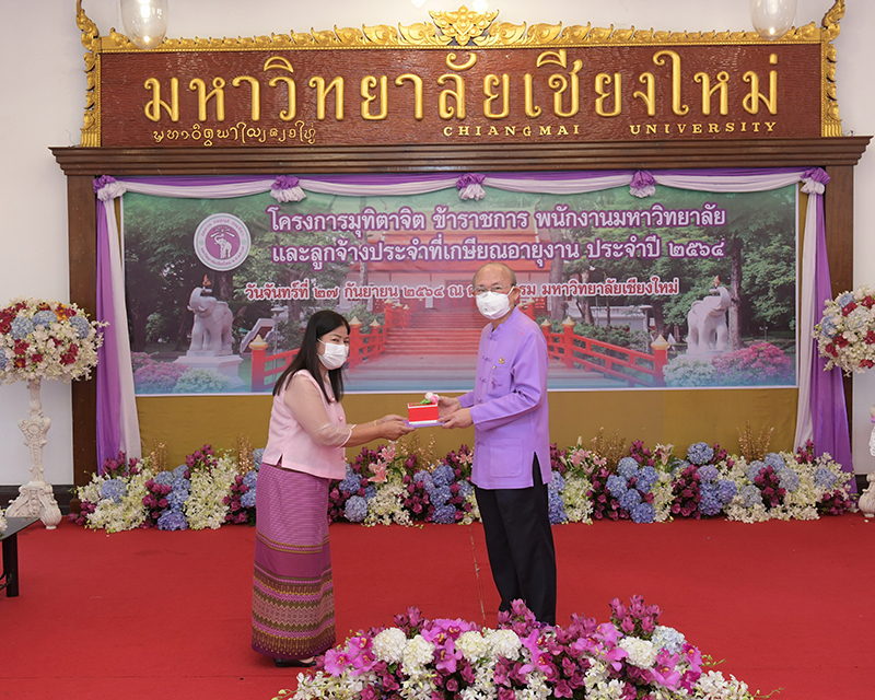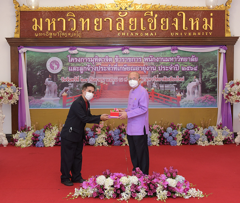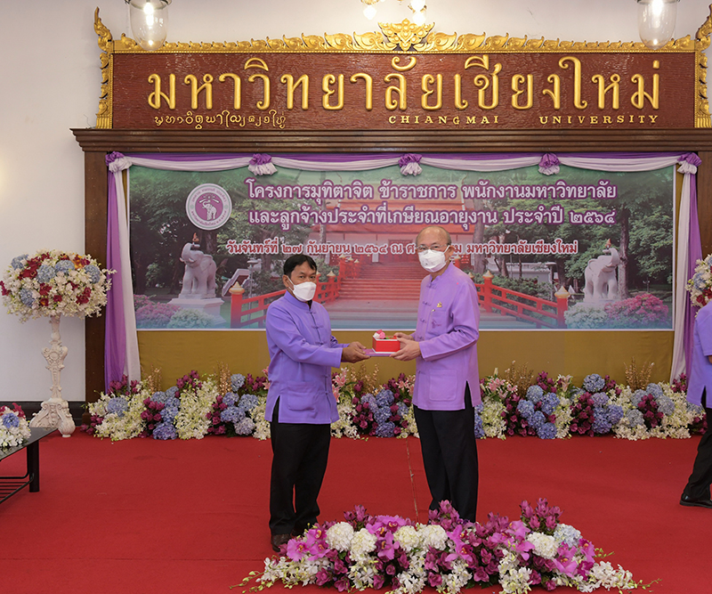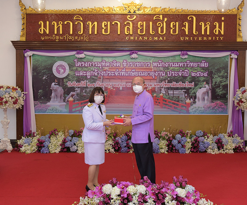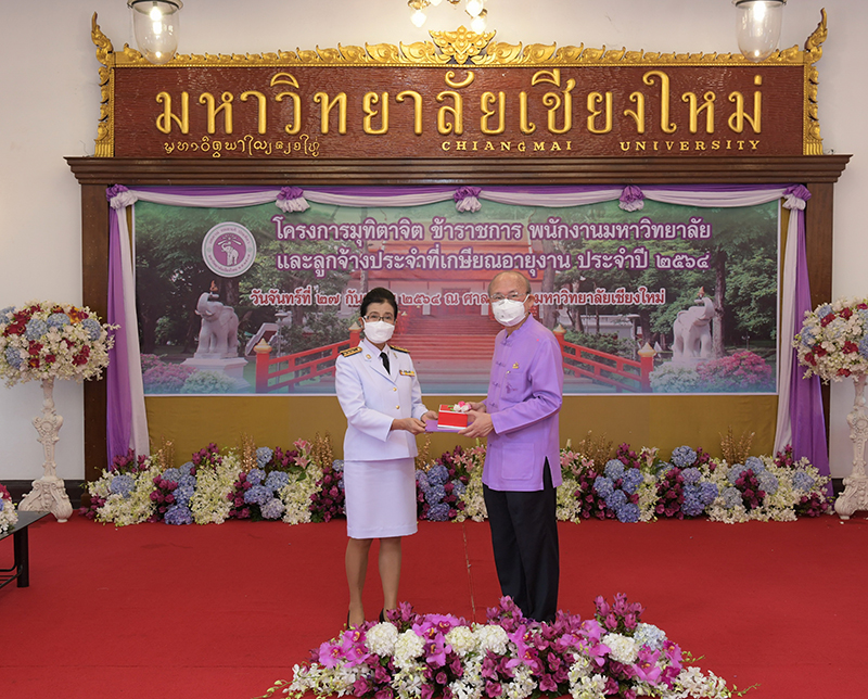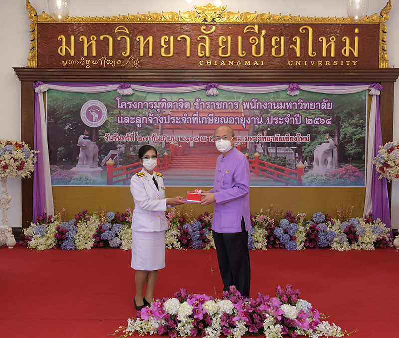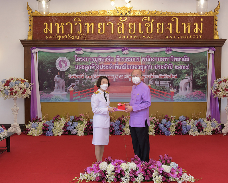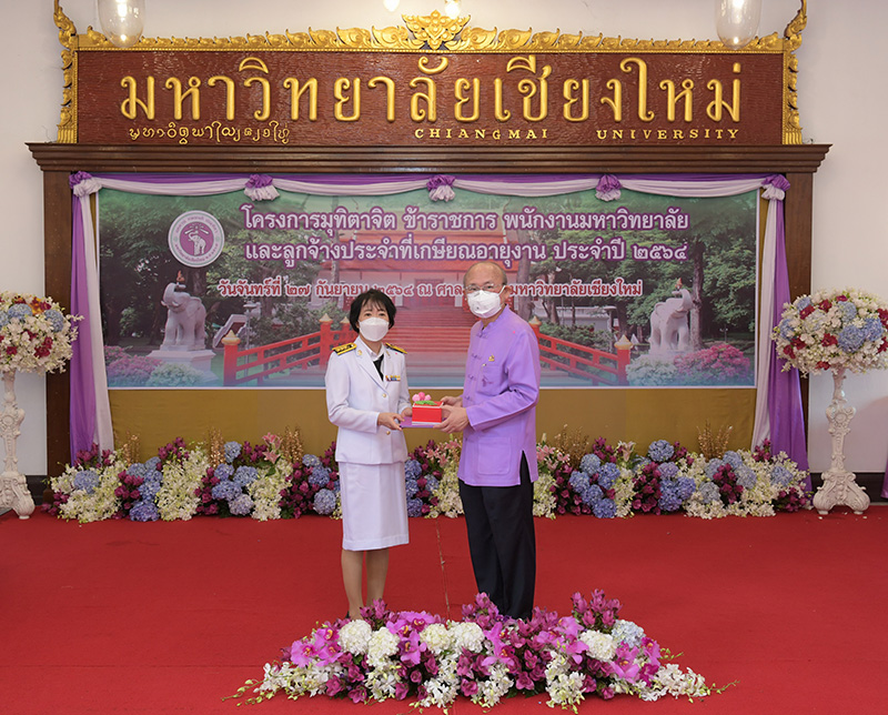 มหาวิทยาลัยเชียงใหม่ จัดงานมุทิตาจิตแก่ข้าราชการ พนักงานมหาวิทยาลัยและลูกจ้างประจำที่เกษียณอายุงานประจำปี 2564 ของมหาวิทยาลัยเชียงใหม่ จำนวน 266 คน โดยมีศาสตราจารย์คลินิก นายแพทย์นิเวศน์ นันทจิต อธิการบดีมหาวิทยาลัยเชียงใหม่ เป็นประธานในพิธีฯ เพื่อเชิดชูเกียรติ และระลึกถึงคุณงามความดี ที่ได้อุทิศตนปฏิบัติหน้าที่ด้วยแรงกาย แรงใจ มีความมานะ อุตสาหะ พากเพียรพยายาม มุ่งมั่นสรรค์สร้างและพัฒนามหาวิทยาลัยเชียงใหม่ตลอดมา ณ ศาลาธรรม มหาวิทยาลัยเชียงใหม่ เมื่อวันจันทร์ที่ 27 กันยายน พ.ศ. 2564