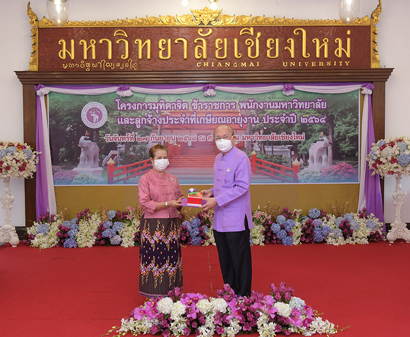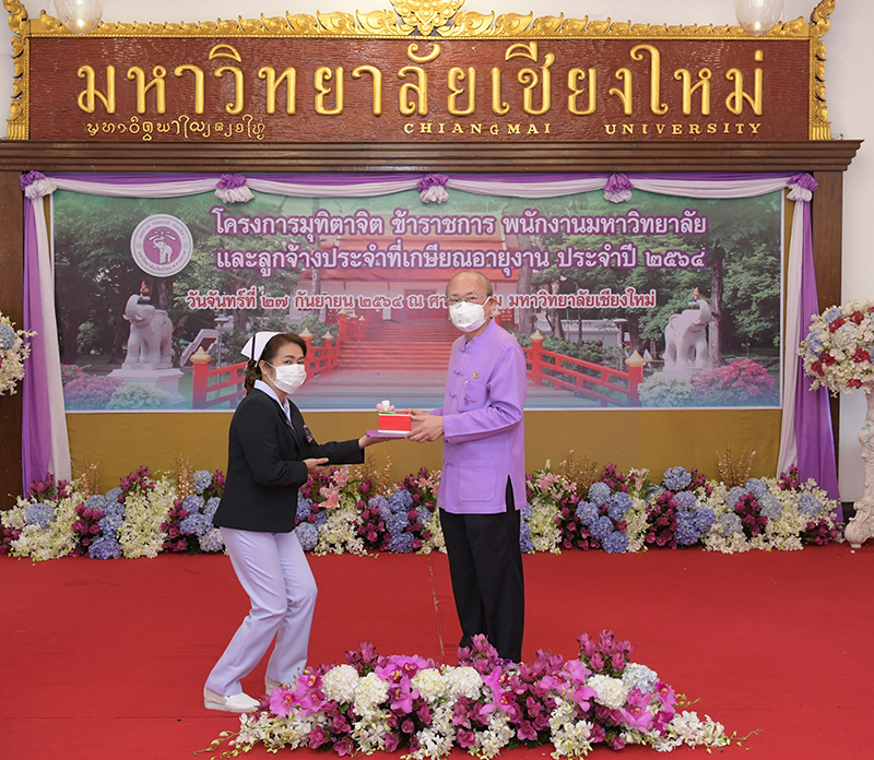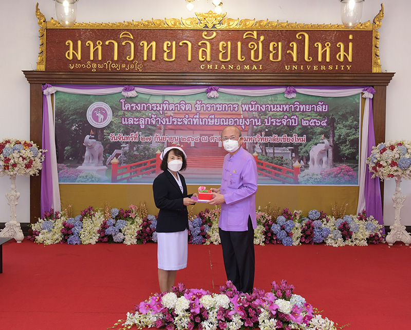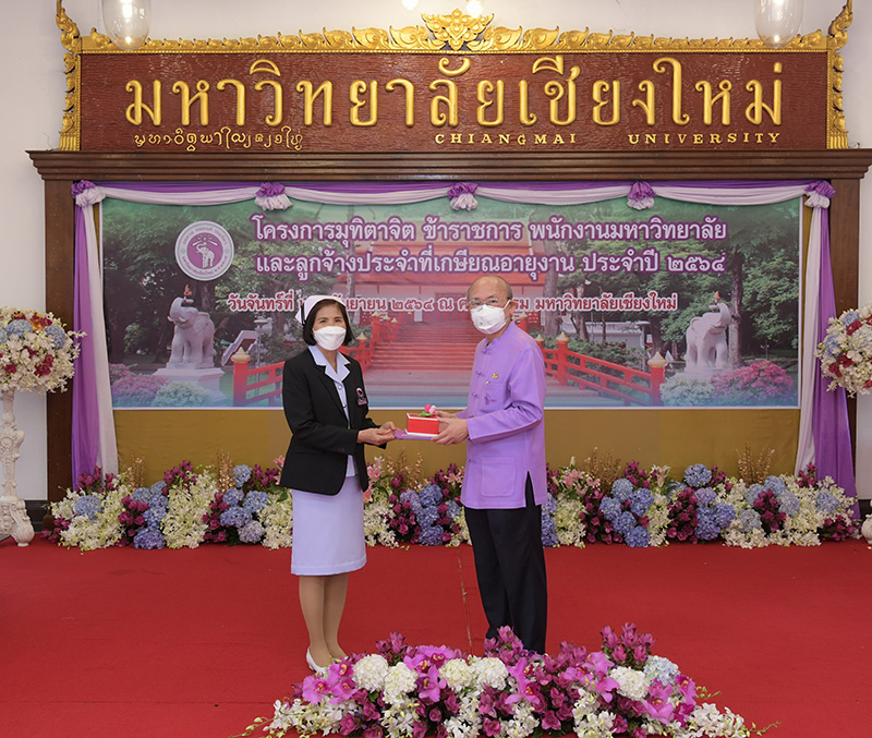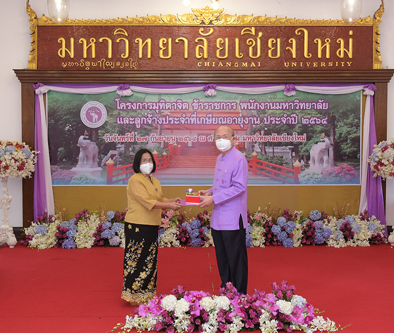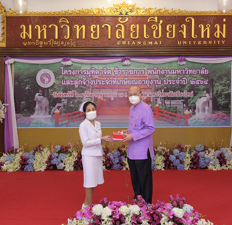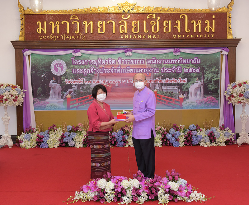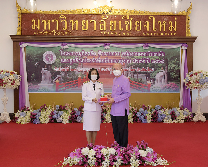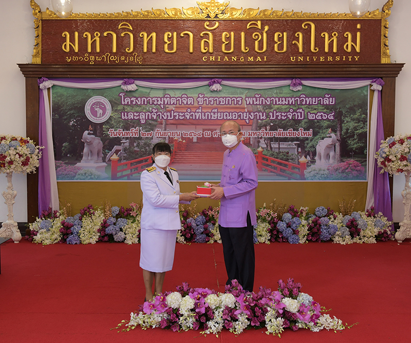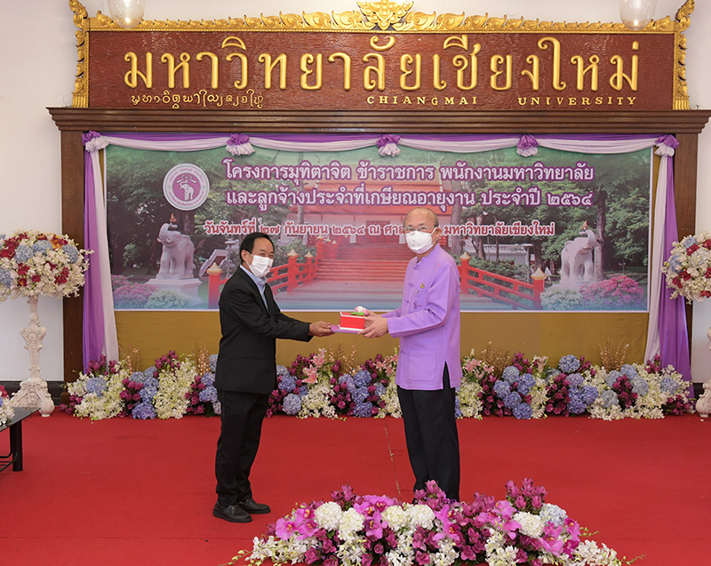 มหาวิทยาลัยเชียงใหม่ จัดงานมุทิตาจิตแก่ข้าราชการ พนักงานมหาวิทยาลัยและลูกจ้างประจำที่เกษียณอายุงานประจำปี 2564 ของมหาวิทยาลัยเชียงใหม่ จำนวน 266 คน โดยมีศาสตราจารย์คลินิก นายแพทย์นิเวศน์ นันทจิต อธิการบดีมหาวิทยาลัยเชียงใหม่ เป็นประธานในพิธีฯ เพื่อเชิดชูเกียรติ และระลึกถึงคุณงามความดี ที่ได้อุทิศตนปฏิบัติหน้าที่ด้วยแรงกาย แรงใจ มีความมานะ อุตสาหะ พากเพียรพยายาม มุ่งมั่นสรรค์สร้างและพัฒนามหาวิทยาลัยเชียงใหม่ตลอดมา ณ ศาลาธรรม มหาวิทยาลัยเชียงใหม่ เมื่อวันจันทร์ที่ 27 กันยายน พ.ศ. 2564