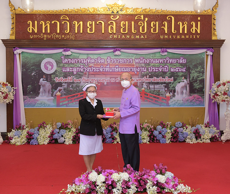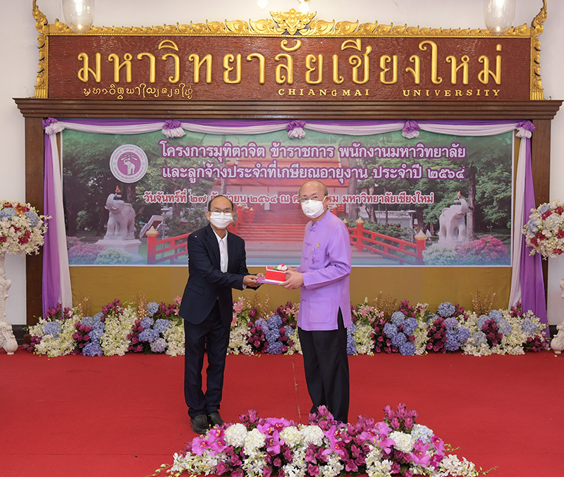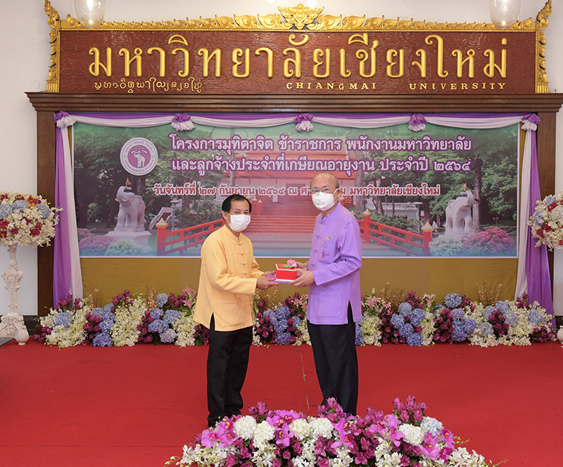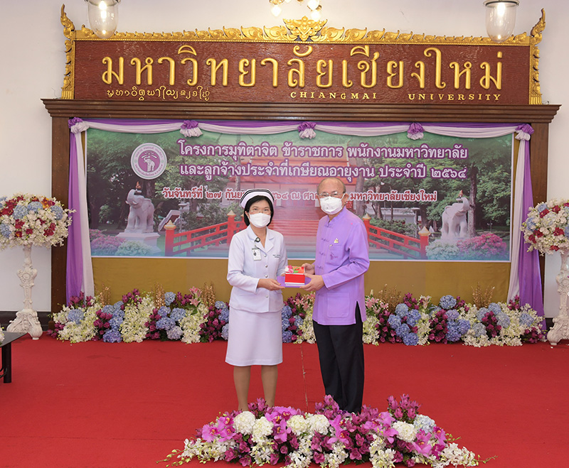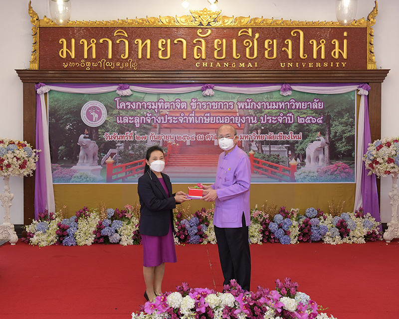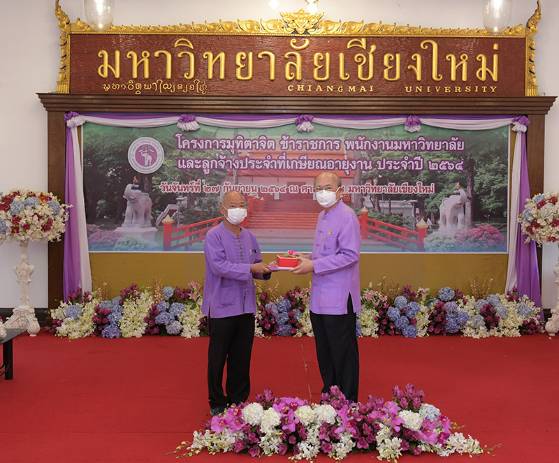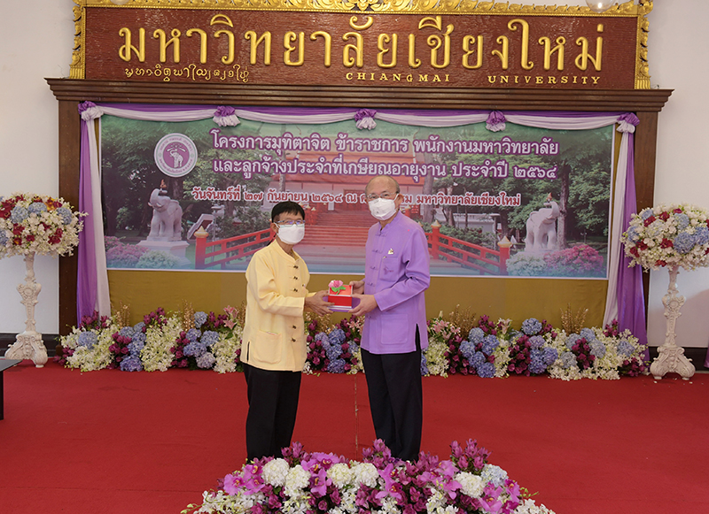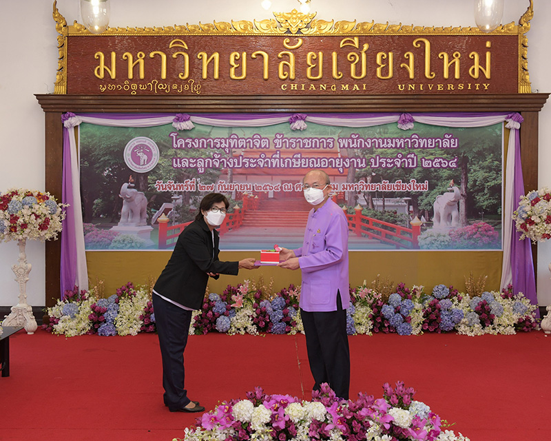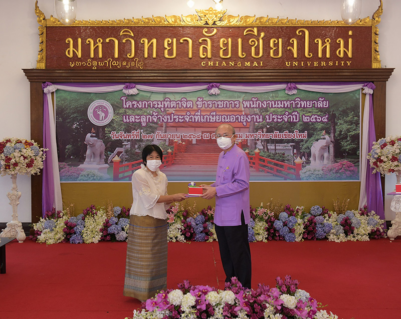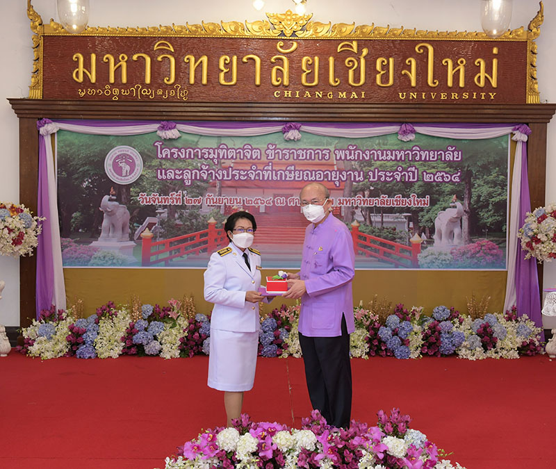 มหาวิทยาลัยเชียงใหม่ จัดงานมุทิตาจิตแก่ข้าราชการ พนักงานมหาวิทยาลัยและลูกจ้างประจำที่เกษียณอายุงานประจำปี 2564 ของมหาวิทยาลัยเชียงใหม่ จำนวน 266 คน โดยมีศาสตราจารย์คลินิก นายแพทย์นิเวศน์ นันทจิต อธิการบดีมหาวิทยาลัยเชียงใหม่ เป็นประธานในพิธีฯ เพื่อเชิดชูเกียรติ และระลึกถึงคุณงามความดี ที่ได้อุทิศตนปฏิบัติหน้าที่ด้วยแรงกาย แรงใจ มีความมานะ อุตสาหะ พากเพียรพยายาม มุ่งมั่นสรรค์สร้างและพัฒนามหาวิทยาลัยเชียงใหม่ตลอดมา ณ ศาลาธรรม มหาวิทยาลัยเชียงใหม่ เมื่อวันจันทร์ที่ 27 กันยายน พ.ศ. 2564