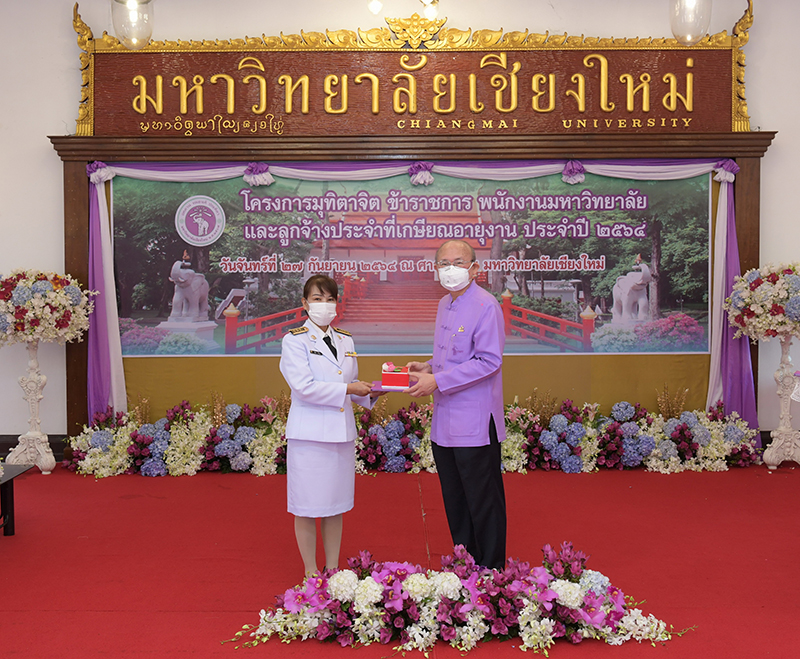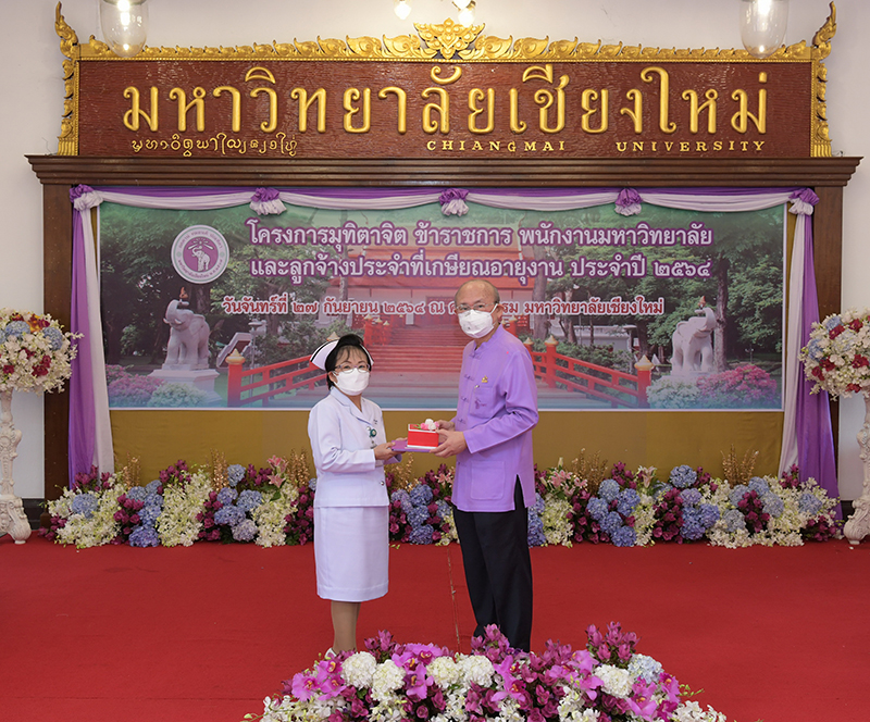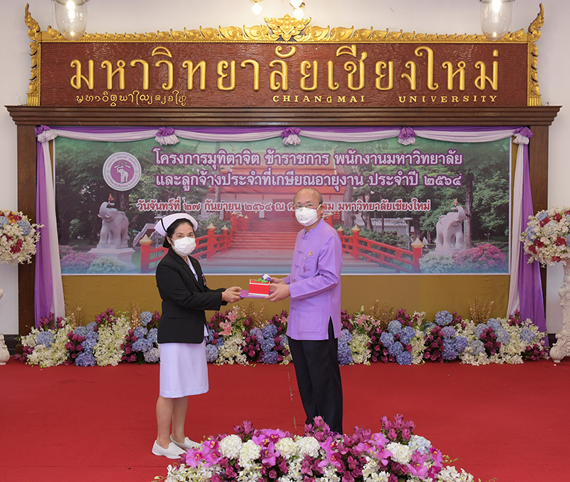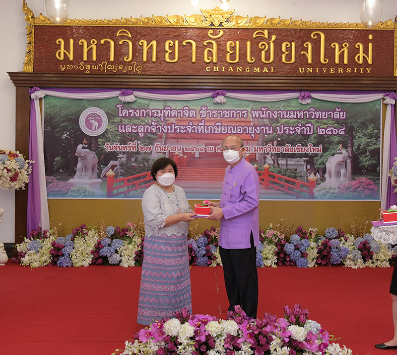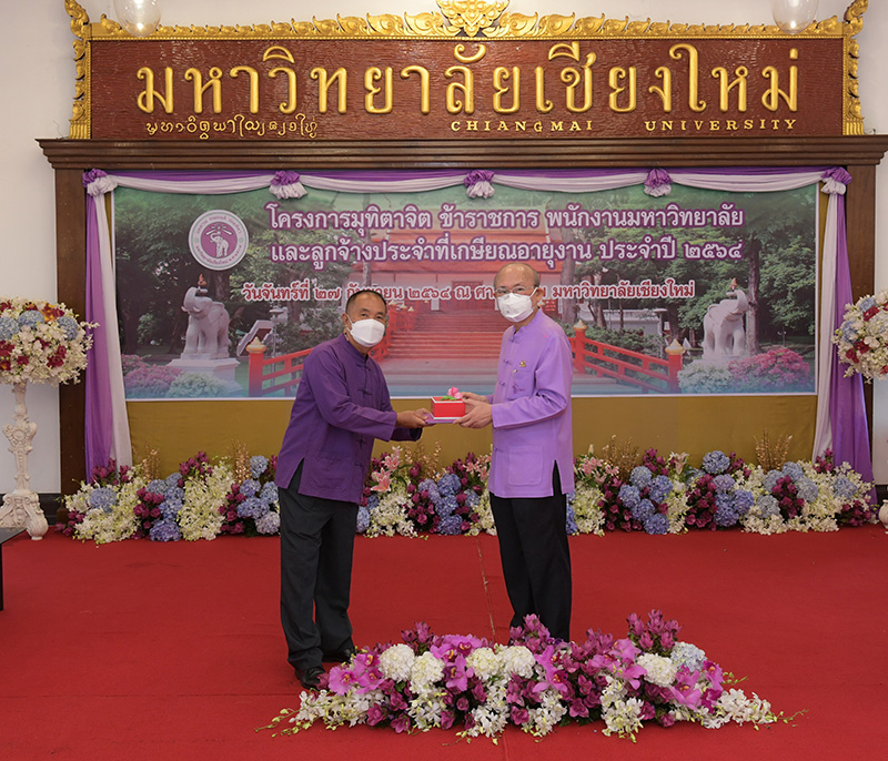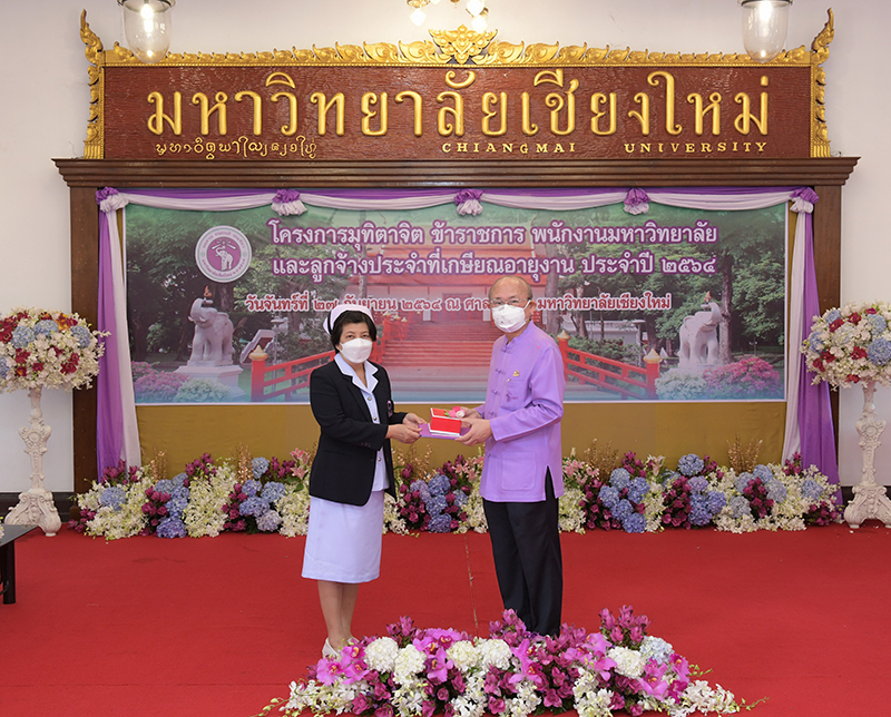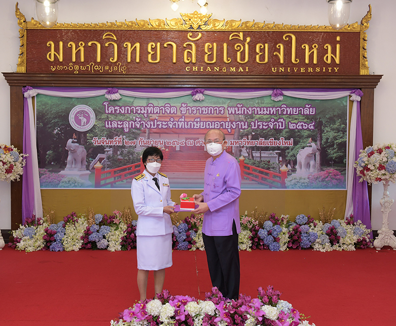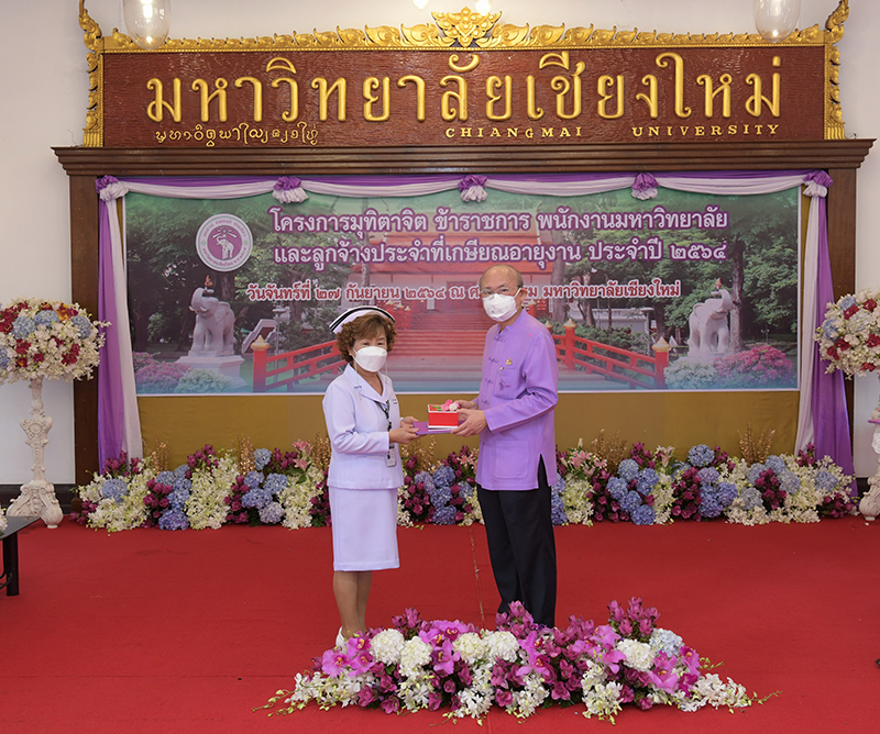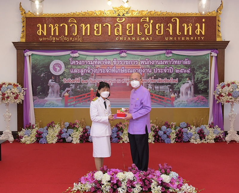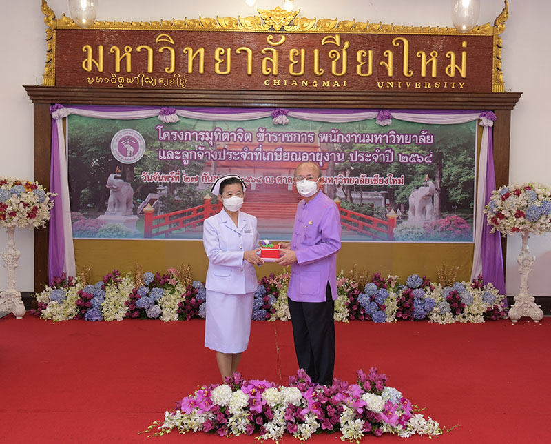 มหาวิทยาลัยเชียงใหม่ จัดงานมุทิตาจิตแก่ข้าราชการ พนักงานมหาวิทยาลัยและลูกจ้างประจำที่เกษียณอายุงานประจำปี 2564 ของมหาวิทยาลัยเชียงใหม่ จำนวน 266 คน โดยมีศาสตราจารย์คลินิก นายแพทย์นิเวศน์ นันทจิต อธิการบดีมหาวิทยาลัยเชียงใหม่ เป็นประธานในพิธีฯ เพื่อเชิดชูเกียรติ และระลึกถึงคุณงามความดี ที่ได้อุทิศตนปฏิบัติหน้าที่ด้วยแรงกาย แรงใจ มีความมานะ อุตสาหะ พากเพียรพยายาม มุ่งมั่นสรรค์สร้างและพัฒนามหาวิทยาลัยเชียงใหม่ตลอดมา ณ ศาลาธรรม มหาวิทยาลัยเชียงใหม่ เมื่อวันจันทร์ที่ 27 กันยายน พ.ศ. 2564