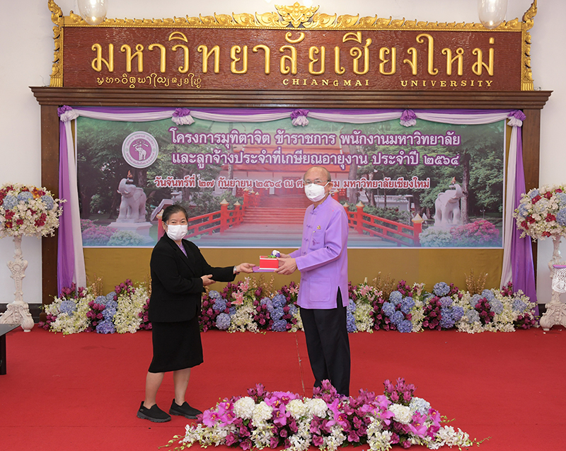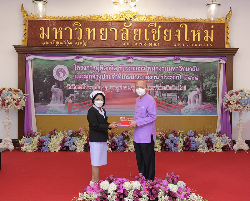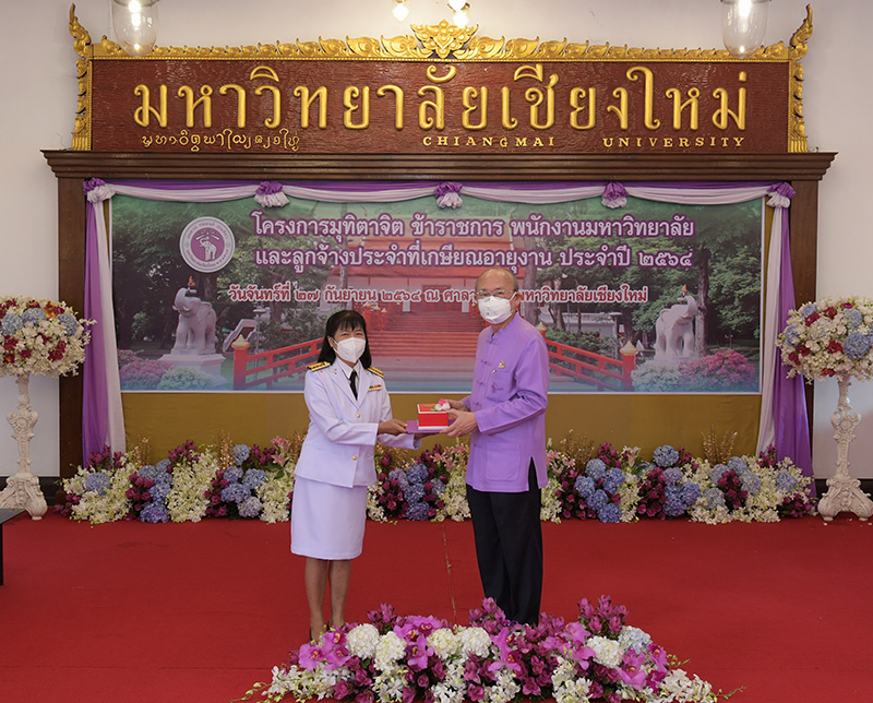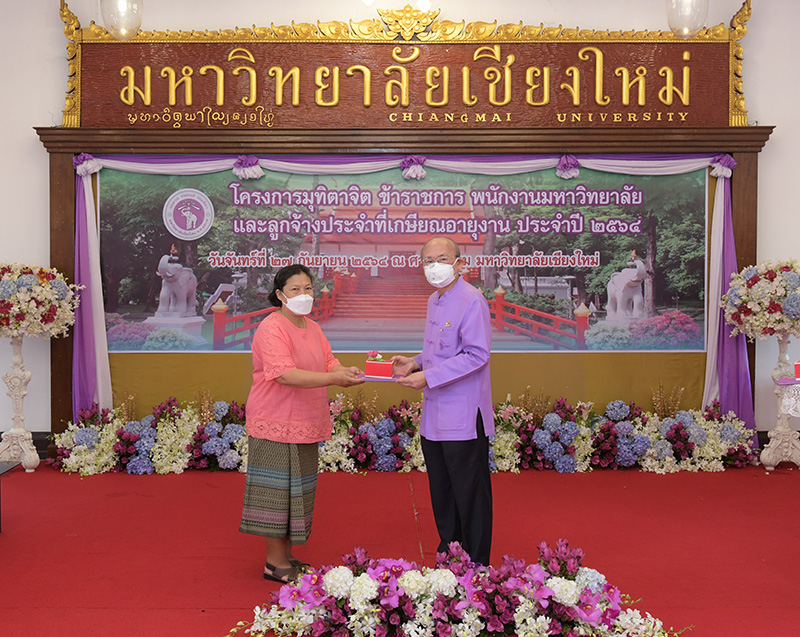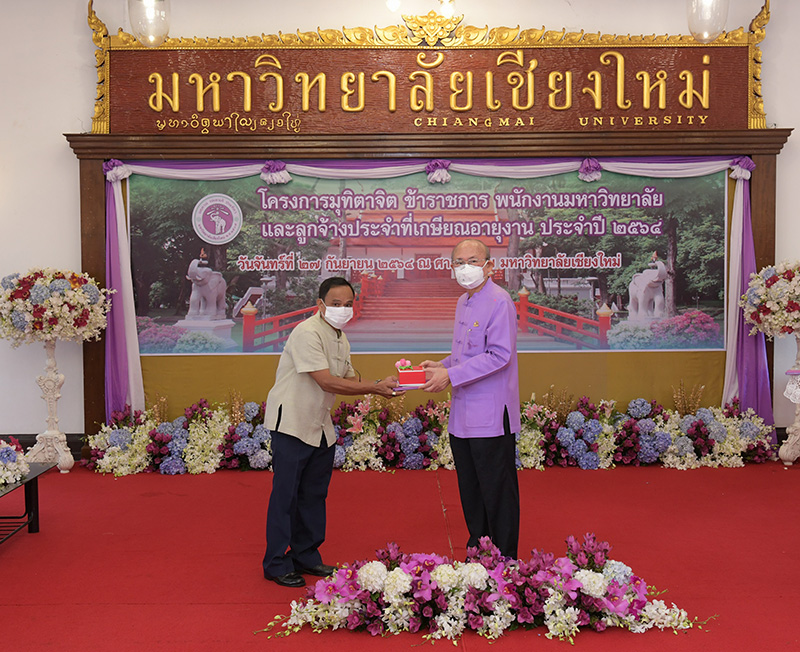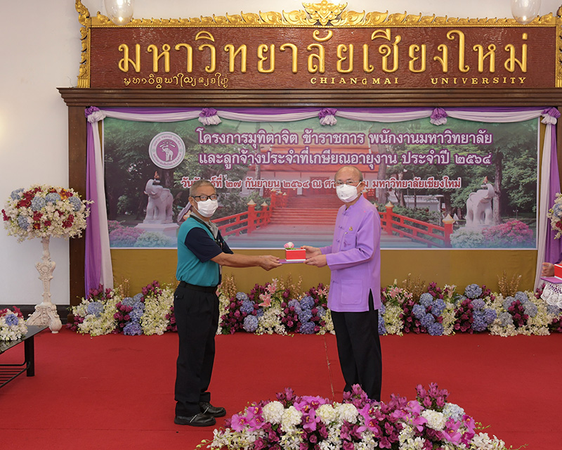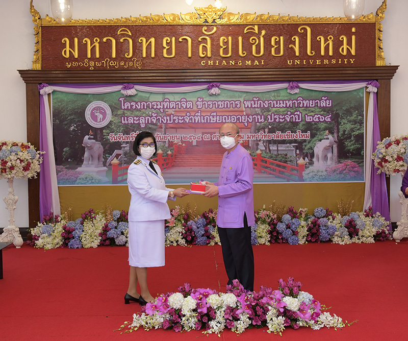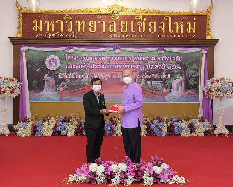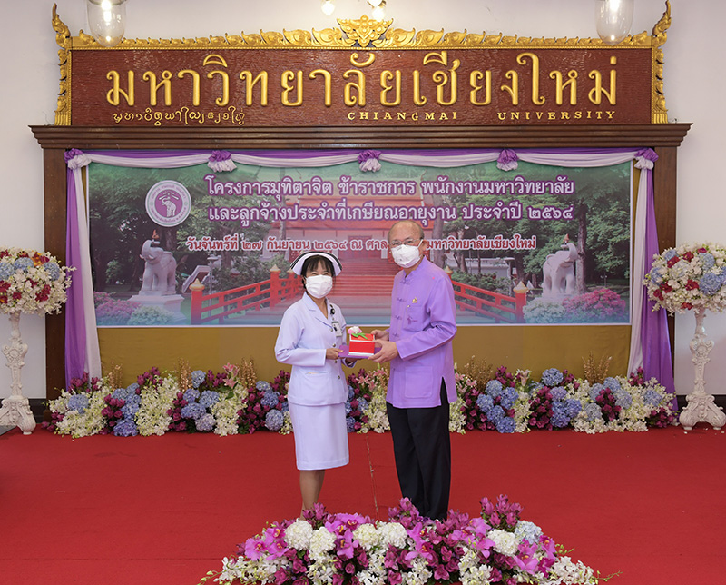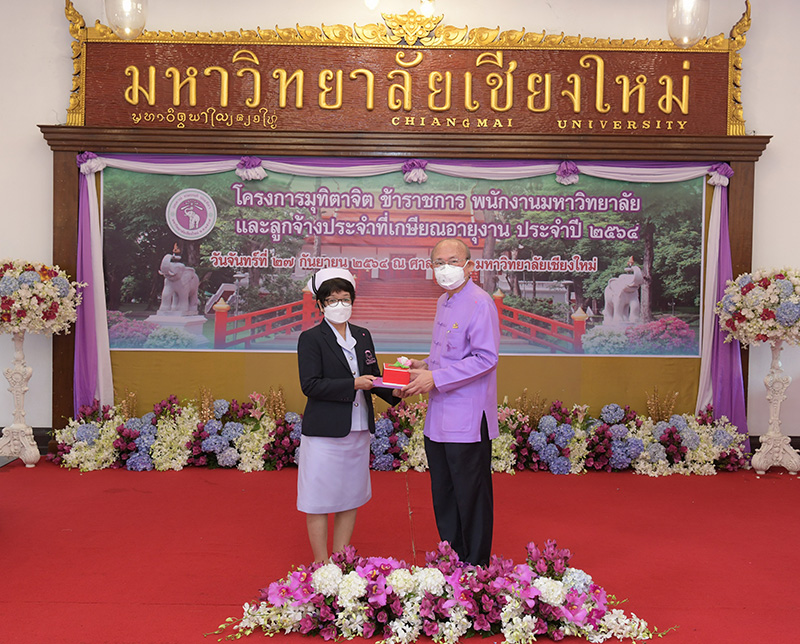 มหาวิทยาลัยเชียงใหม่ จัดงานมุทิตาจิตแก่ข้าราชการ พนักงานมหาวิทยาลัยและลูกจ้างประจำที่เกษียณอายุงานประจำปี 2564 ของมหาวิทยาลัยเชียงใหม่ จำนวน 266 คน โดยมีศาสตราจารย์คลินิก นายแพทย์นิเวศน์ นันทจิต อธิการบดีมหาวิทยาลัยเชียงใหม่ เป็นประธานในพิธีฯ เพื่อเชิดชูเกียรติ และระลึกถึงคุณงามความดี ที่ได้อุทิศตนปฏิบัติหน้าที่ด้วยแรงกาย แรงใจ มีความมานะ อุตสาหะ พากเพียรพยายาม มุ่งมั่นสรรค์สร้างและพัฒนามหาวิทยาลัยเชียงใหม่ตลอดมา ณ ศาลาธรรม มหาวิทยาลัยเชียงใหม่ เมื่อวันจันทร์ที่ 27 กันยายน พ.ศ. 2564