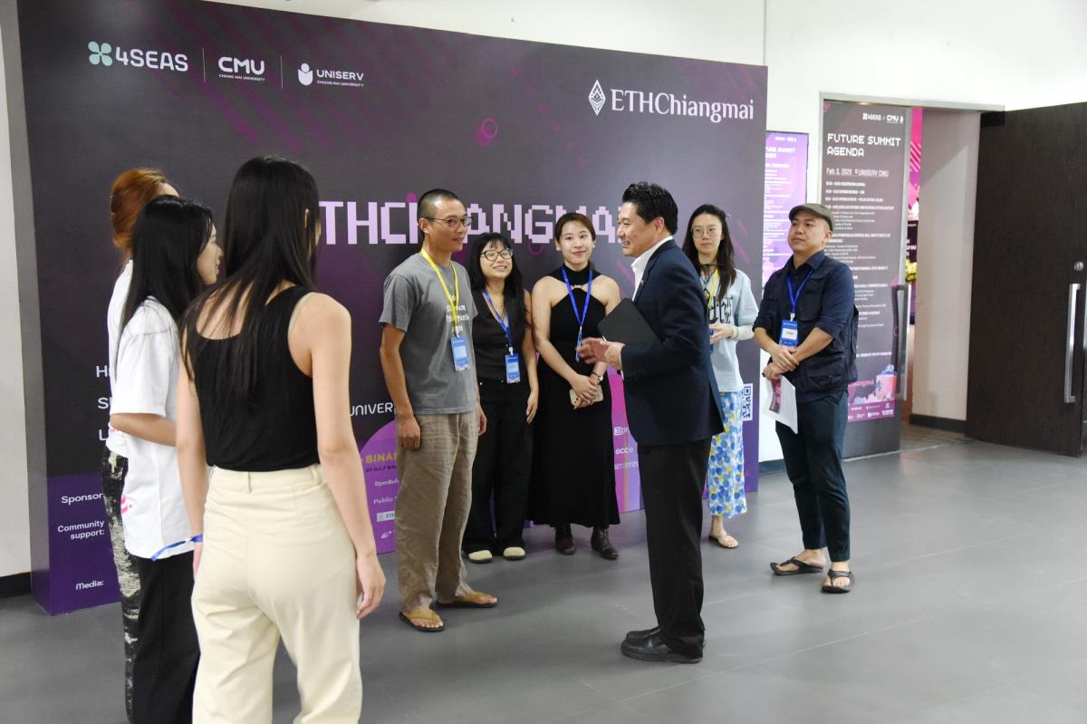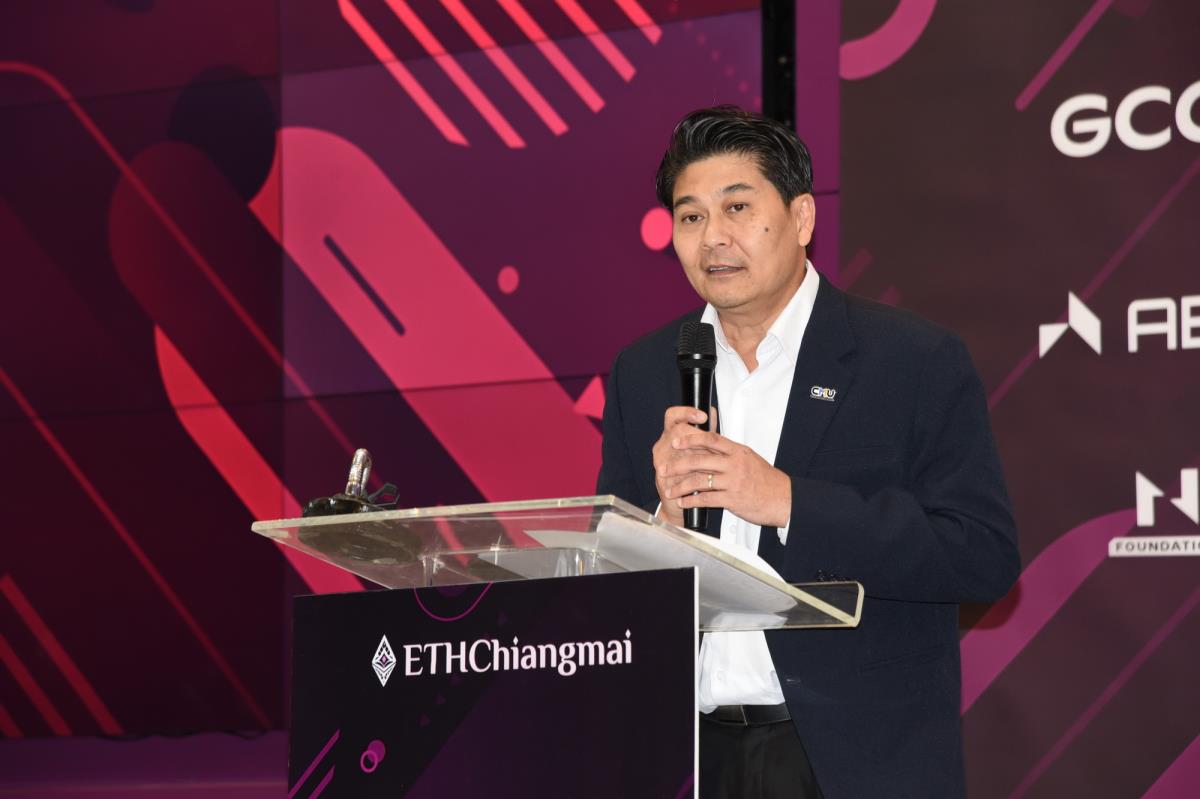 รองศาสตราจารย์ ดร.รัฐสิทธิ์ สุขะหุต รองอธิการบดีมหาวิทยาลัยเชียงใหม่ เป็นประธานกล่าวเปิดงาน ETH Chiangmai Future Summit 2026 เพื่อให้นักสร้างสรรค์ นักคิด และผู้ปฏิบัติงาน ได้พบปะพูดคุยเกี่ยวกับรากฐานของอารยธรรมดิจิทัล โครงสร้างพื้นฐานสาธารณะ โลกแห่งความเป็นจริง การทำงานร่วมกันในสถาบันการศึกษา และโครงการบุกเบิกในเชียงใหม่ ซึ่งประเพณีและความทันสมัยมาบรรจบกัน ตลอดจนการแลกเปลี่ยนความคิดและการปฏิบัติที่เป็นรูปธรรม ณ ห้องประชุมทองกวาว สำนักบริการวิชาการ มหาวิทยาลัยเชียงใหม่ วันอังคารที่ 3 กุมภาพันธ์ พ.ศ. 2569