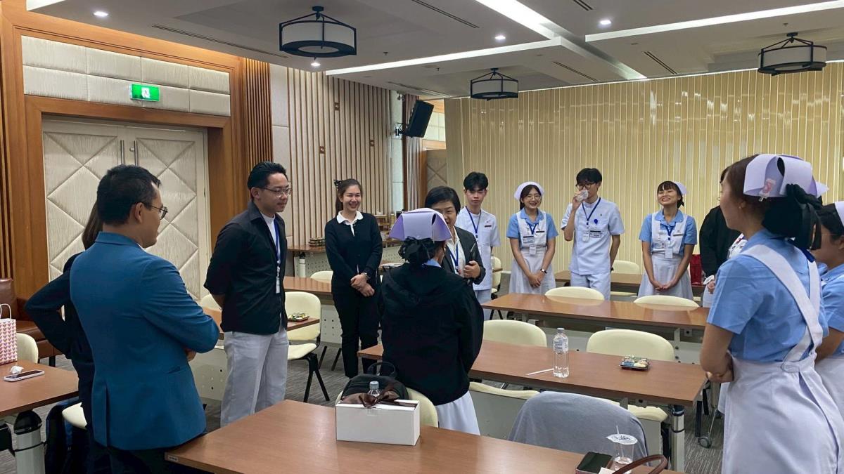 ในโอกาสนี้ ผู้ช่วยศาสตราจารย์ ดร.เนตรทอง นามพรม รองคณบดี คณะพยาบาลศาสตร์ เข้าเยี่ยมให้กำลังใจและรับฟังการนำเสนอผลการฝึกปฏิบัติงาน กิจกรรมเสริมหลักสูตรดังกล่าวคณะฯ มุ่งหวังให้นักศึกษามีโอกาสได้พัฒนาสมรรถนะด้านการให้บริการทางการพยาบาลตามมาตรฐานสากล สามารถบูรณาการแนวปฎิบัติที่ดีทางการพยาบาล เพิ่มเติมองค์ความรู้ใหม่ ๆ ที่ทันสมัยนำมาใช้เป็นประโยชน์ต่อด้านการเรียนและประกอบวิชาชีพทางการพยาบาลหลังสำเร็จการศึกษาต่อไป
