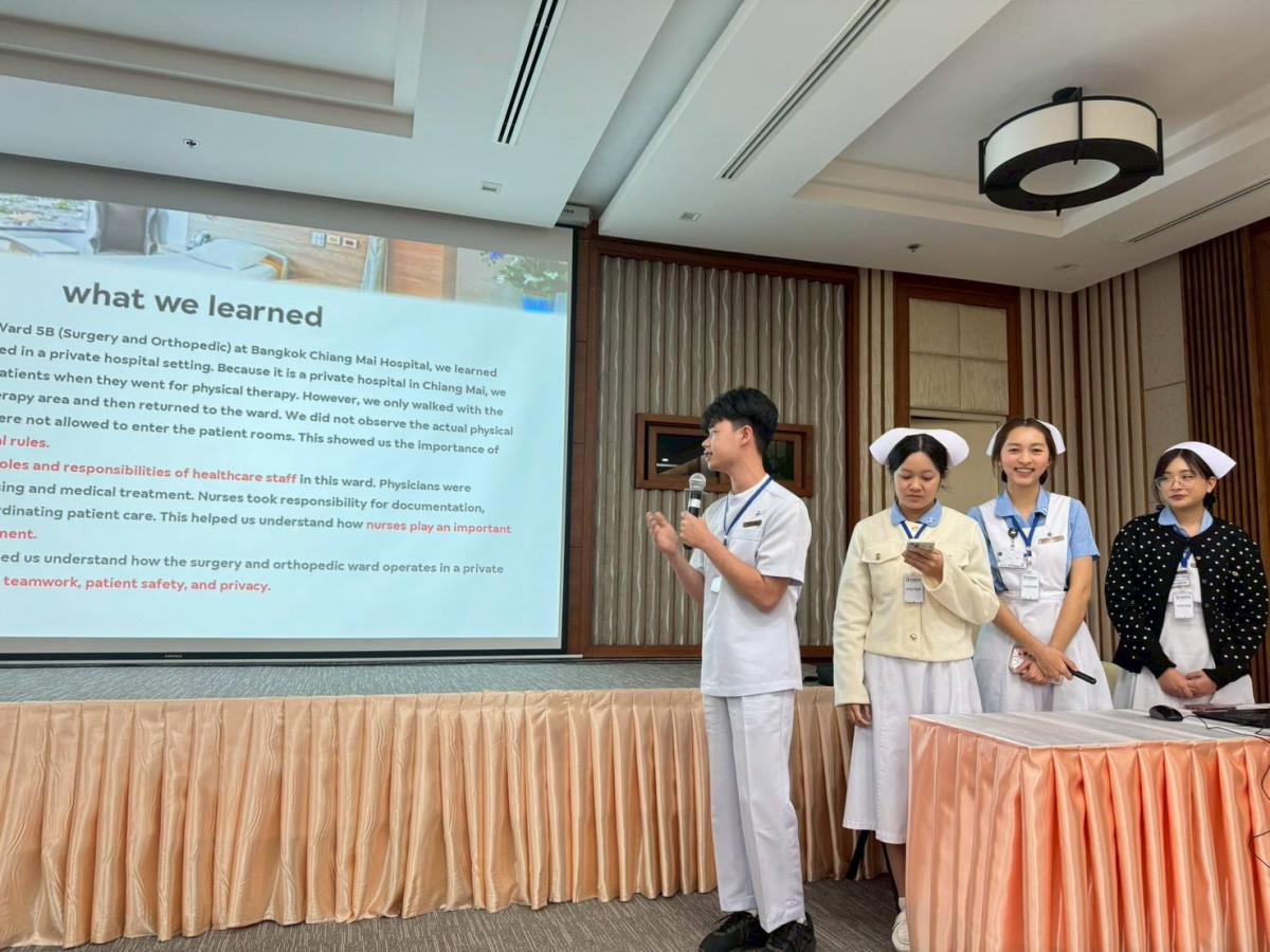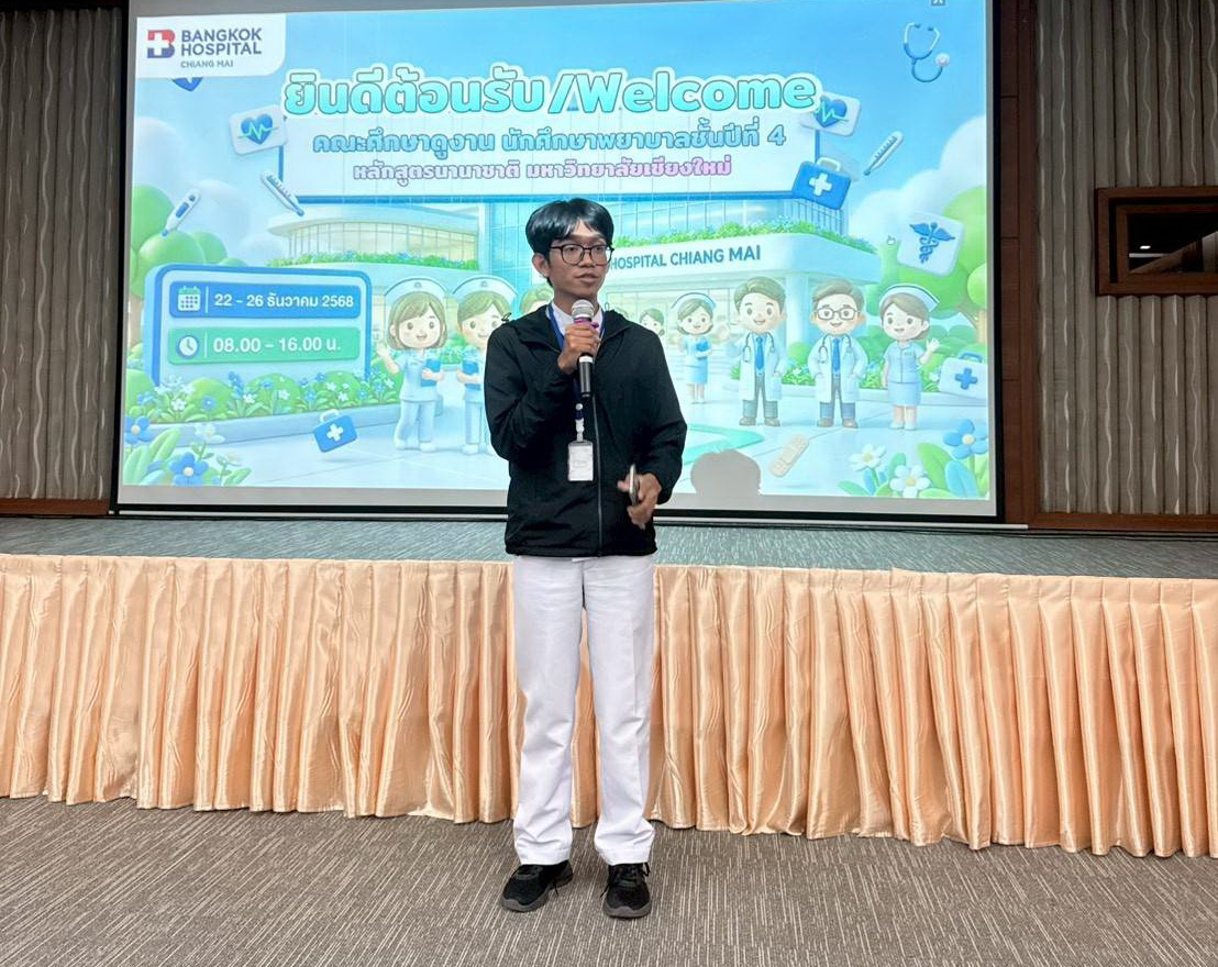 คณะพยาบาลศาสตร์ มหาวิทยาลัยเชียงใหม่ จัดกิจกรรมฝึกปฏิบัติงานสร้างเสริมประสบการณ์ทางวิชาการและวิชาชีพ สำหรับนักศึกษาชั้นปีที่ 4 หลักสูตรพยาบาลศาสตรบัณฑิต (หลักสูตรนานาชาติ) ภาคเรียนที่ 2 ประจำปีการศึกษา 2568 ซึ่งได้เข้าฝึกแหล่งเรียนรู้ ณ ฝ่ายการพยาบาลเฉพาะทาง (Specialized Nursing Practice) โรงพยาบาลกรุงเทพเชียงใหม่ ระหว่างวันที่ 22-26 ธันวาคม 2568