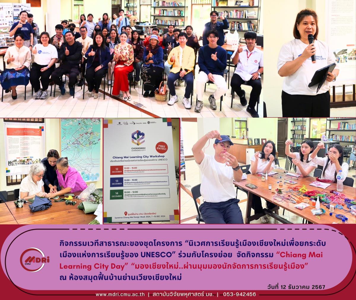 วันที่ 12-14 ธันวาคม 2567 ที่ผ่านมา ทางชุดโครงการ “นิเวศการเรียนรู้เมืองเชียงใหม่เพื่อยกระดับเมืองแห่งการเรียนรู้ของ UNESCO” ร่วมกับโครงย่อยทั้ง2 โครงการ ได้จัดกิจกรรม “Chiang Mai Learning City Day” ณ ห้องสมุดฟื้นบ้านย่านเวียงเชียงใหม่