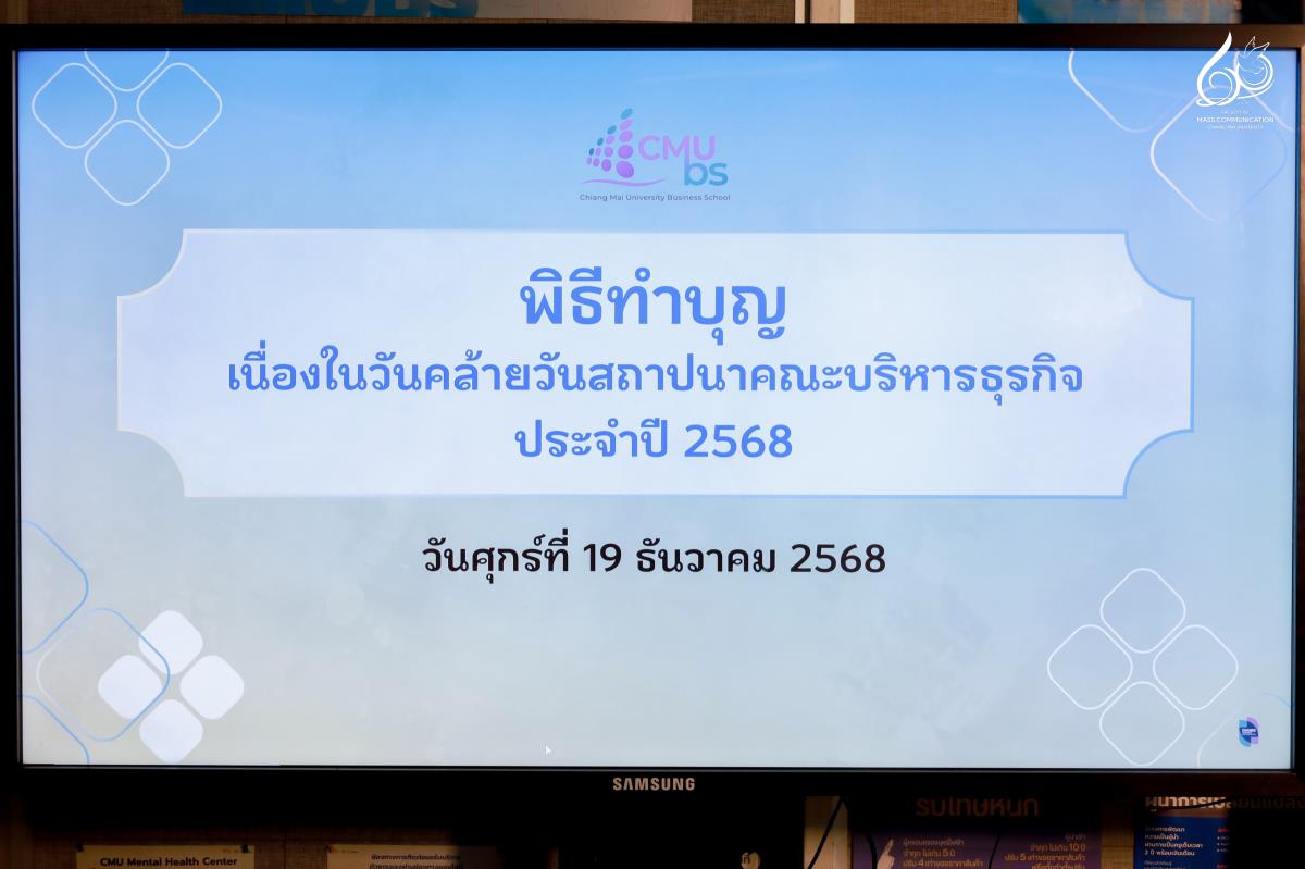 คณะการสื่อสารมวลชน มหาวิทยาลัยเชียงใหม่ นำโดย ผู้ช่วยศาสตราจารย์ ดร.ศุภฤกษ์ โพธิไพรัตนา คณบดีคณะการสื่อสารมวลชน พร้อมด้วย อาจารย์ปริญญ์ กฤษสุนทร อาจารย์ประจำสาขาภาพยนตร์ดิจิทัล และบุคลากรสายสนับสนุน เข้าร่วมแสดงความยินดีเนื่องในโอกาสครบรอบ 33 ปี วันคล้ายวันสถาปนาคณะบริหารธุรกิจ มหาวิทยาลัยเชียงใหม่ โดยมี ผู้ช่วยศาสตราจารย์ ดร.ก้องภู นิมานันท์ คณบดีคณะบริหารธุรกิจ พร้อมด้วยทีมผู้บริหารและบุคลากร ให้การต้อนรับอย่างอบอุ่น ณ ลานหน้าอาคาร 3 (อาคารห้องสมุดใหม่) คณะบริหารธุรกิจ มหาวิทยาลัยเชียงใหม่ ในวันศุกร์ที่ 19 ธันวาคม 2568 เวลา 08.30 – 09.30 น.