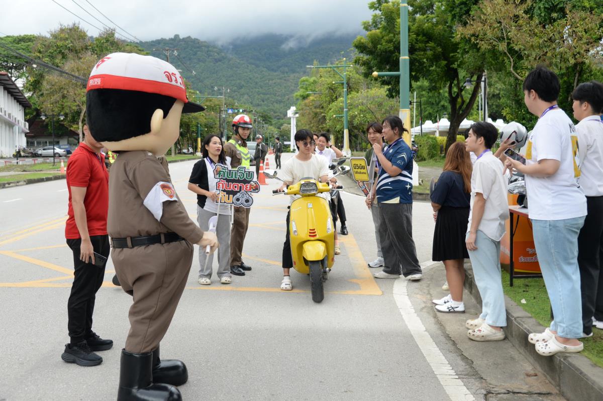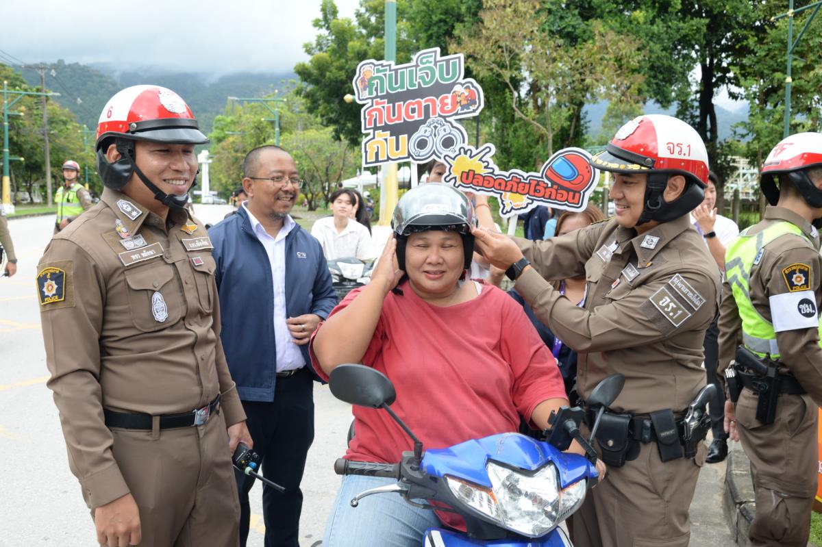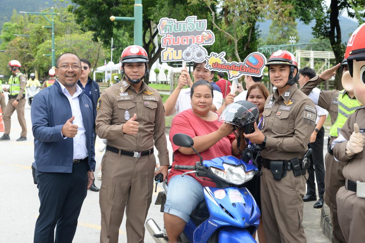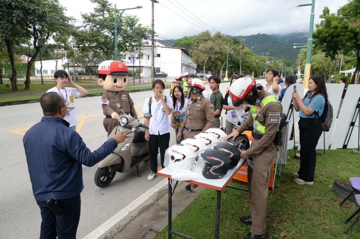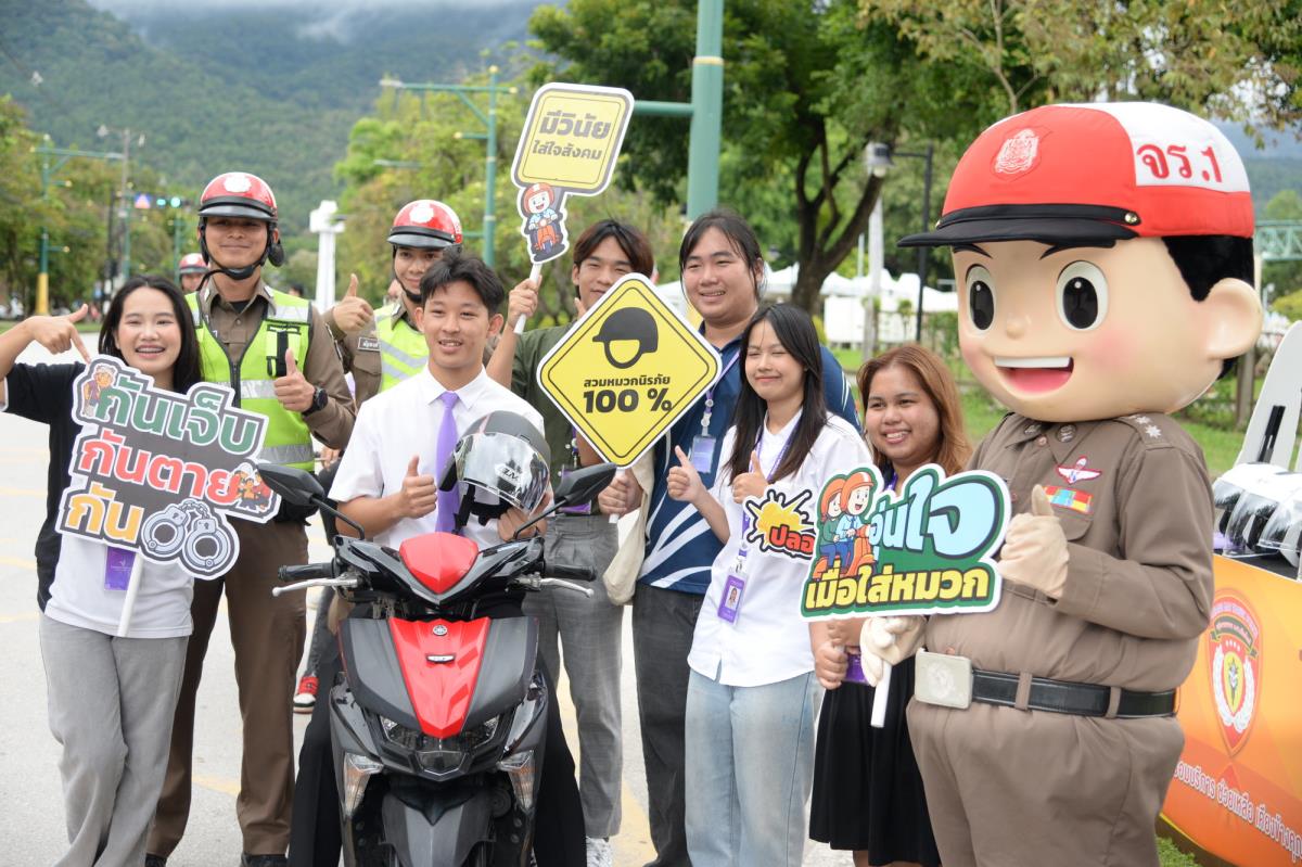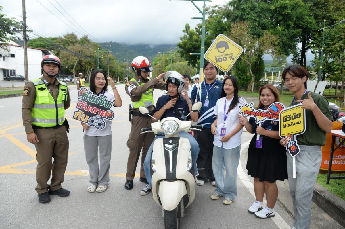 ผู้ช่วยศาสตราจารย์ ดร.จิรวัฒน์ พัสระ ผู้ช่วยอธิการบดีมหาวิทยาลัยเชียงใหม่ และพันตำรวจเอก เจน โสภา ผู้กำกับการกลุ่มงานจราจร ตำรวจภูธรจังหวัดเชียงใหม่ ร่วมกิจกรรมรณรงค์แจกหมวกนิรภัย ให้แก่นักศึกษาและบุคคลที่สัญจรภายในมหาวิทยาลัยเชียงใหม่ เพื่อสร้างความปลอดภัยในการขับขี่รถจักรยานยนต์ ลดปัญหาของการบาดเจ็บและเสียชีวิตจากอุบัติเหตุ ตลอดจนการสร้างระเบียบวินัยในการขับขี่ยานพาหนะให้ถูกต้องตามกฎจราจร ณ ลานด้านหน้า CMU 60th Years Main Stadium ศูนย์กีฬาและสุขภาพ มหาวิทยาลัยเชียงใหม่ วันพุธที่ 1 ตุลาคม พ.ศ. 2568