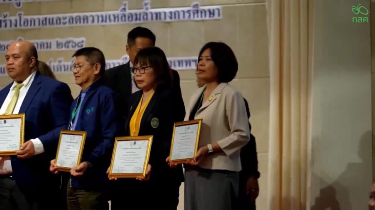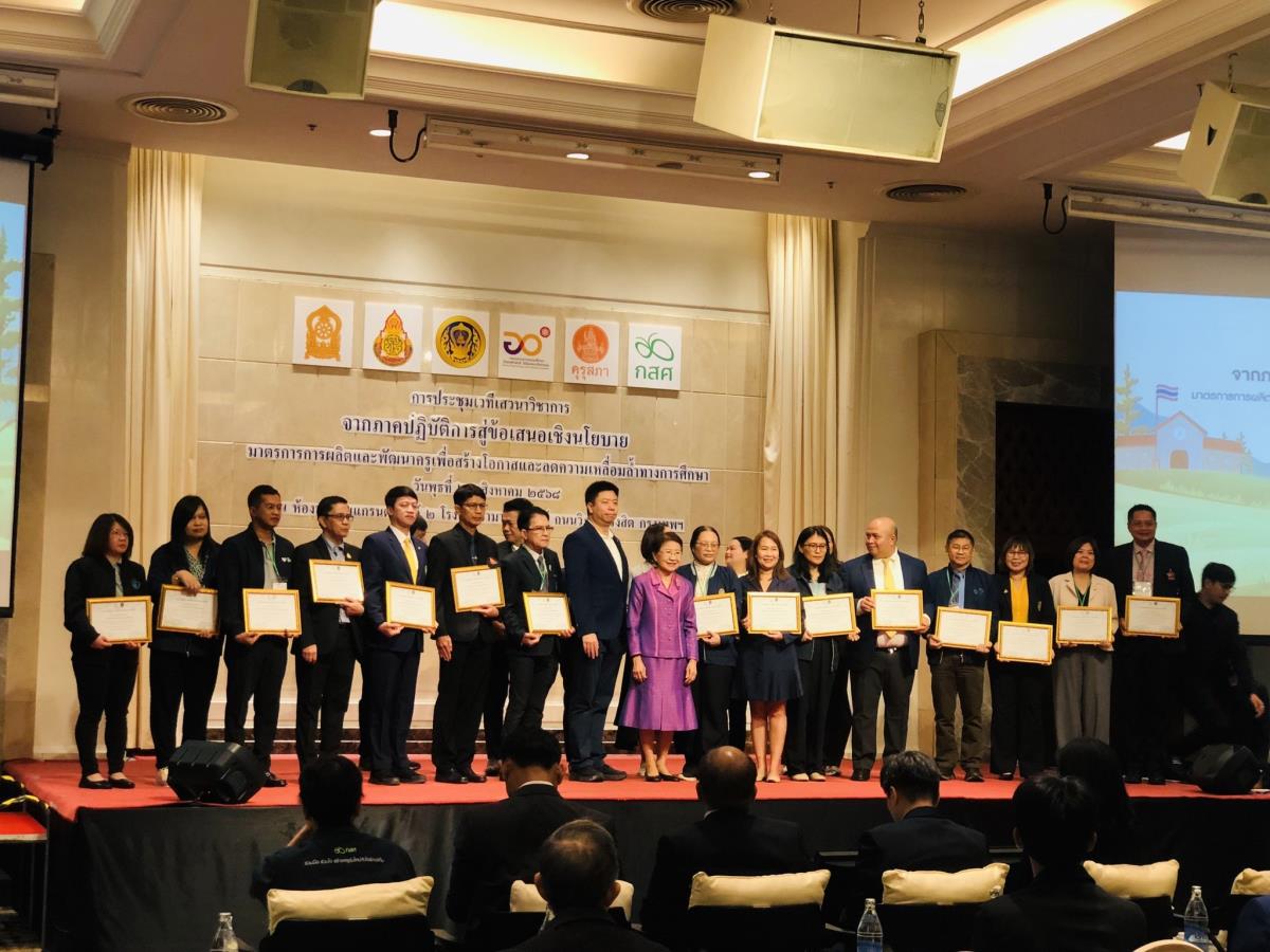 ผู้ช่วยศาสตราจารย์ ดร.อุไรวรรณ หาญวงค์ ผู้แทนคณบดีคณะศึกษาศาสตร์ เข้ารับมอบ เกียรติบัตรเชิดชูเกียรติ ในฐานะ สถาบันต้นแบบในการผลิตและพัฒนาครูเพื่อสร้างโอกาสและลดความเหลื่อมล้ำทางการศึกษา พิธีจัดขึ้นโดย กองทุนเพื่อความเสมอภาคทางการศึกษา (กสศ.) ณ ห้องประชุมแกรนด์ฮอลล์ 2 โรงแรมรามาการ์เด้นส์ กรุงเทพฯ เมื่อวันที่ 27 สิงหาคม 2568 โครงการครูรัก(ษ์)ถิ่น มช. มุ่งมั่นในการพัฒนาครูคุณภาพเพื่อพื้นที่ห่างไกลและโรงเรียนตำรวจตระเวนชายแดน ต่อยอดสู่การยกระดับคุณภาพการศึกษาไทยอย่างยั่งยืน