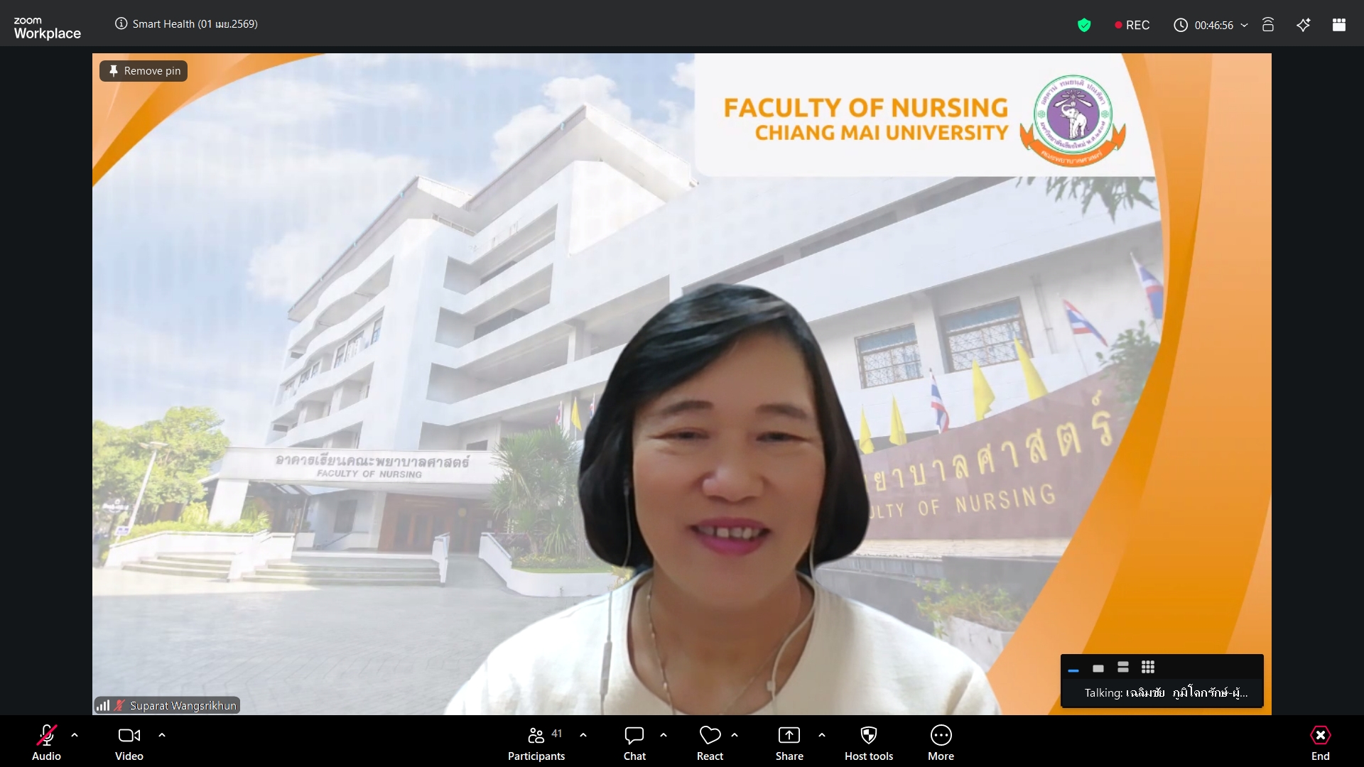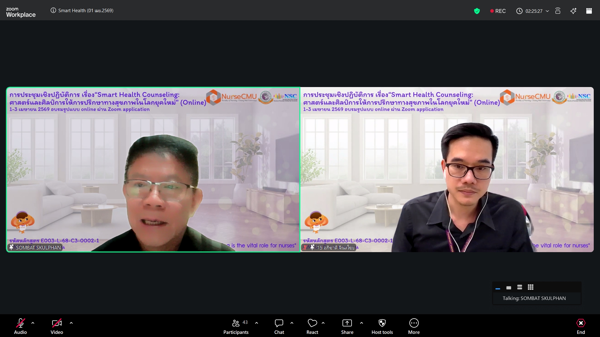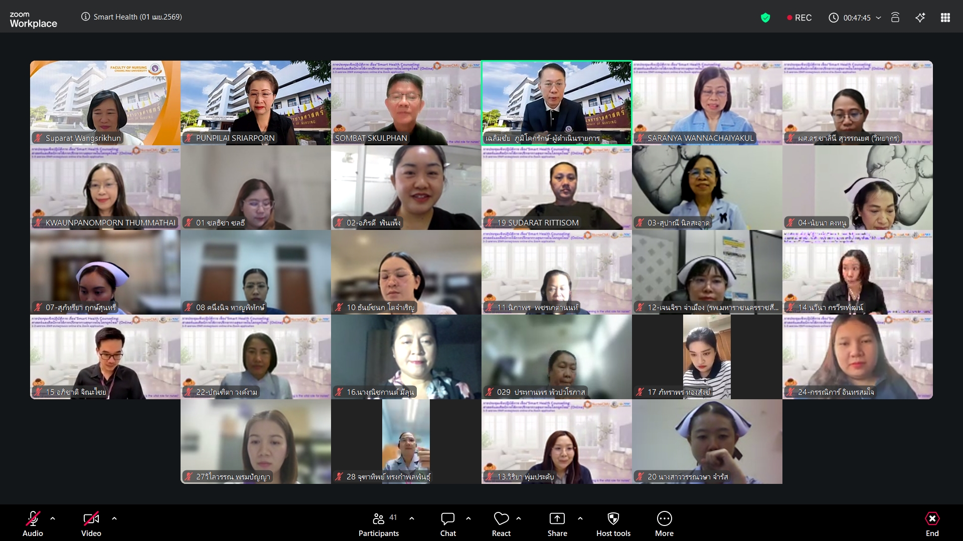 วันพุธที่ 1 เมษายน 2569 ศูนย์บริการพยาบาล คณะพยาบาลศาสตร์ มหาวิทยาลัยเชียงใหม่ จัดพิธีเปิดโครงการอบรมเชิงปฏิบัติการ "Smart Health Counseling: ศาสตร์และศิลป์การให้การปรึกษาทางสุขภาพในโลกยุคใหม่" โดยมี ผู้ช่วยศาสตราจารย์ ดร.สุภารัตน์ วังศรีคูณ คณบดีคณะพยาบาลศาสตร์ เป็นประธาน รองศาสตราจารย์ ดร.สมบัติ สกุลพรรณ์ ประธานโครงการฯ กล่าวรายงาน ศาสตราจารย์คลินิก ดร. พรรณพิไล ศรีอาภรณ์ ผู้อำนวยการศูนย์บริการพยาบาล กล่าวต้อนรับผู้เข้าอบรมจากทั่วประเทศ