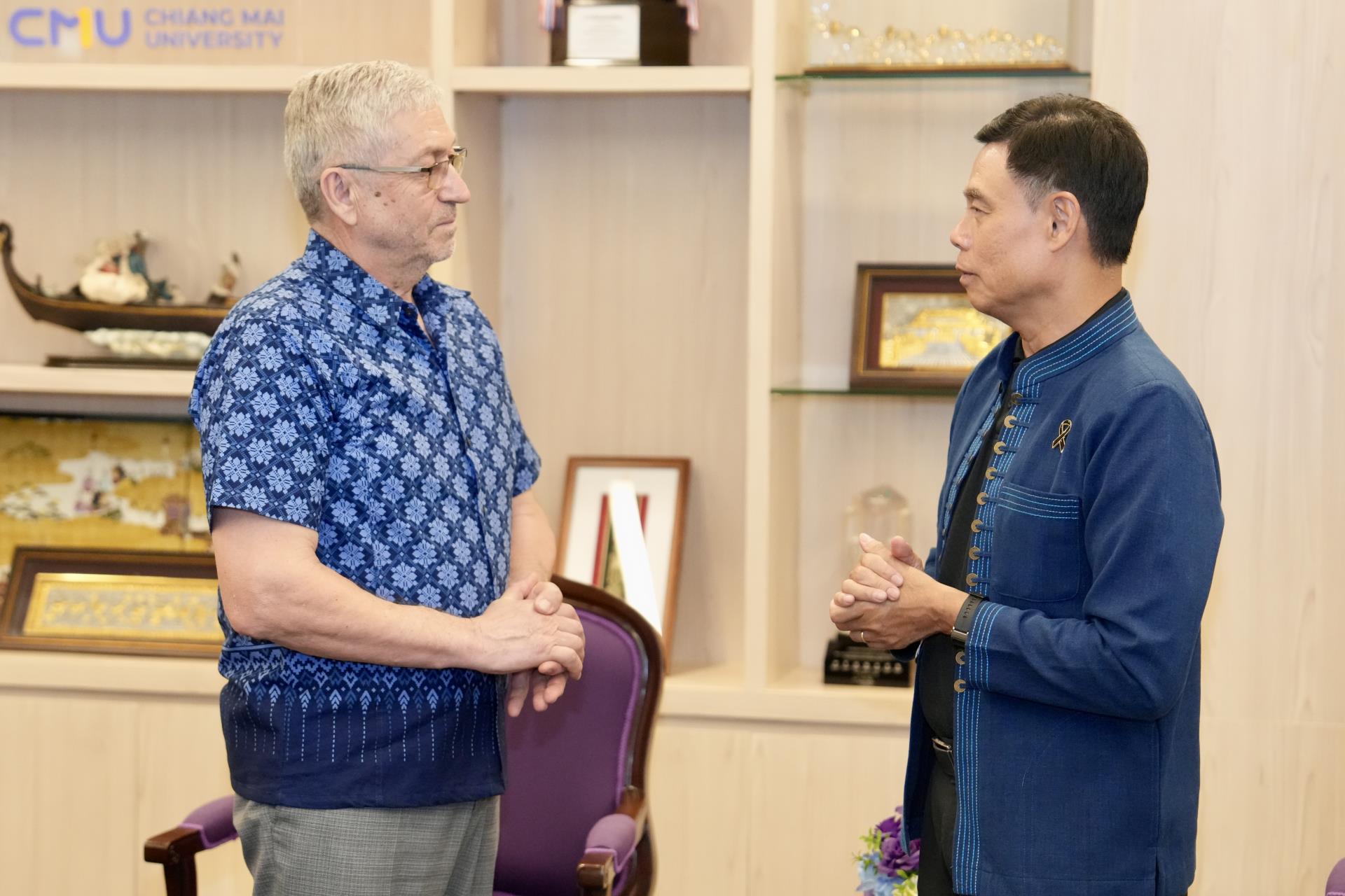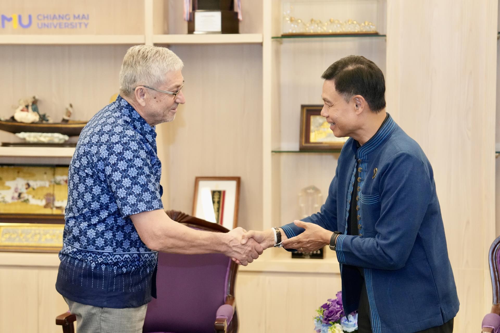 ศาสตราจารย์ ดร.นพ.พงษ์รักษ์ ศรีบัณฑิตมงคล อธิการบดีมหาวิทยาลัยเชียงใหม่ พร้อมด้วยคณะผู้บริหารมหาวิทยาลัยเชียงใหม่ ให้การต้อนรับ Professor Vasile Berinde, The Technical University of Cluj-Napoca, Romania ในโอกาสที่มาเยี่ยมเยือนมหาวิทยาลัยเชียงใหม่ เพื่อปรึกษาหารือและแลกเปลี่ยนข้อคิดเห็น เกี่ยวกับความร่วมมือทางวิชาการของทั้งสองมหาวิทยาลัย เมื่อวันพฤหัสบดีที่ 23 เมษายน พ.ศ. 2569 ณ ห้องรับรอง ม.ล.ปิ่น มาลากุล สำนักงานมหาวิทยาลัย มหาวิทยาลัยเชียงใหม่