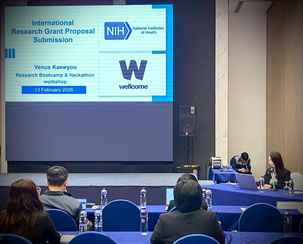 สถาบันวิจัยวิทยาศาสตร์สุขภาพ สถาบันวิจัยวิทยาศาสตร์สุขภาพ มหาวิทยาลัยเชียงใหม่ จัดอบรมเชิงปฏิบัติการ “Research Bootcamp & Hackathon” เมื่อวันศุกร์ที่ 13 กุมภาพันธ์ 2569 เวลา 08.30–16.00 น. ณ ห้องประชุม Convention 2 โรงแรม วินทรี ซิตี้ รีสอร์ท เพื่อยกระดับศักยภาพนักวิจัยในการพัฒนาข้อเสนอโครงการวิจัยสู่แหล่งทุนต่างประเทศอย่างเป็นรูปธรรม